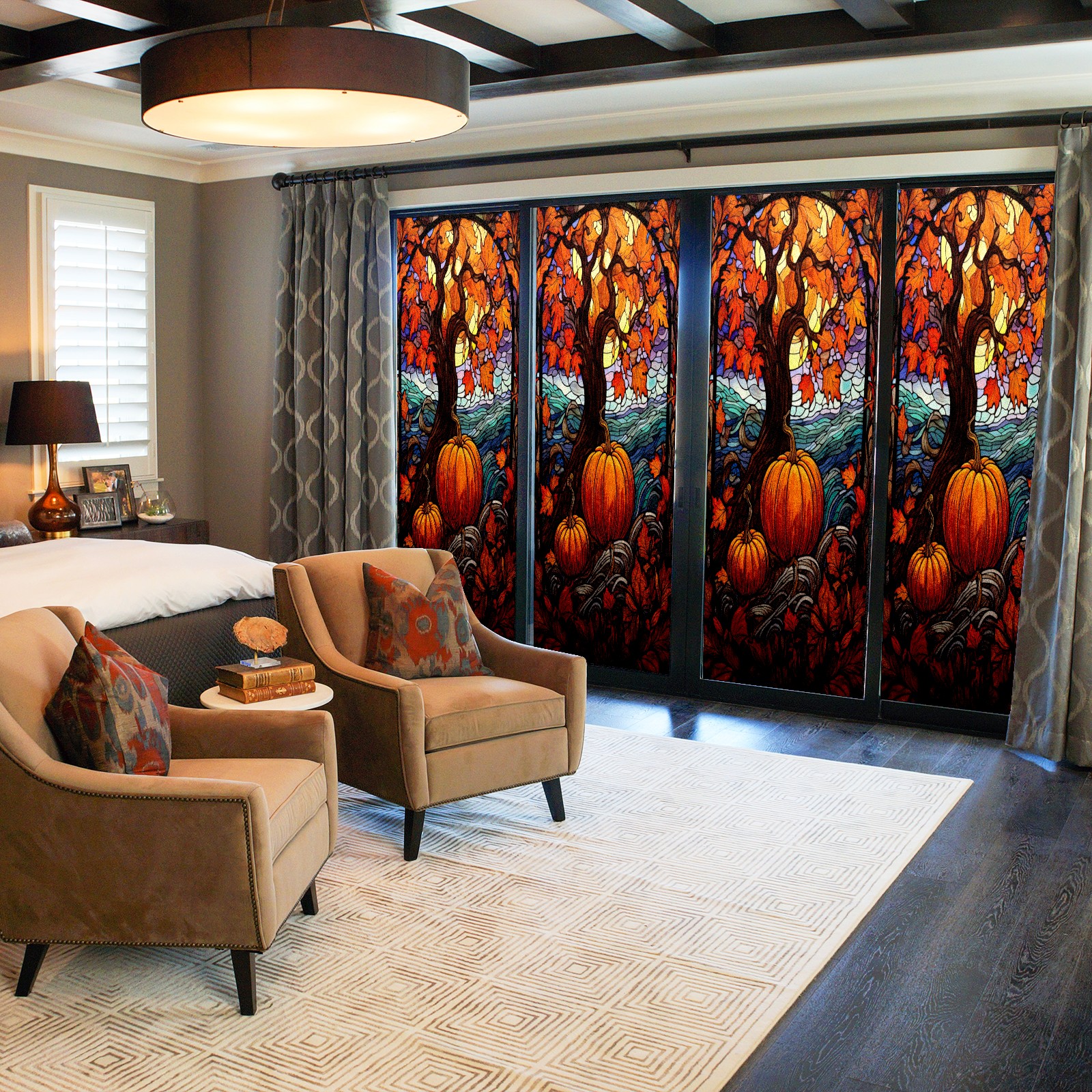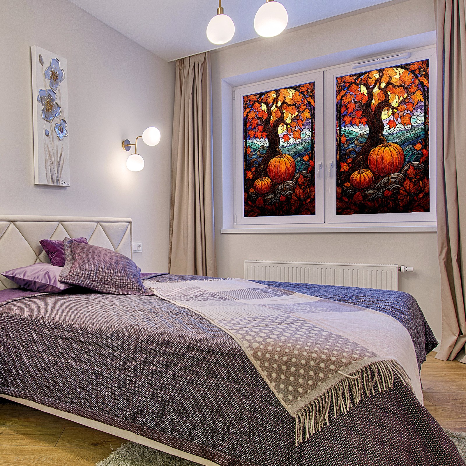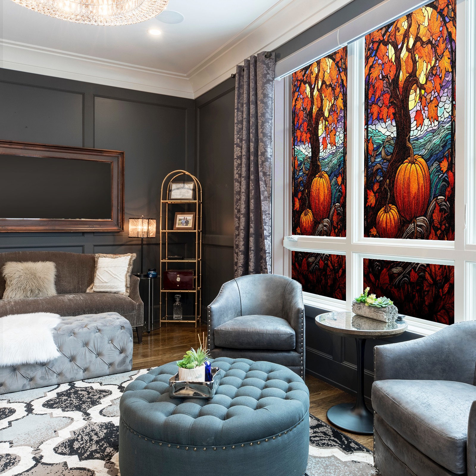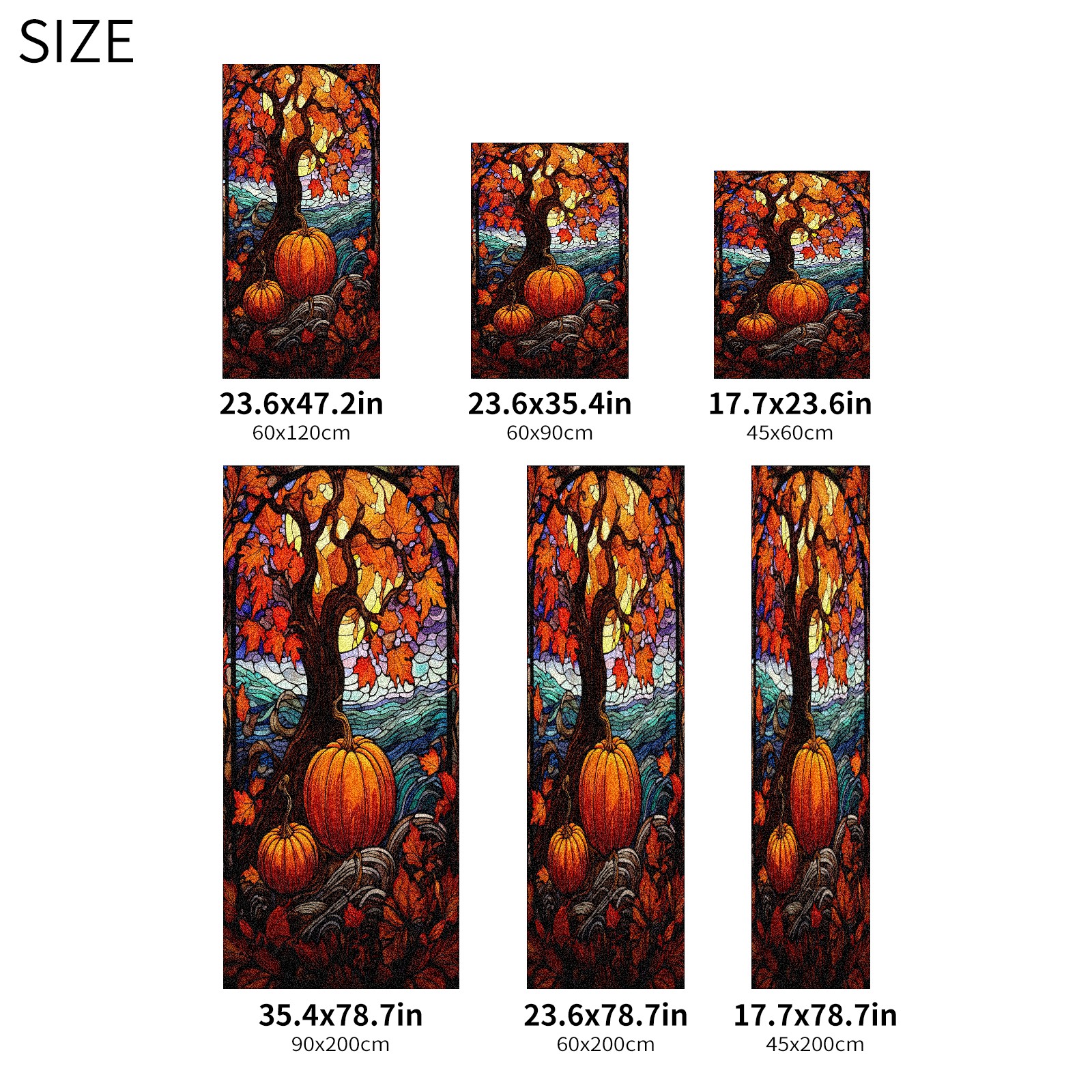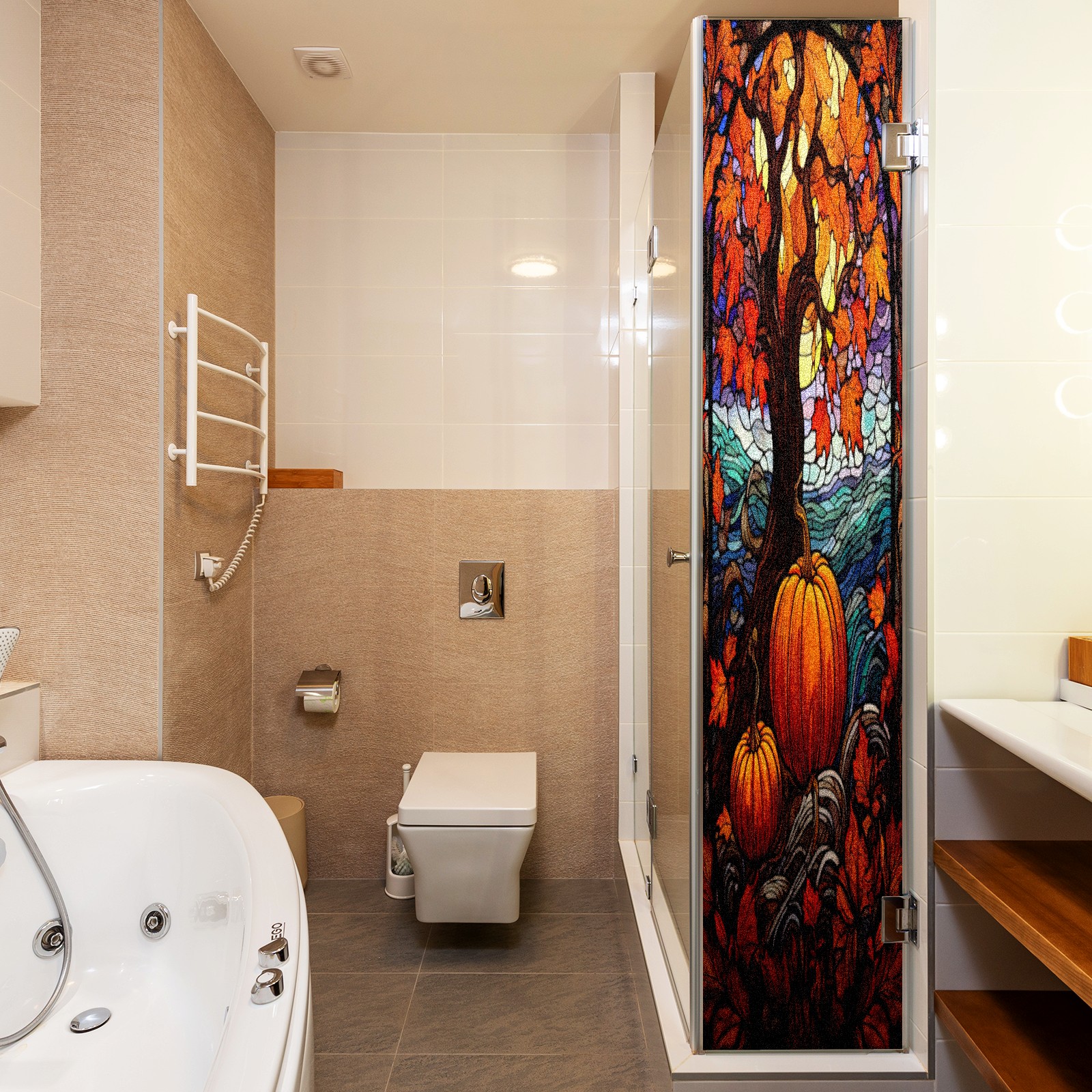 Window Privacy Film Frosted Stained Glass Film Decorative Static Cling for Bathroom Home Office Peel and Stick Window Film Yellow Tree Pumpkin(17.7x23.6in)