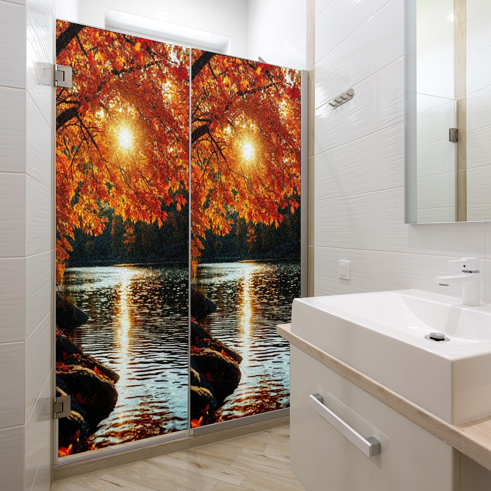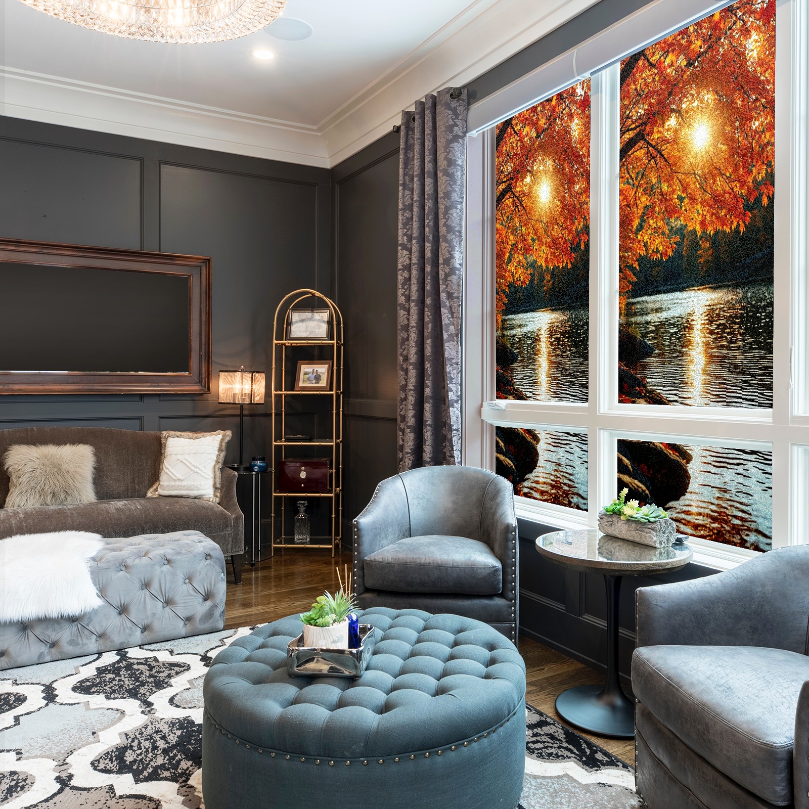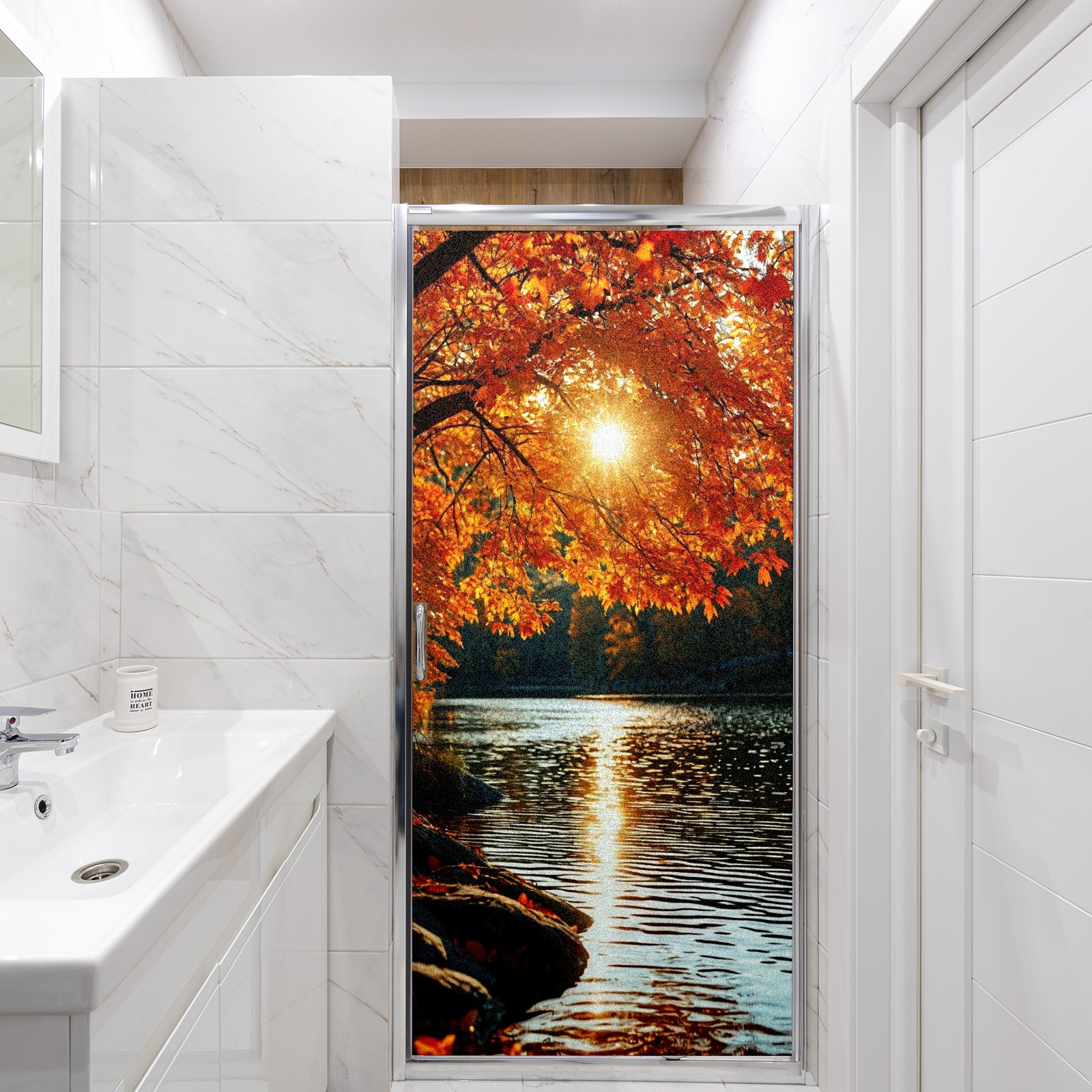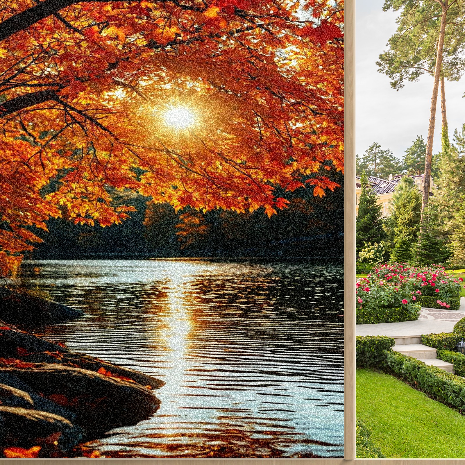 Window Privacy Film Frosted Stained Glass Film Decorative Static Cling for Bathroom Home Office Peel and Stick Window Film Sunshine Autumn Tree(17.7x23.6in)