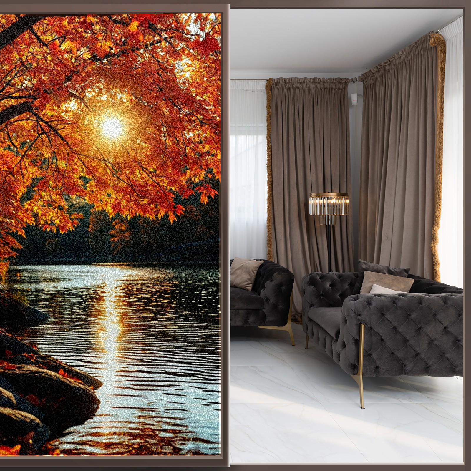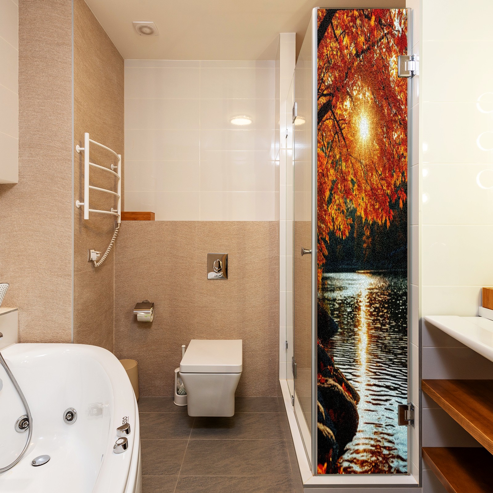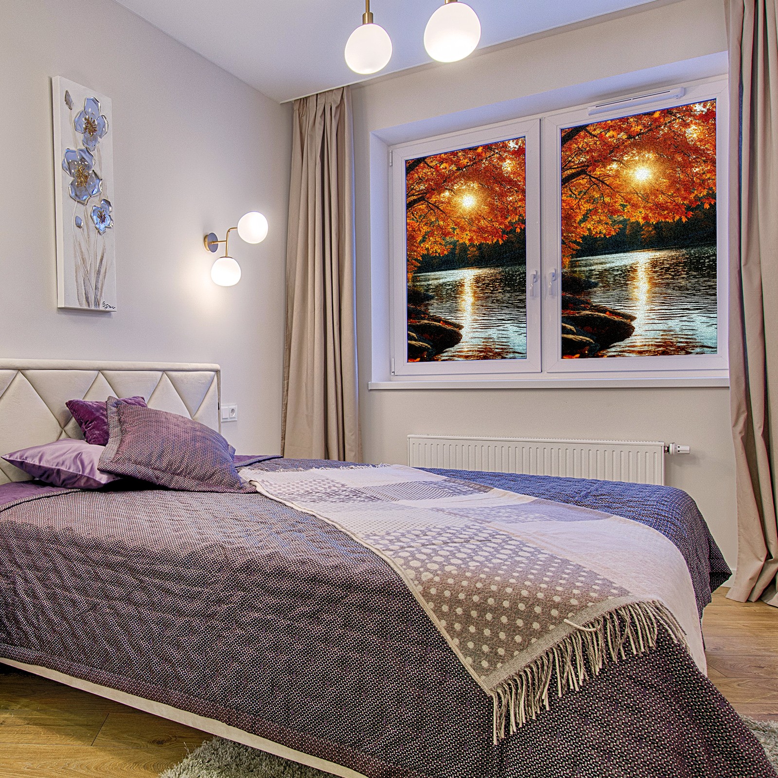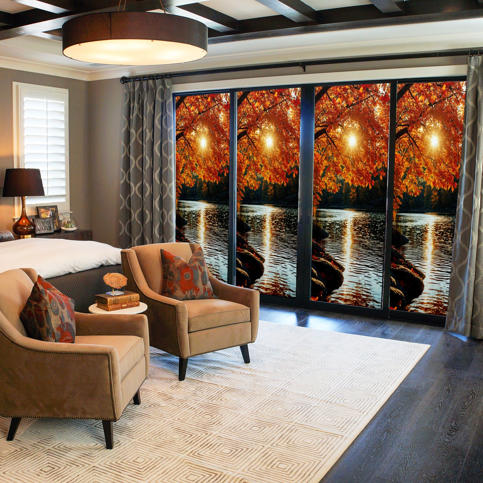 Window Privacy Film Frosted Stained Glass Film Decorative Static Cling for Bathroom Home Office Peel and Stick Window Film Sunshine Autumn Tree(17.7x23.6in)