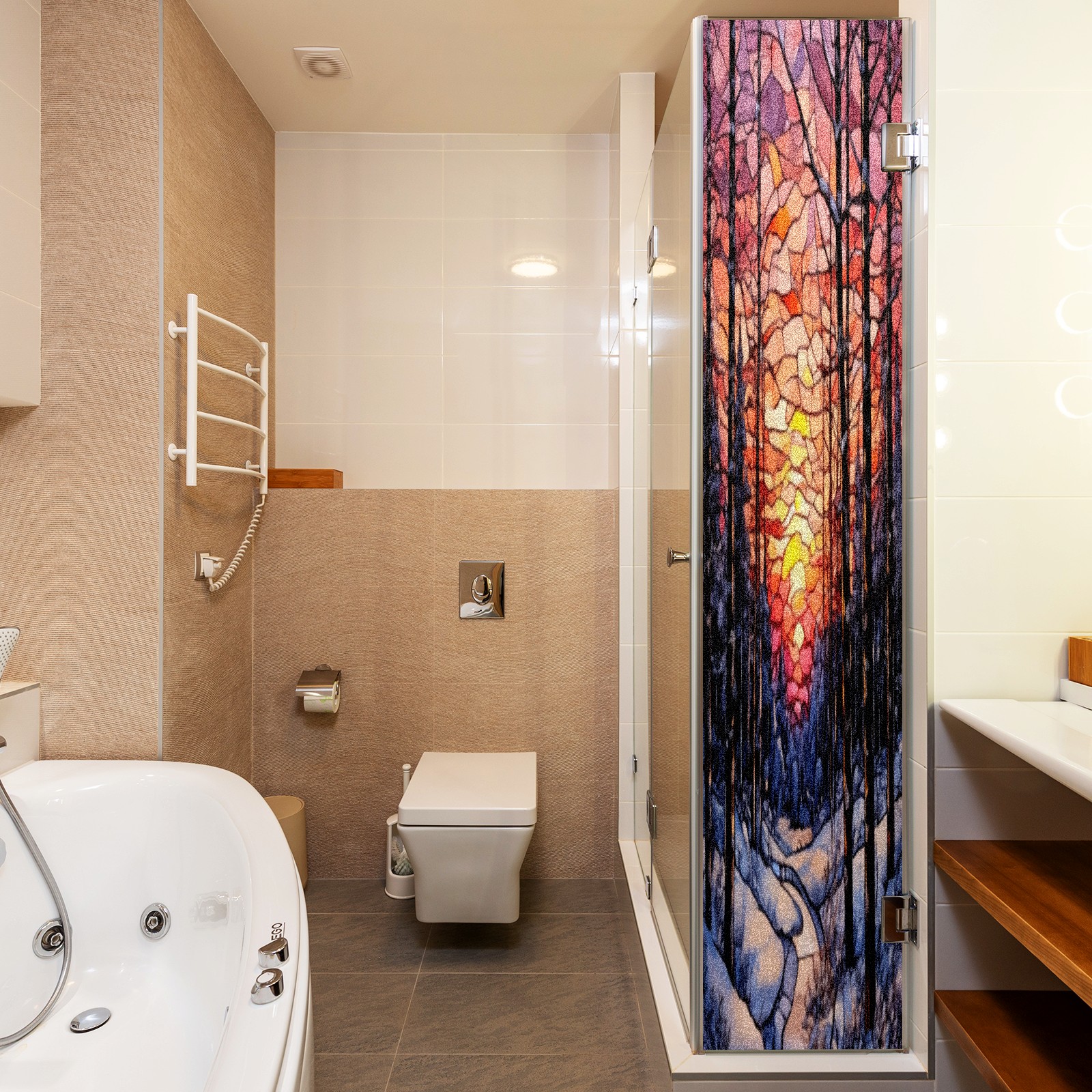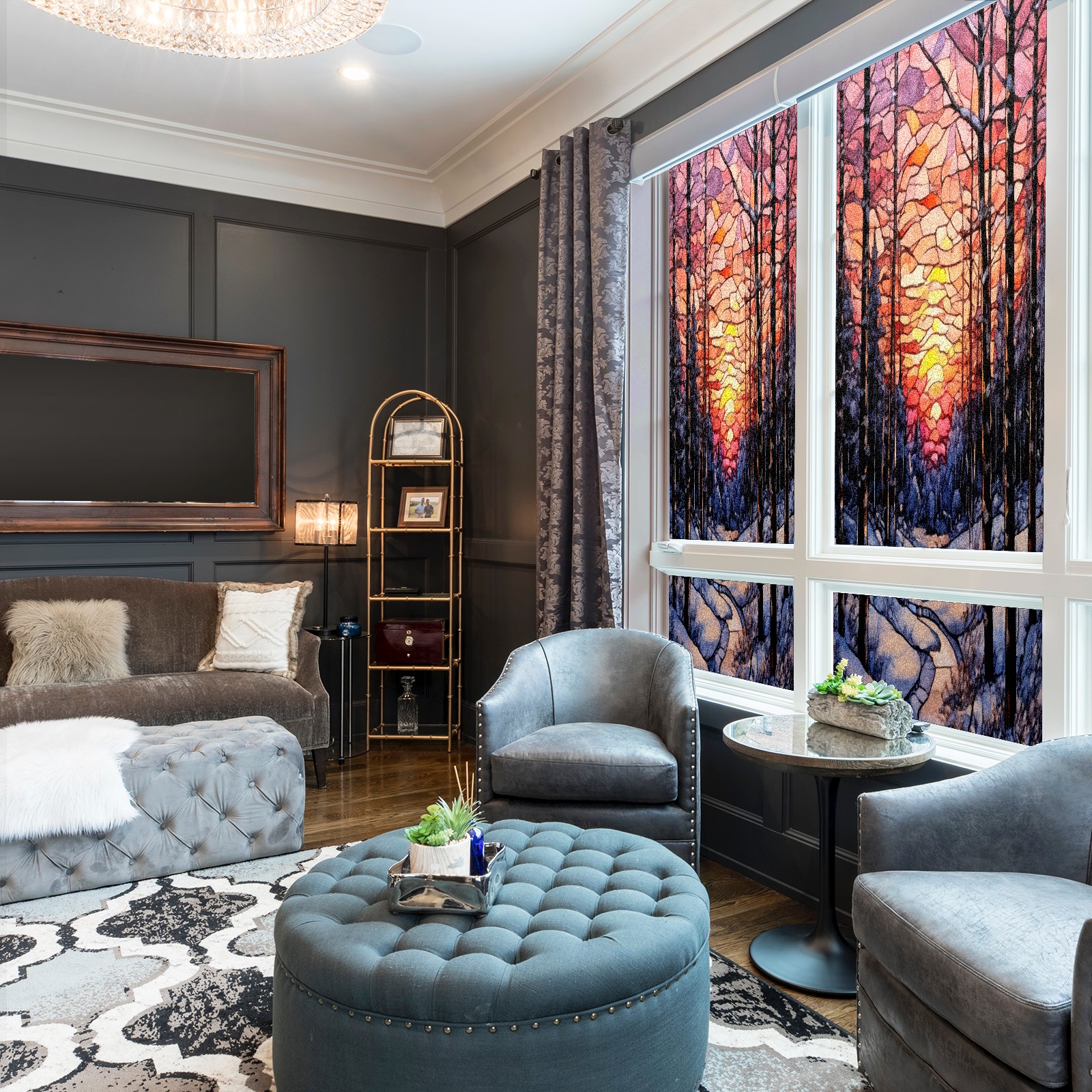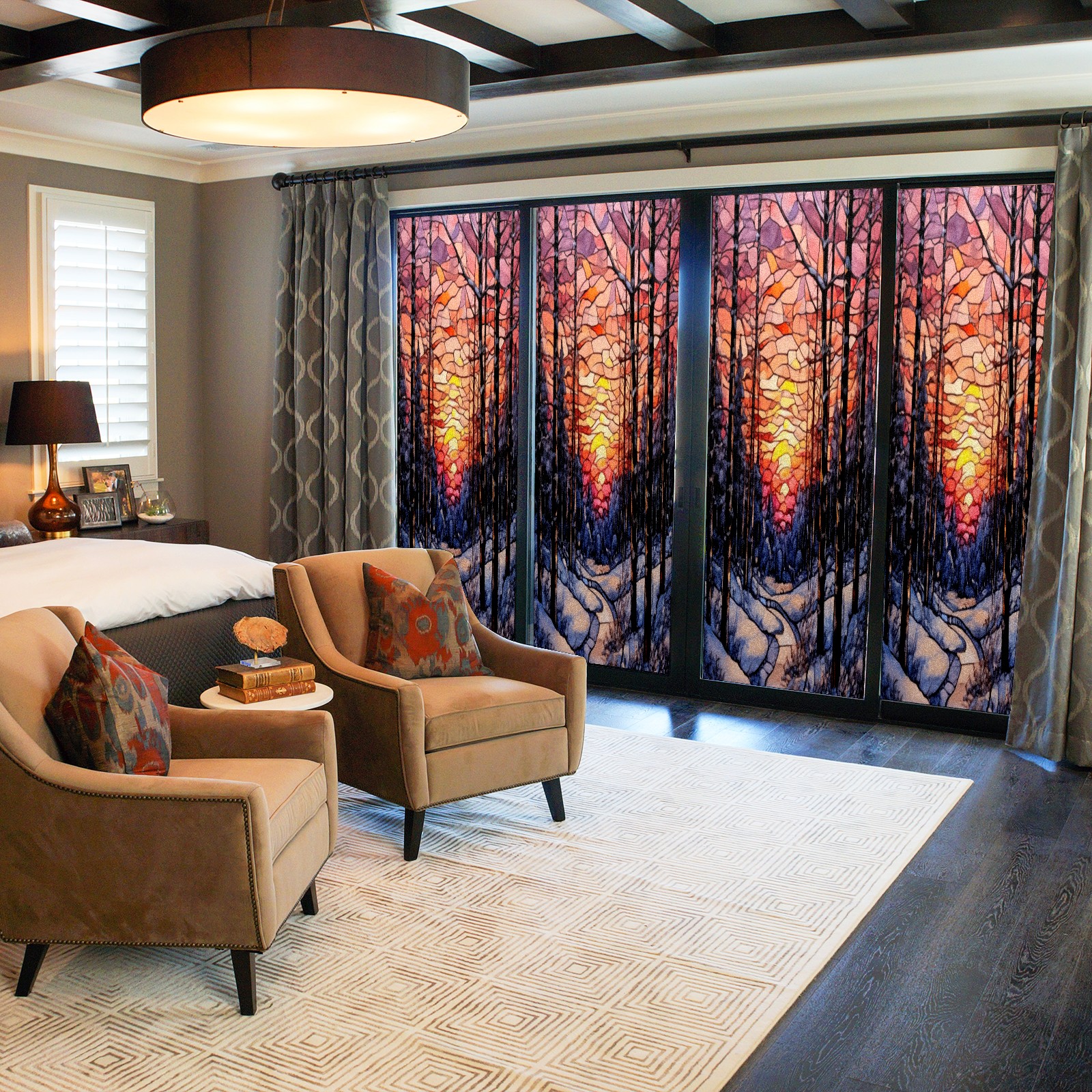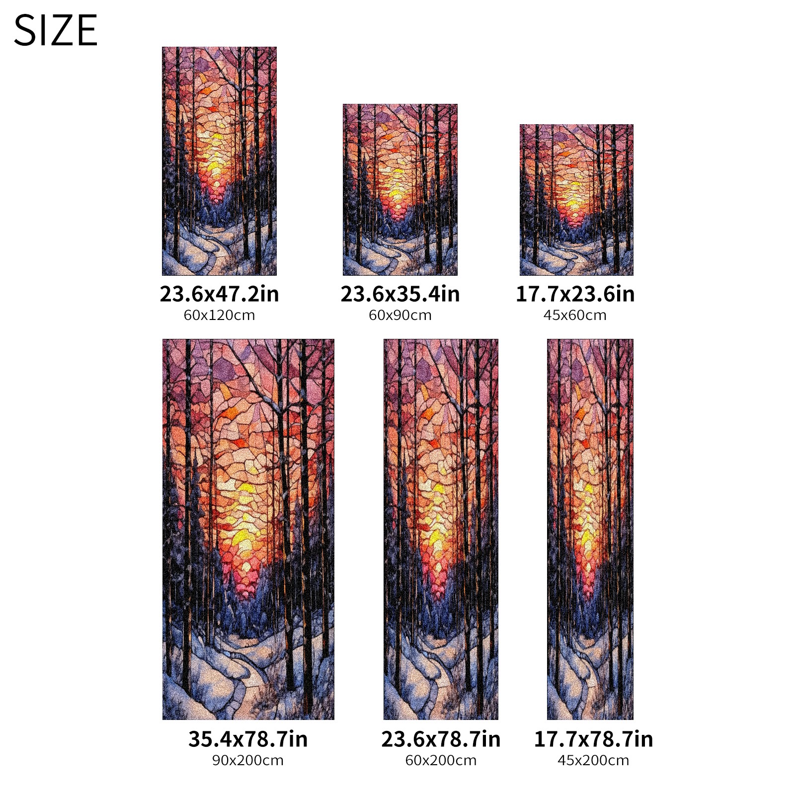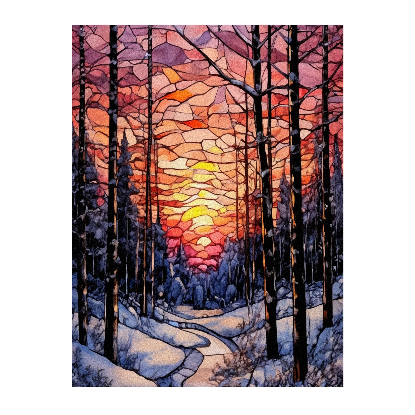 Window Privacy Film Frosted Stained Glass Film Decorative Static Cling for Bathroom Home Office Peel and Stick Window Film Sunset Snow Forest(17.7x23.6in)