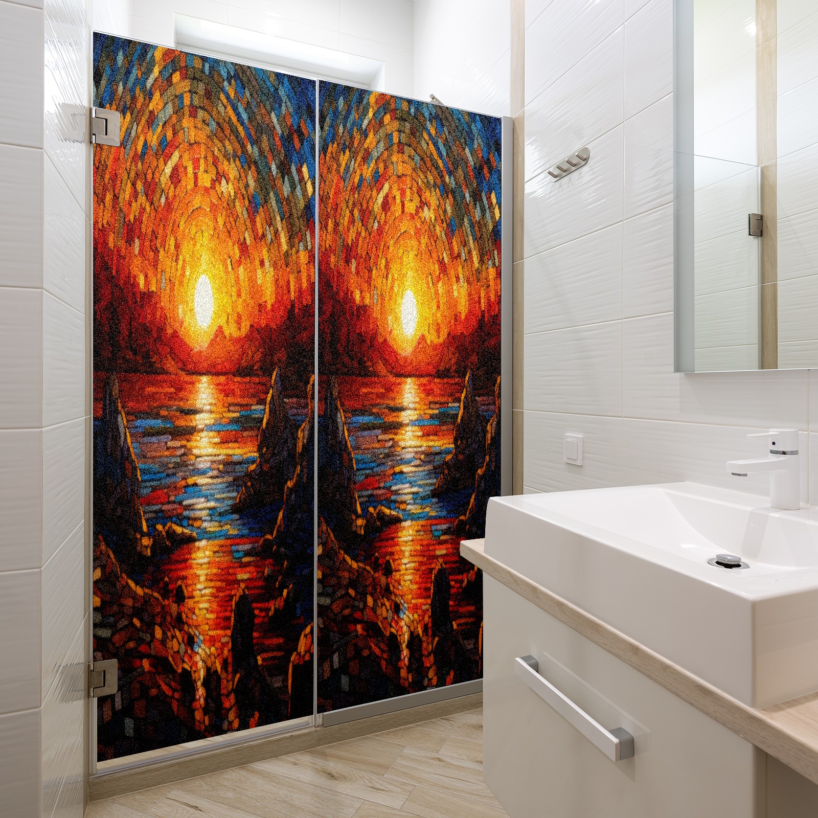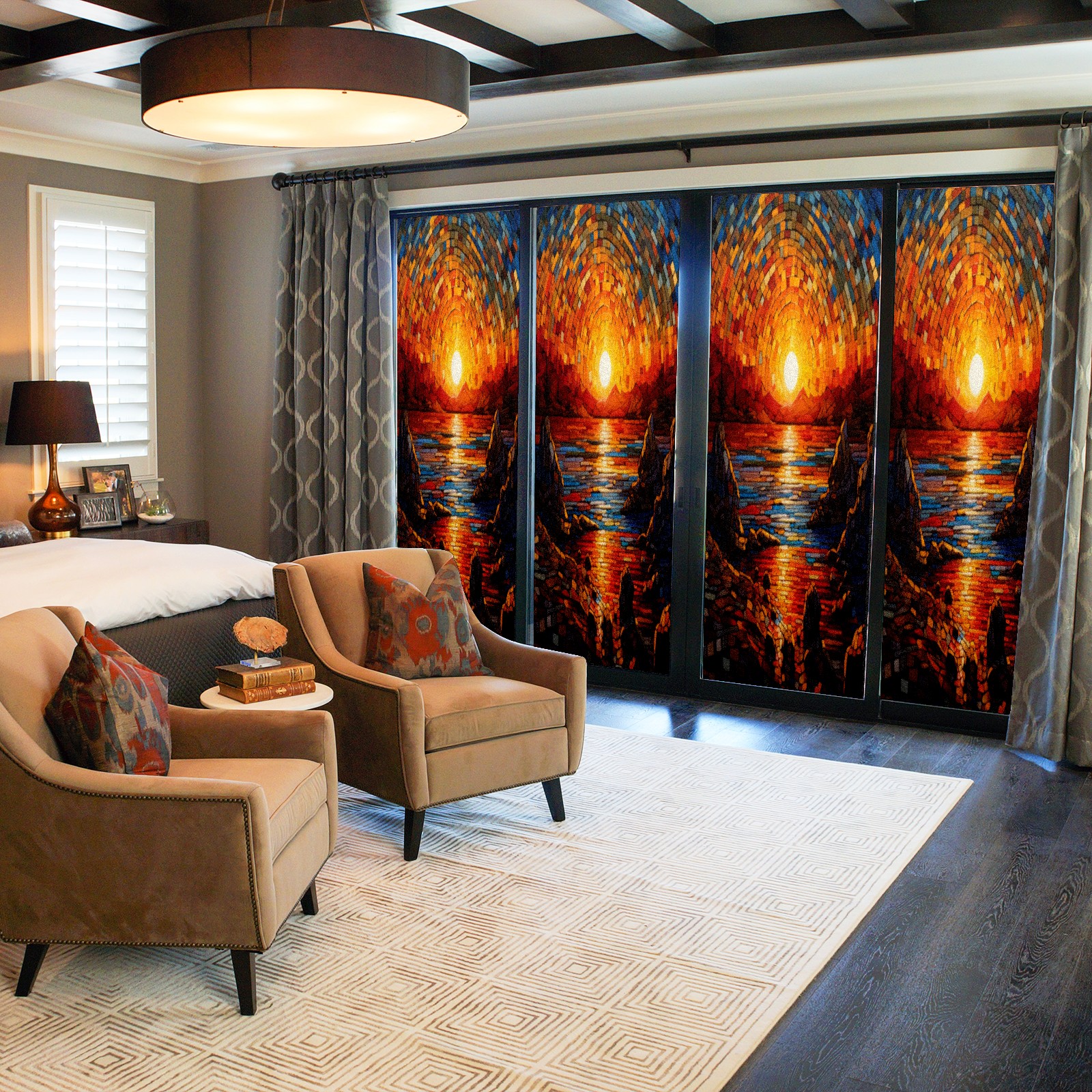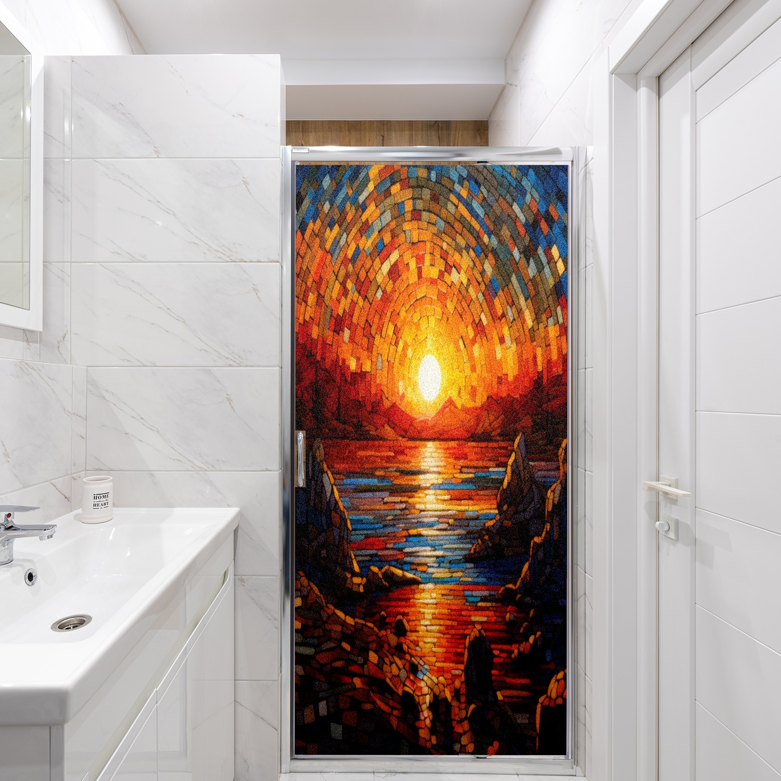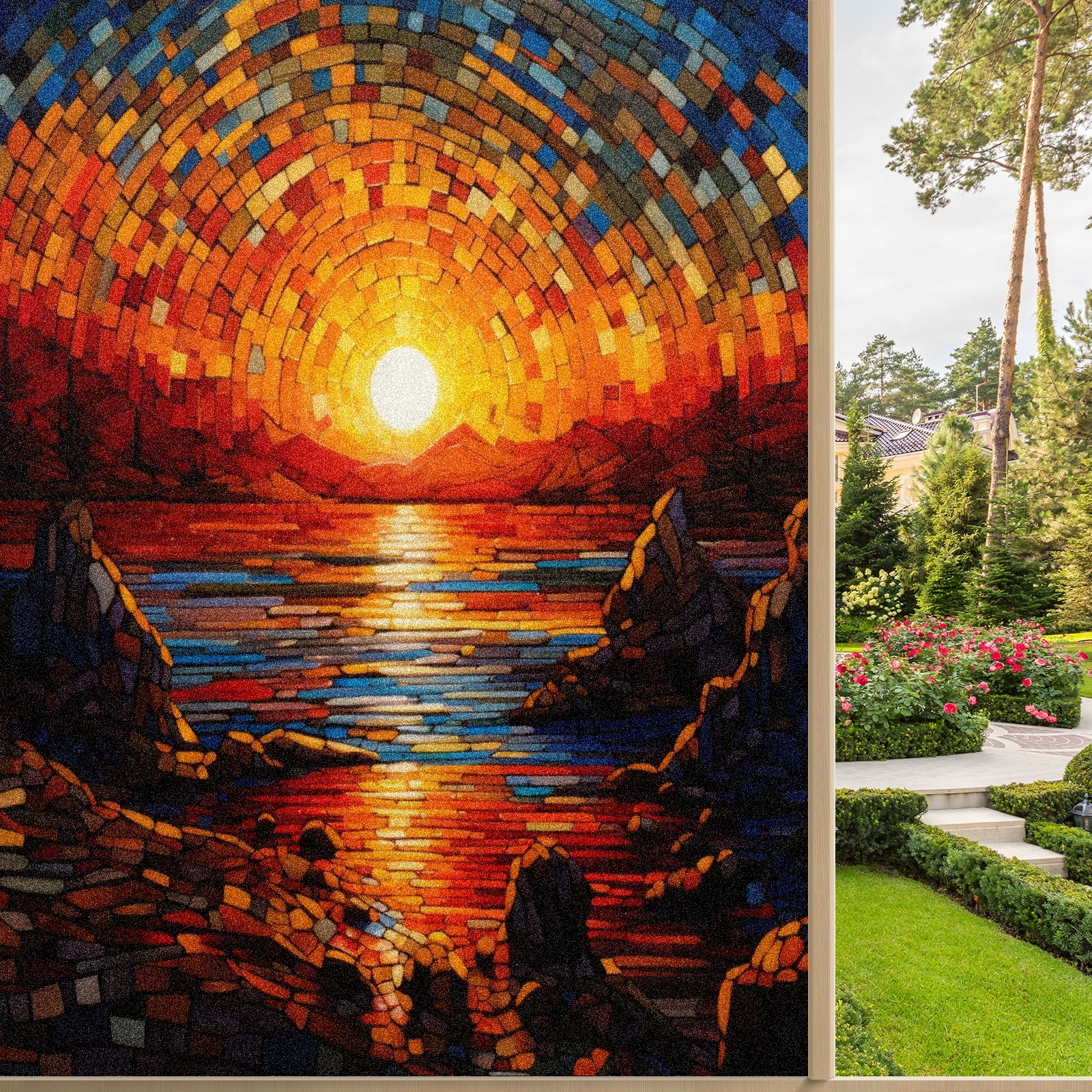 Window Privacy Film Frosted Stained Glass Film Decorative Static Cling for Bathroom Home Office Peel and Stick Window Film Sunset Mountain(17.7x23.6in)