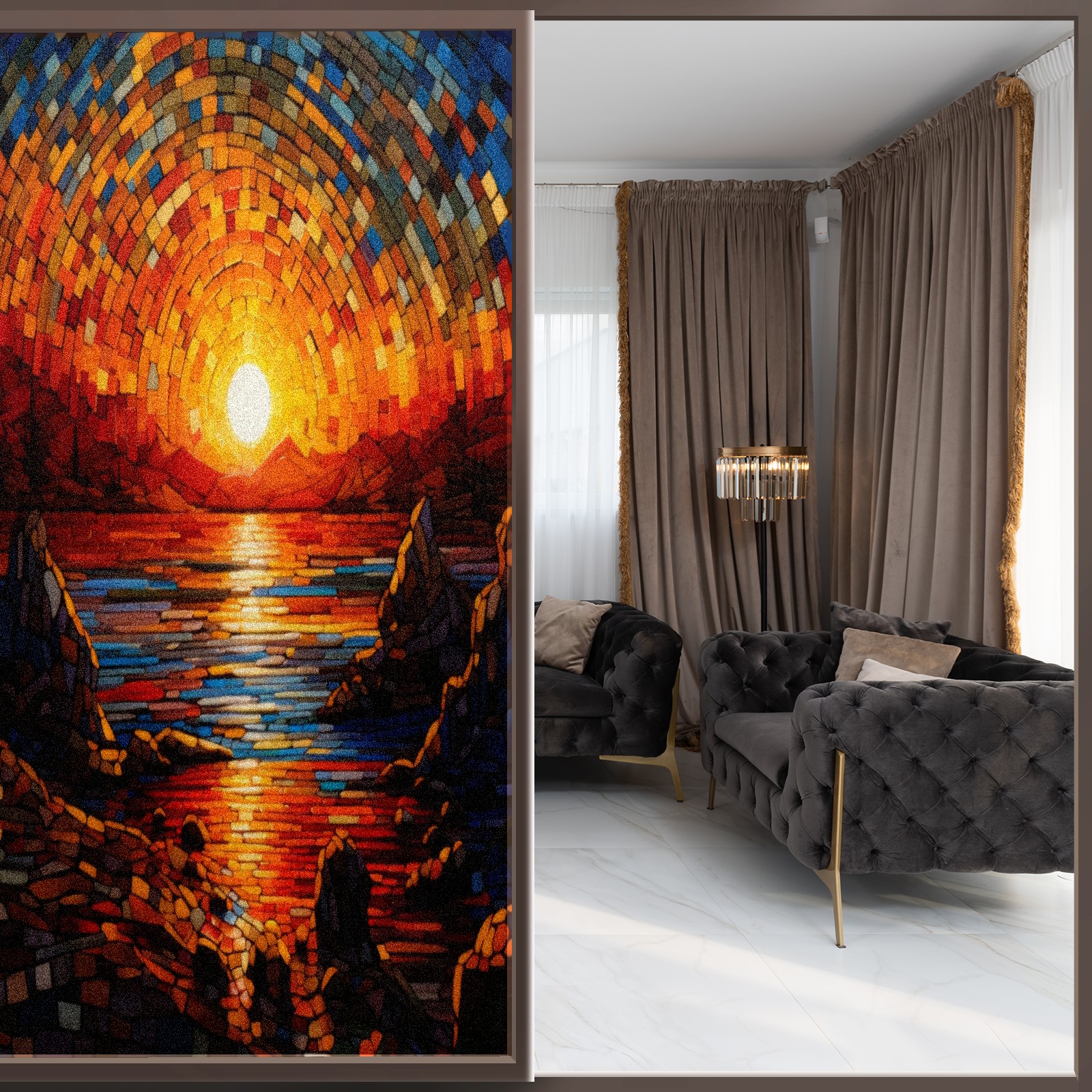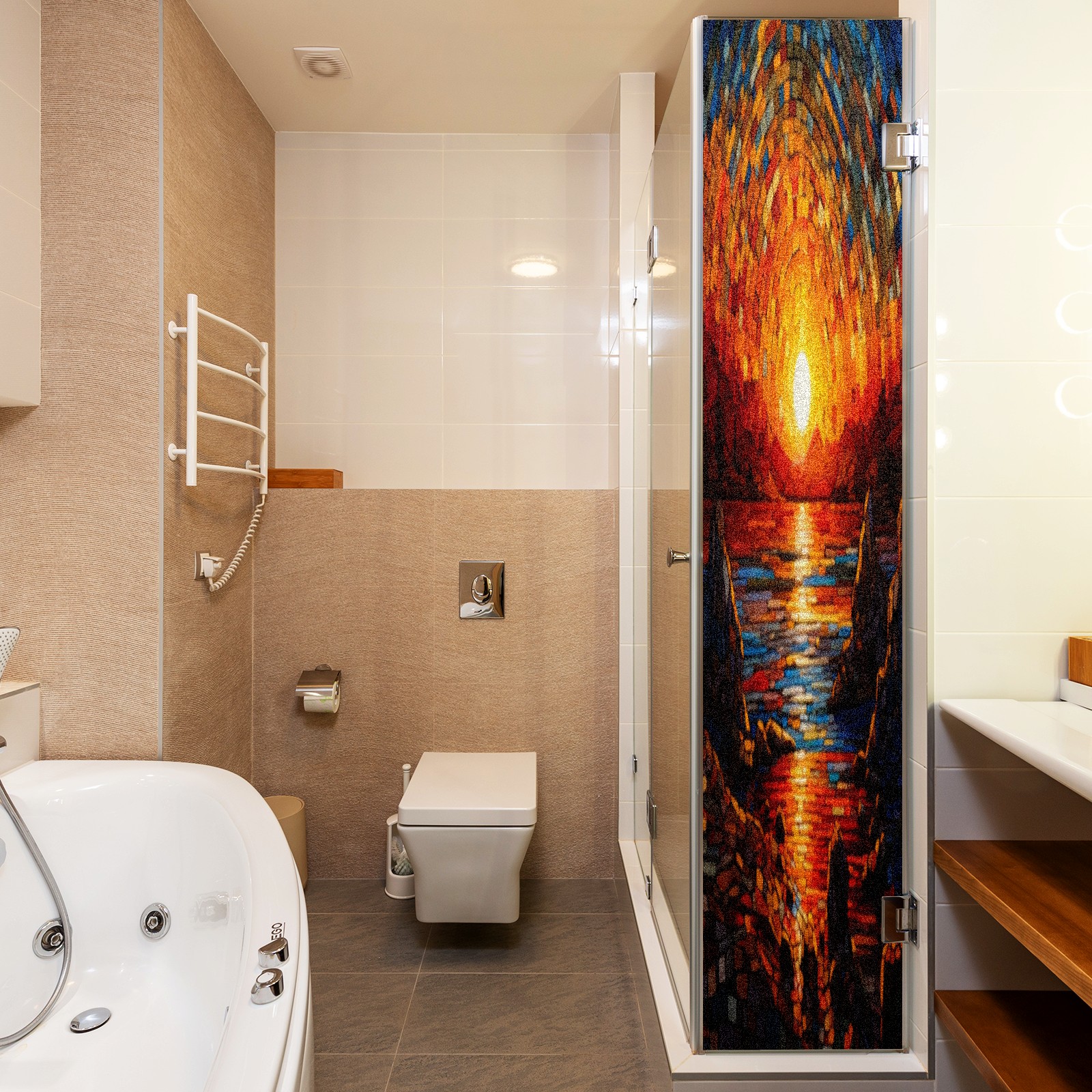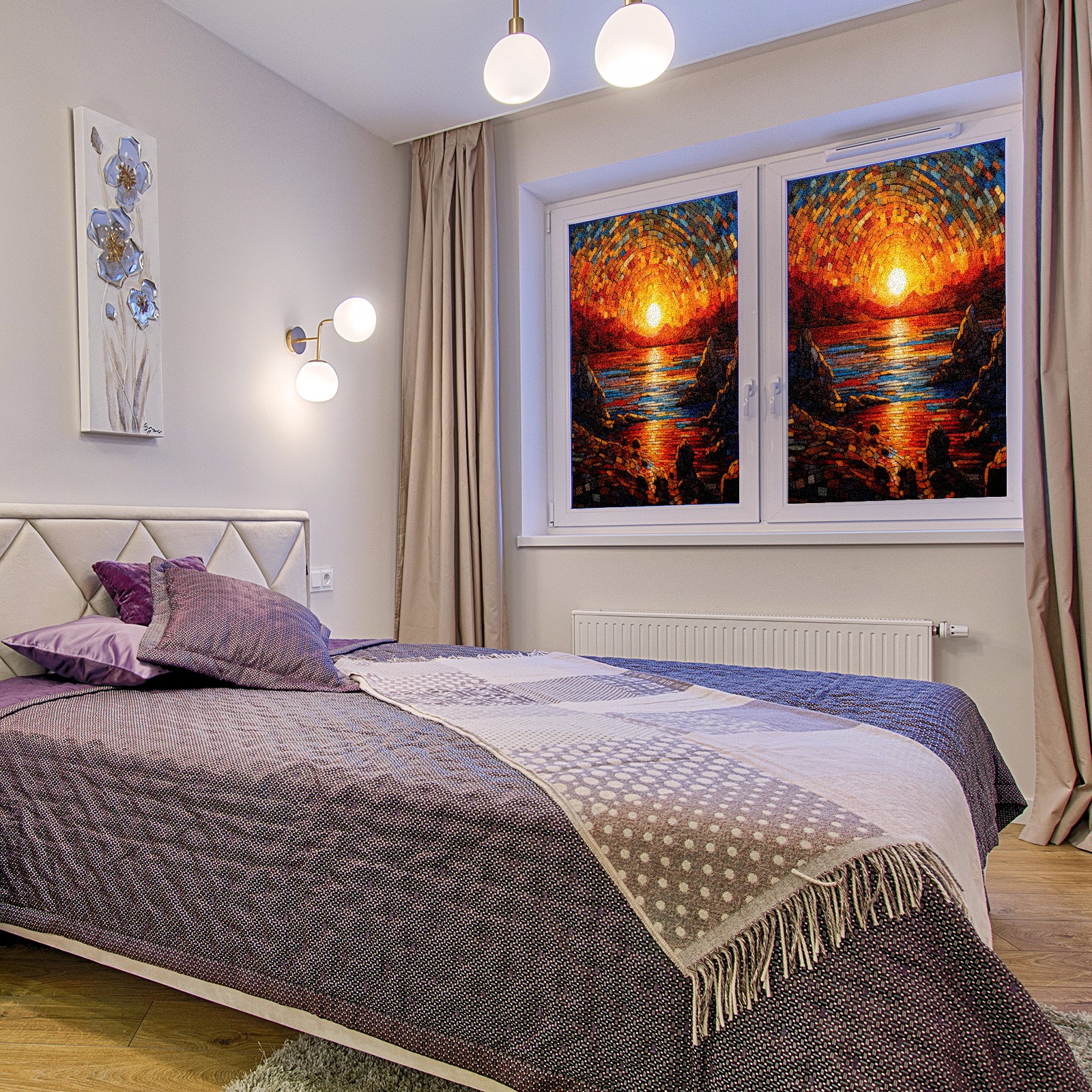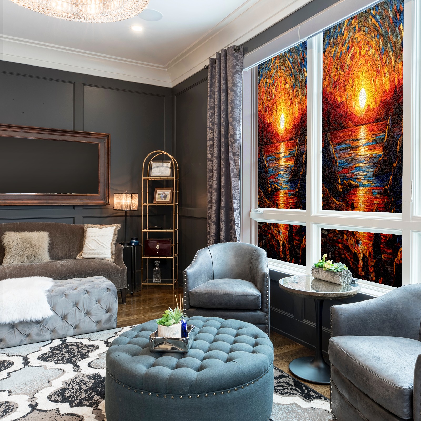 Window Privacy Film Frosted Stained Glass Film Decorative Static Cling for Bathroom Home Office Peel and Stick Window Film Sunset Mountain(17.7x23.6in)