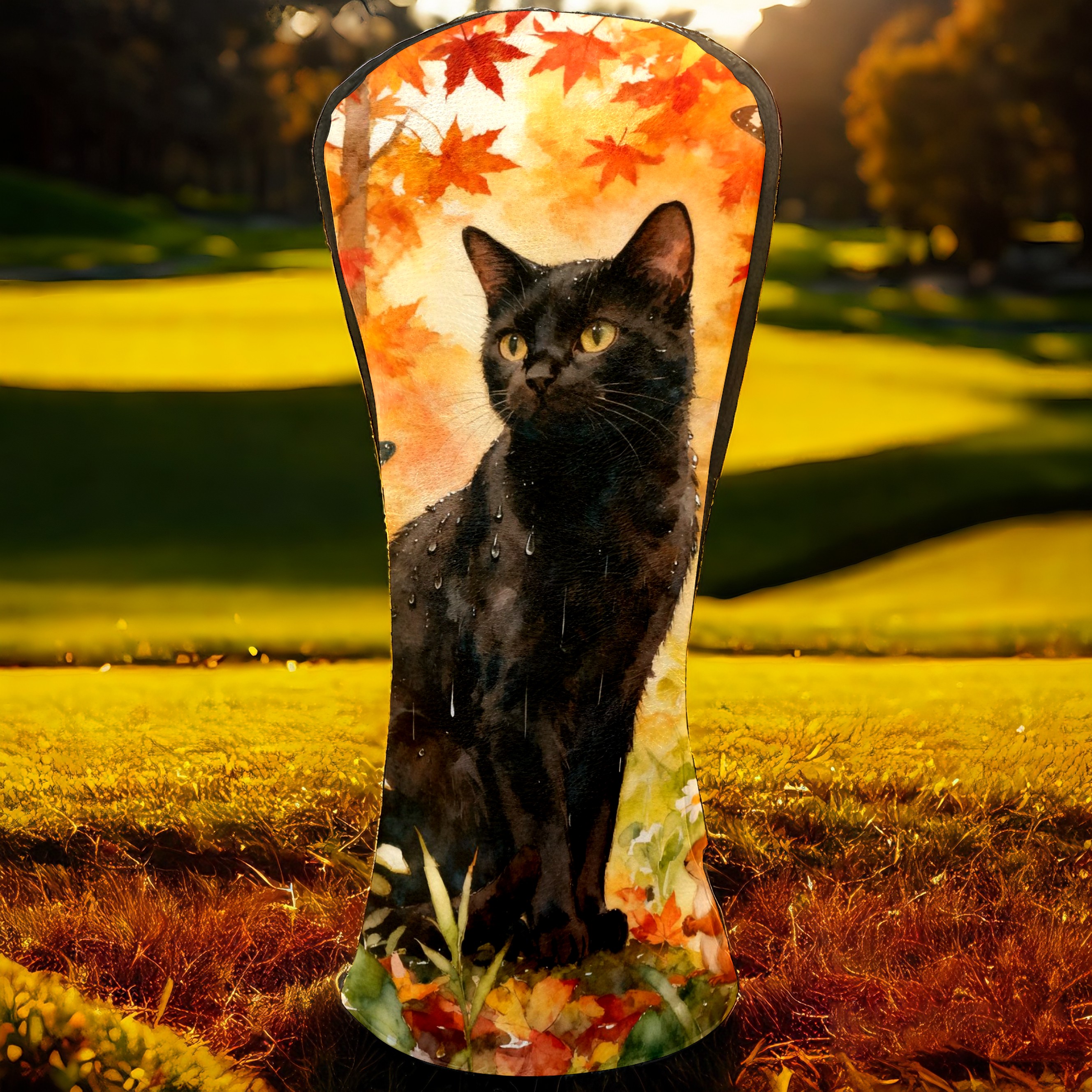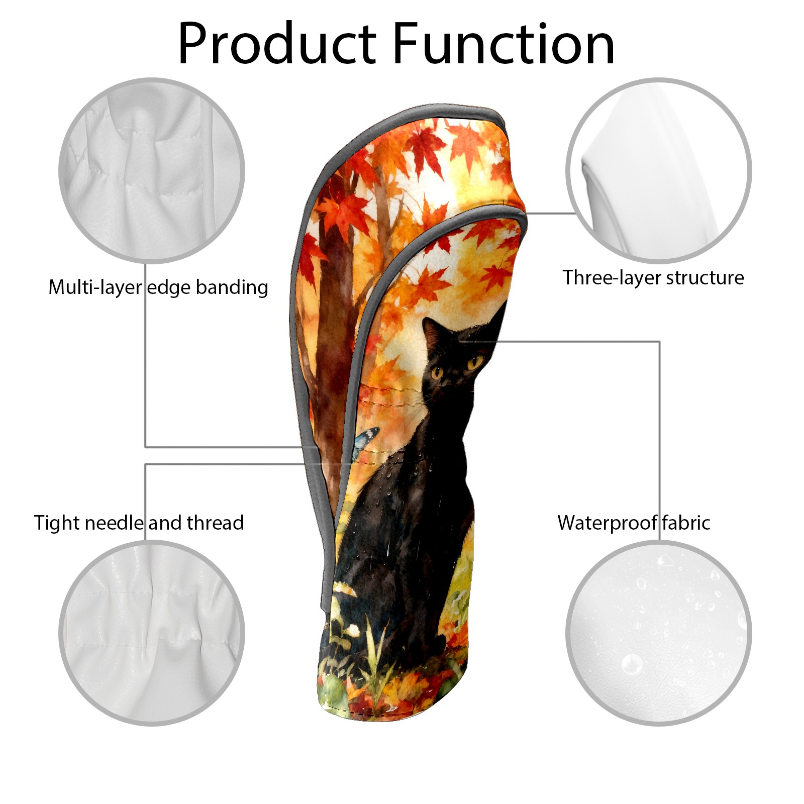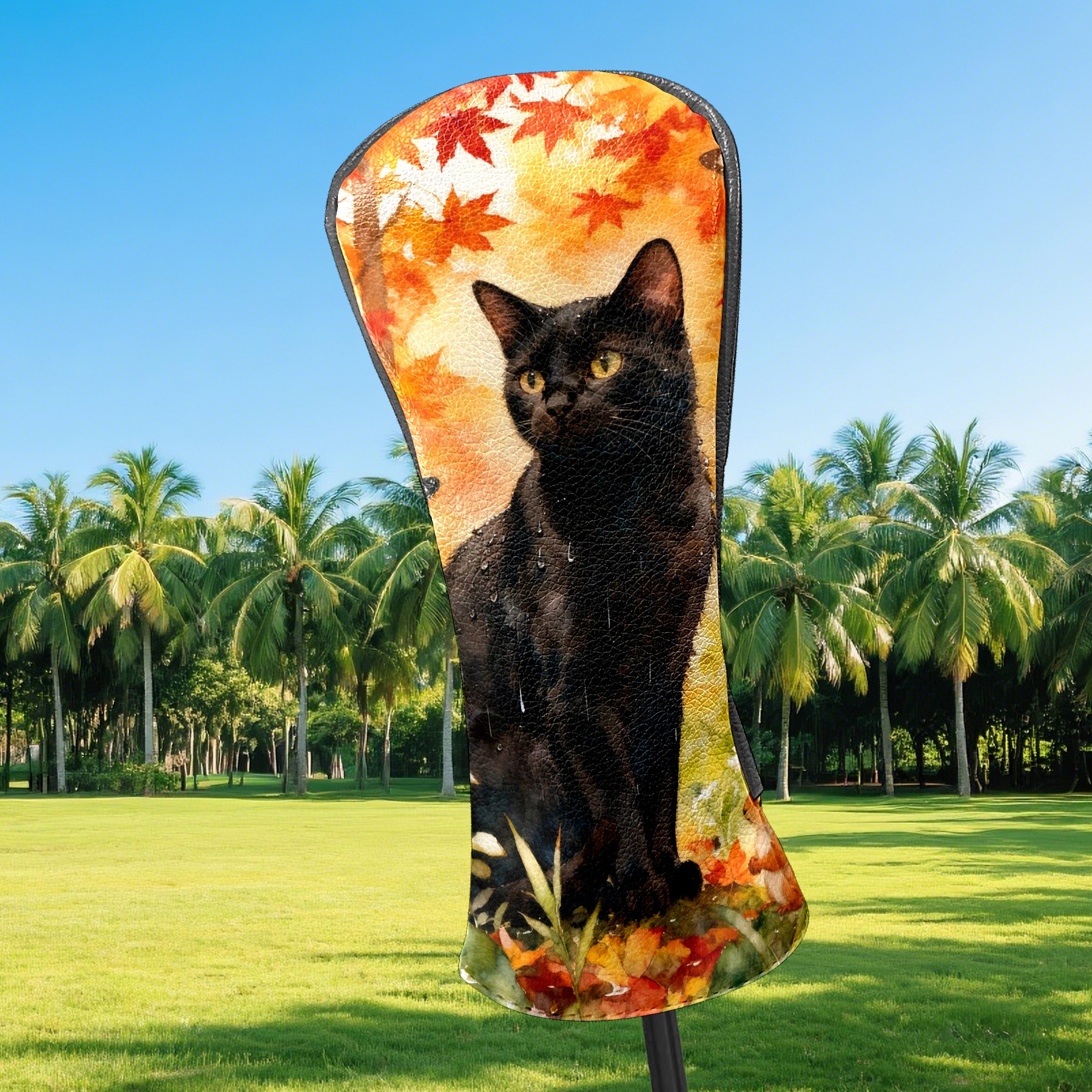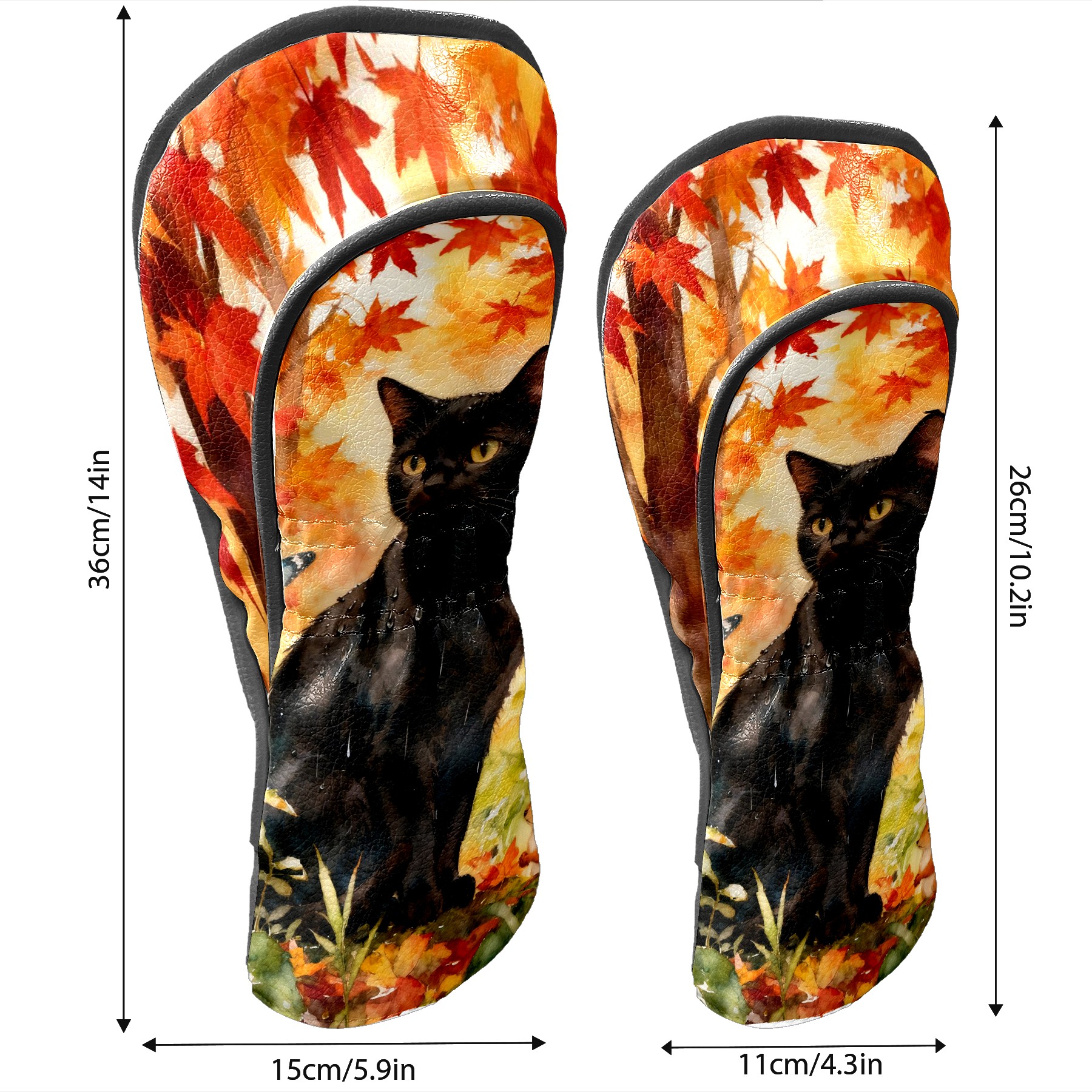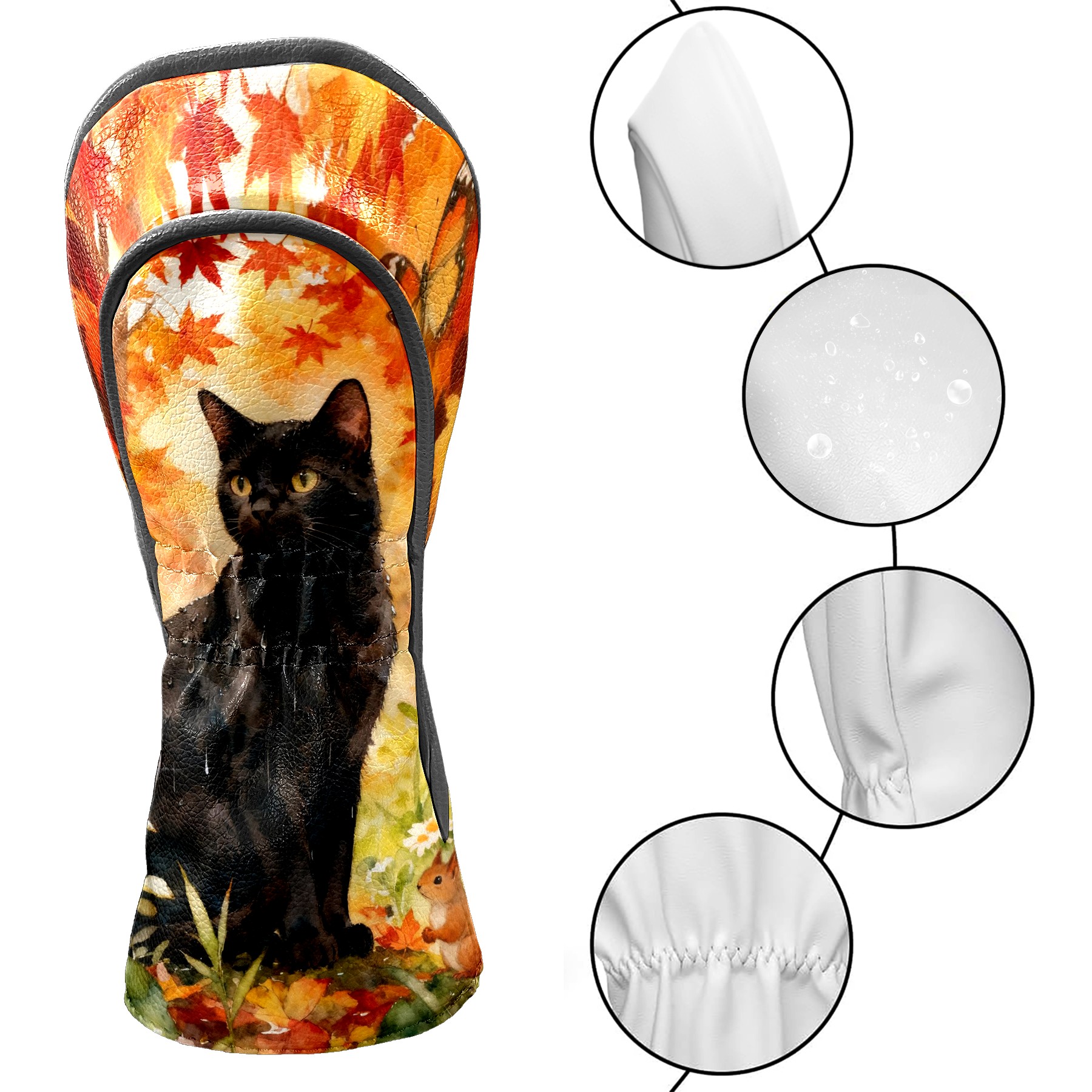 Golf Driver Head Covers Fairway Wood Headcovers, Premium Leather Golf Club Covers with Anti-Scratch Lining 1/3/5 Wood Cover for golf clubs for Women Men (Black Cat Autumn)