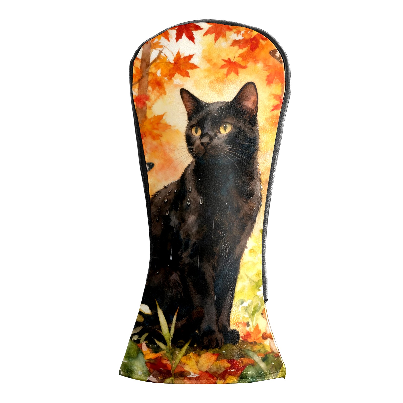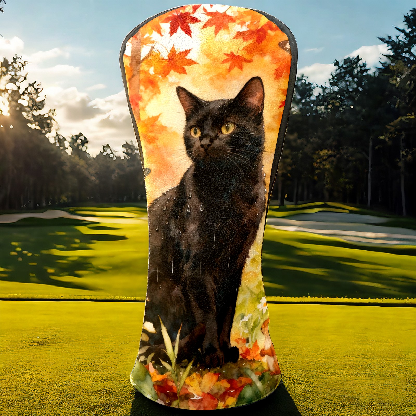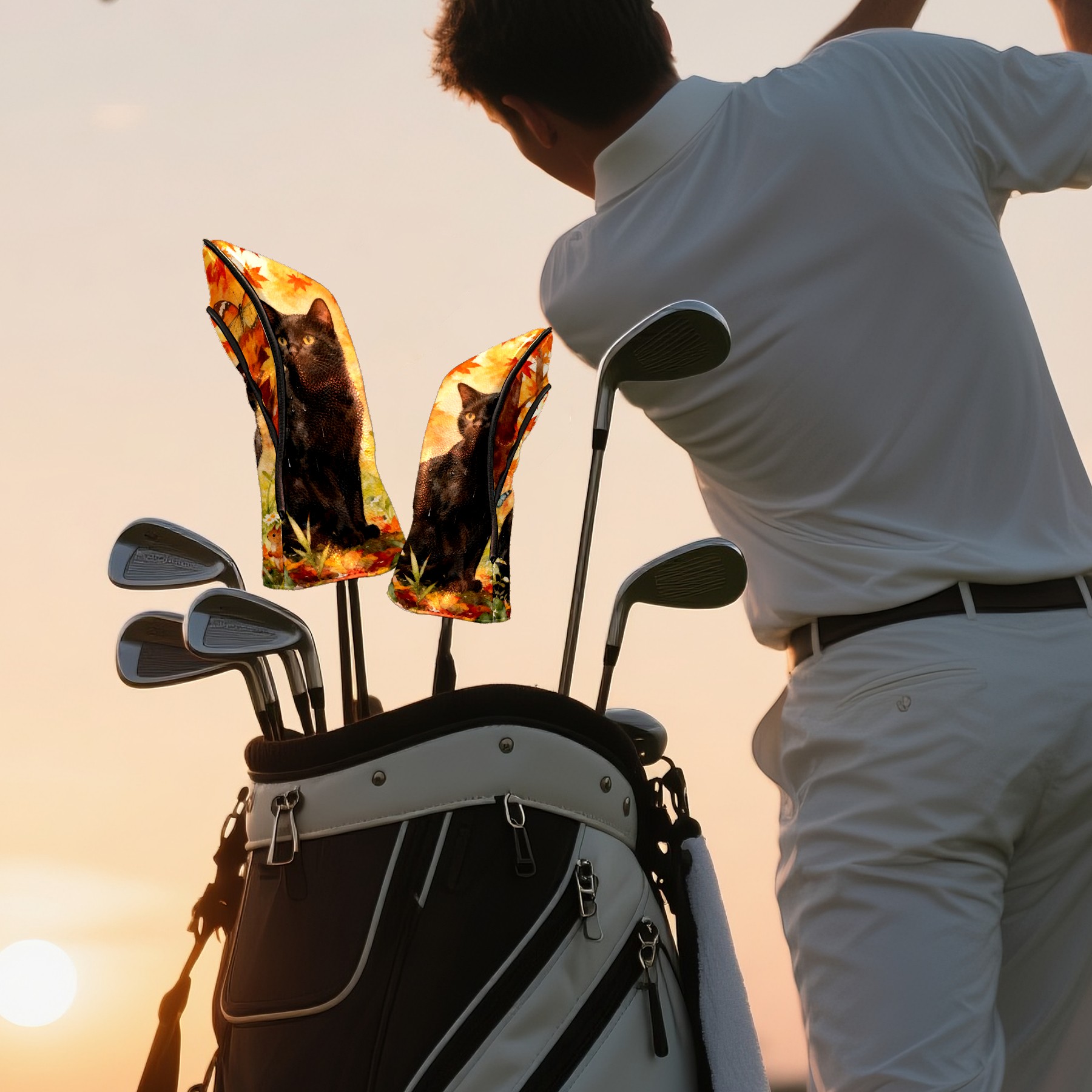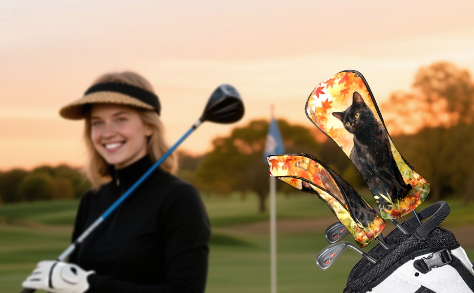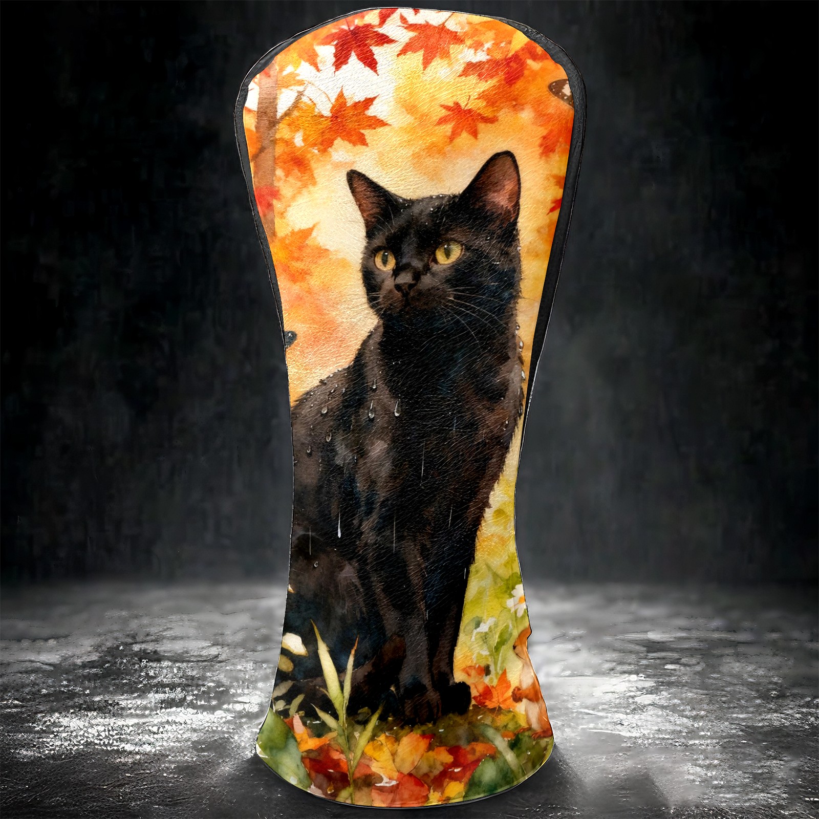 Golf Driver Head Covers Fairway Wood Headcovers, Premium Leather Golf Club Covers with Anti-Scratch Lining 1/3/5 Wood Cover for golf clubs for Women Men (Black Cat Autumn)