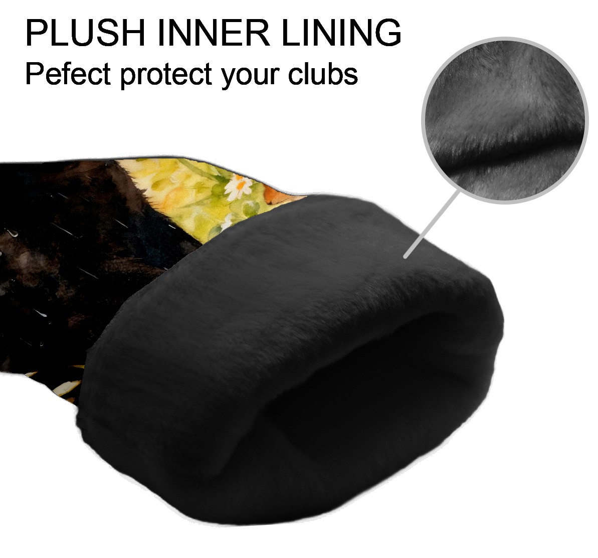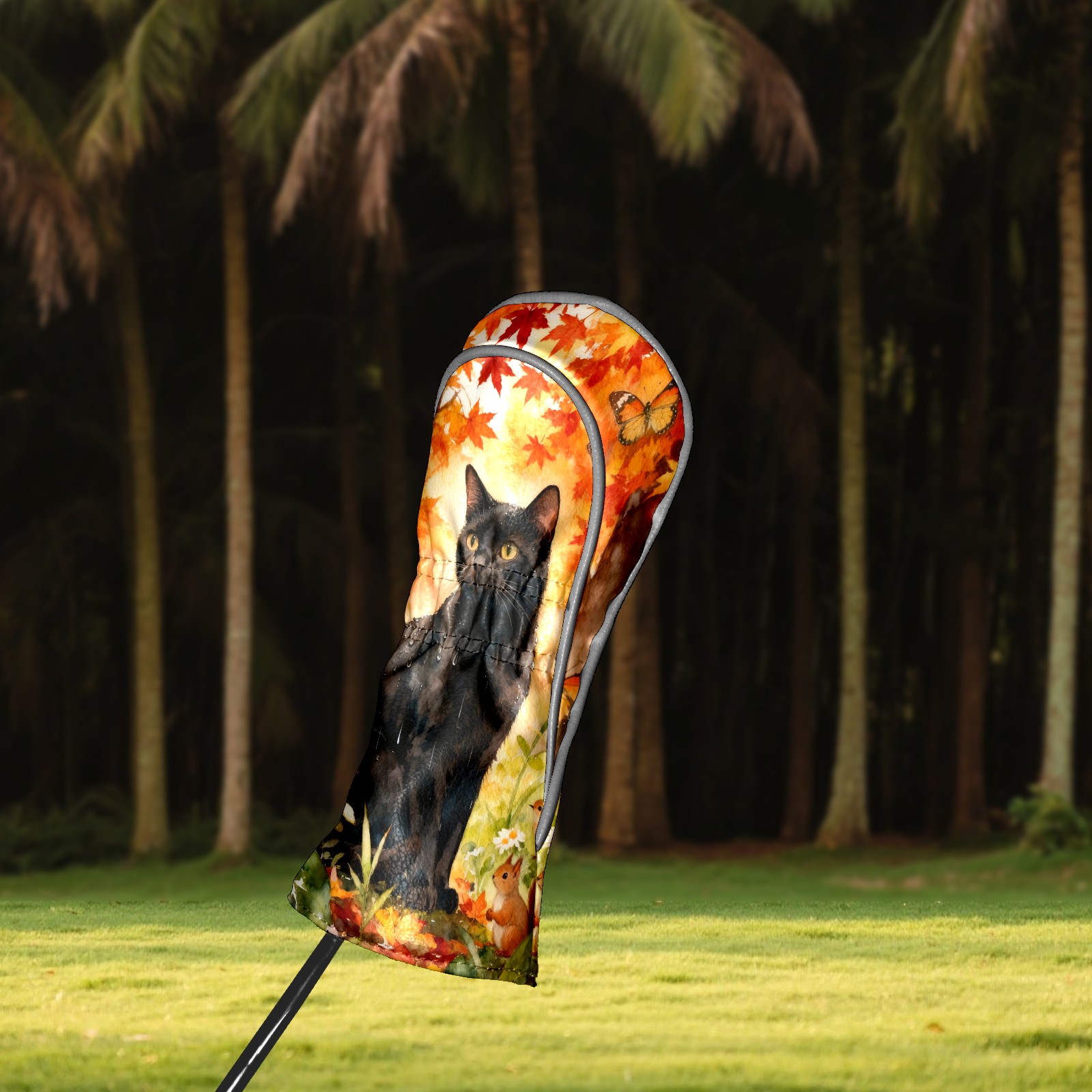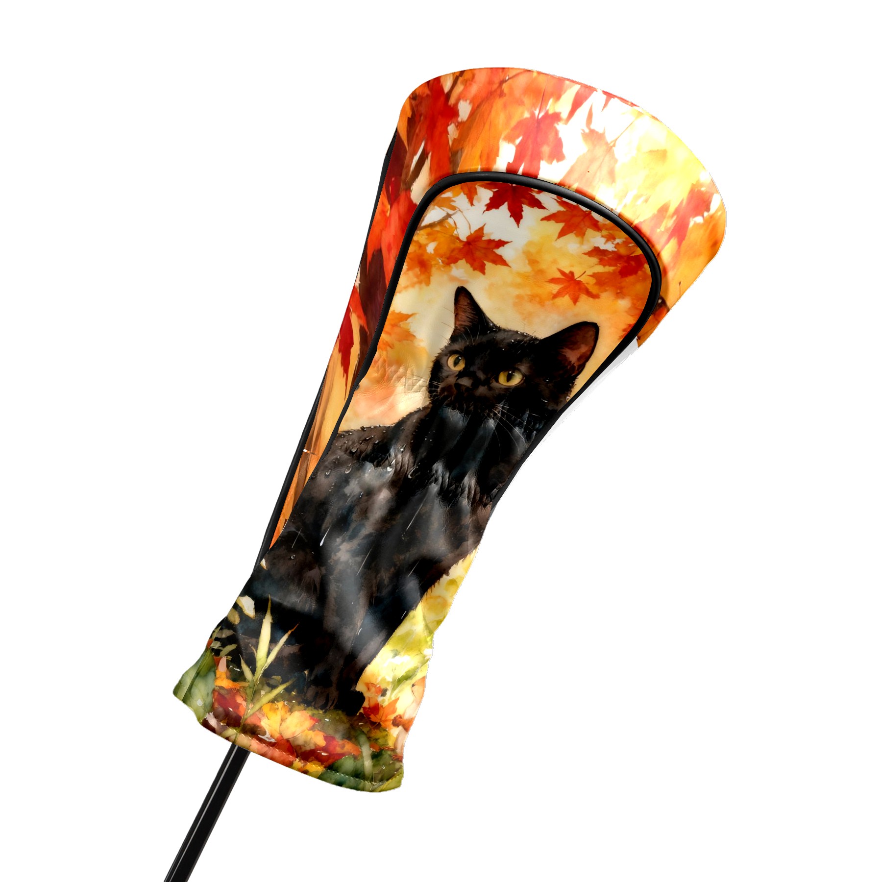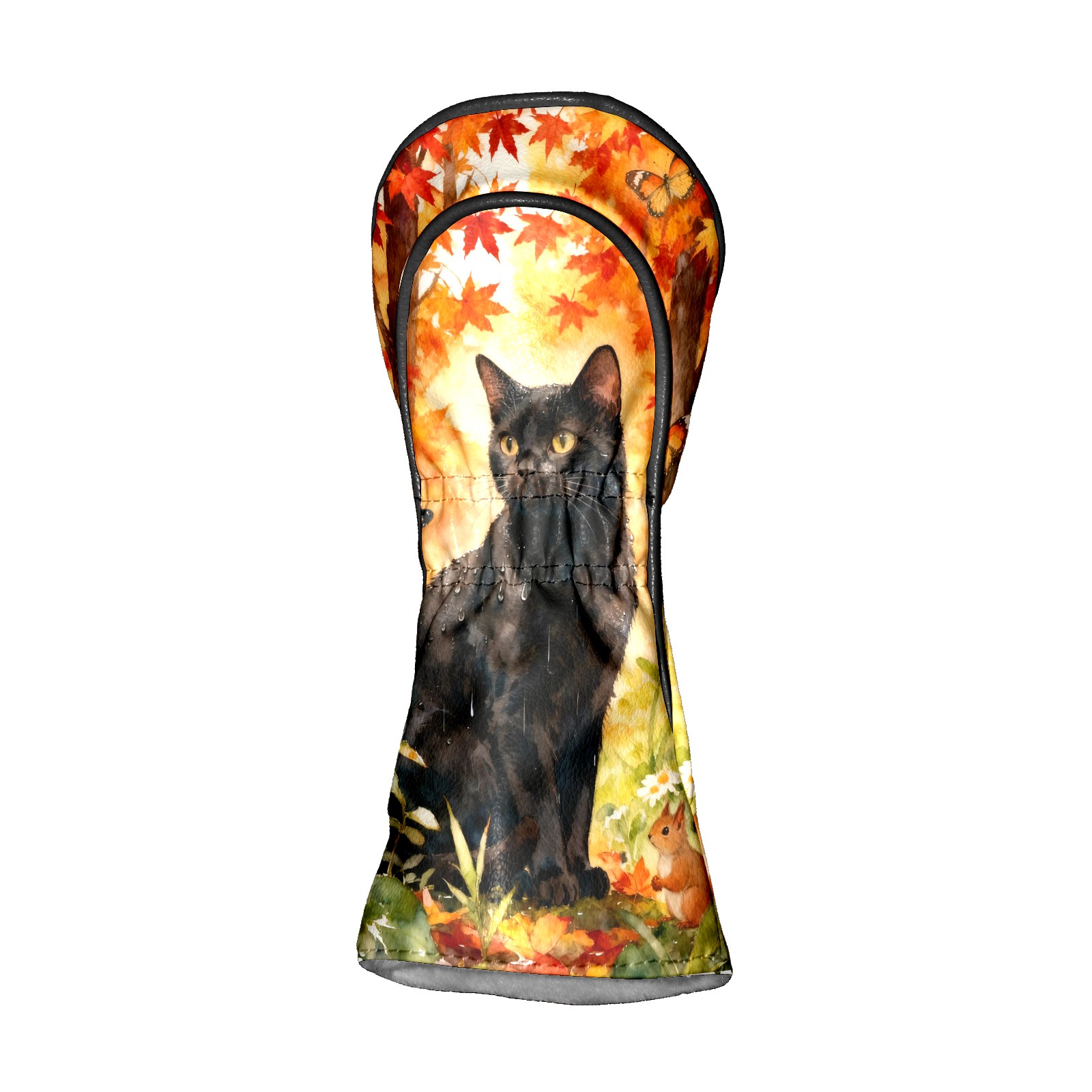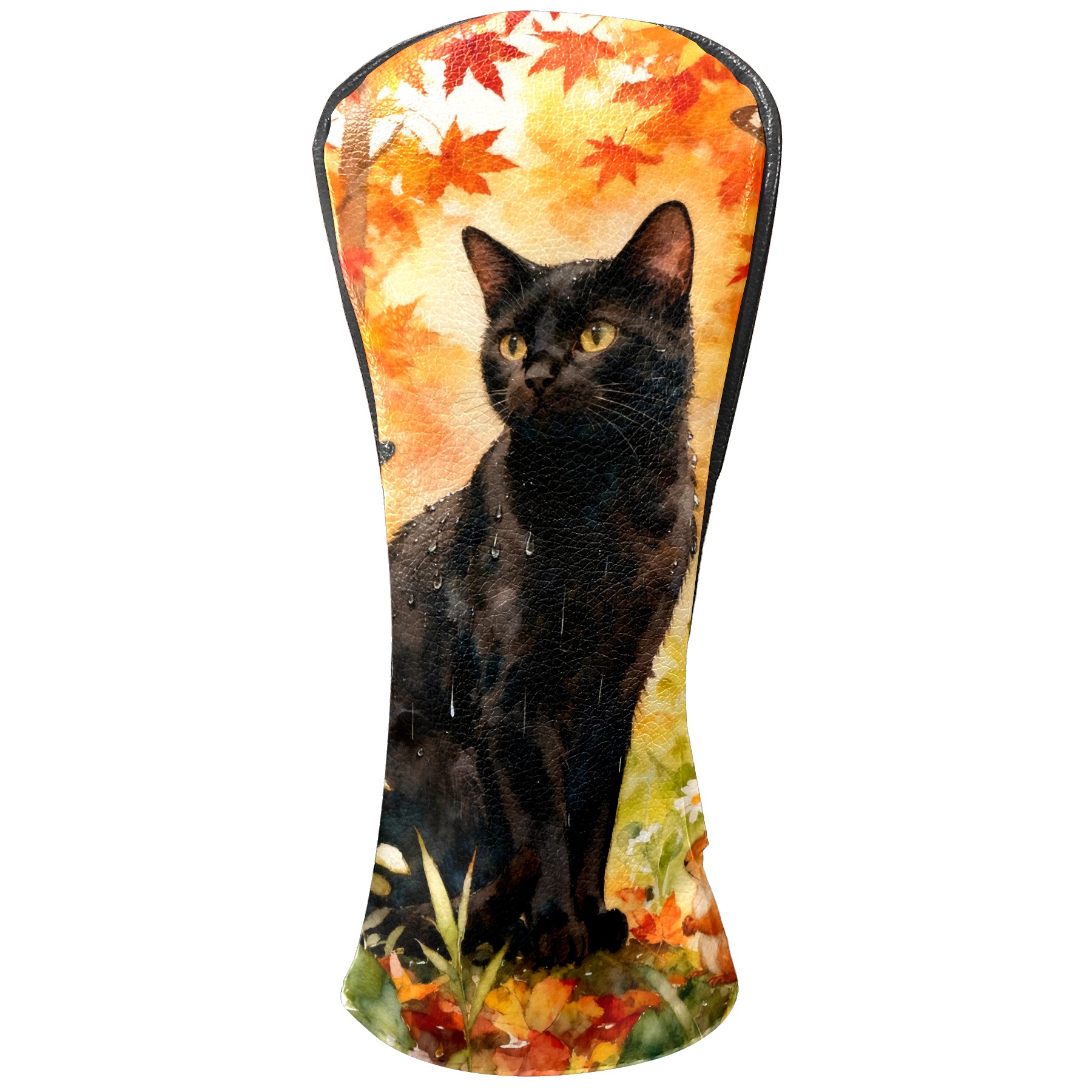 Golf Driver Head Covers Fairway Wood Headcovers, Premium Leather Golf Club Covers with Anti-Scratch Lining 1/3/5 Wood Cover for golf clubs for Women Men (Black Cat Autumn)