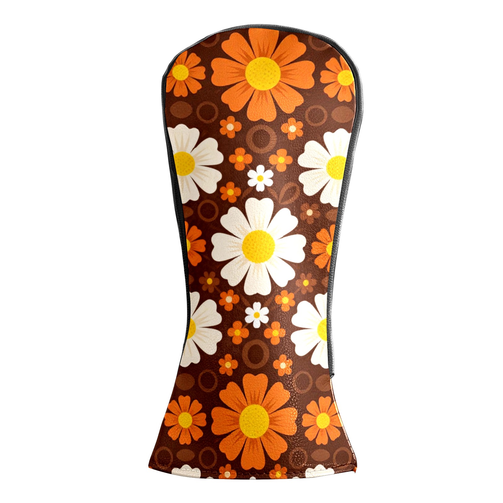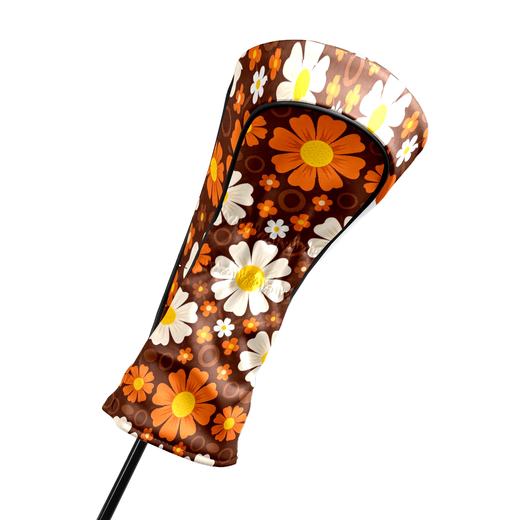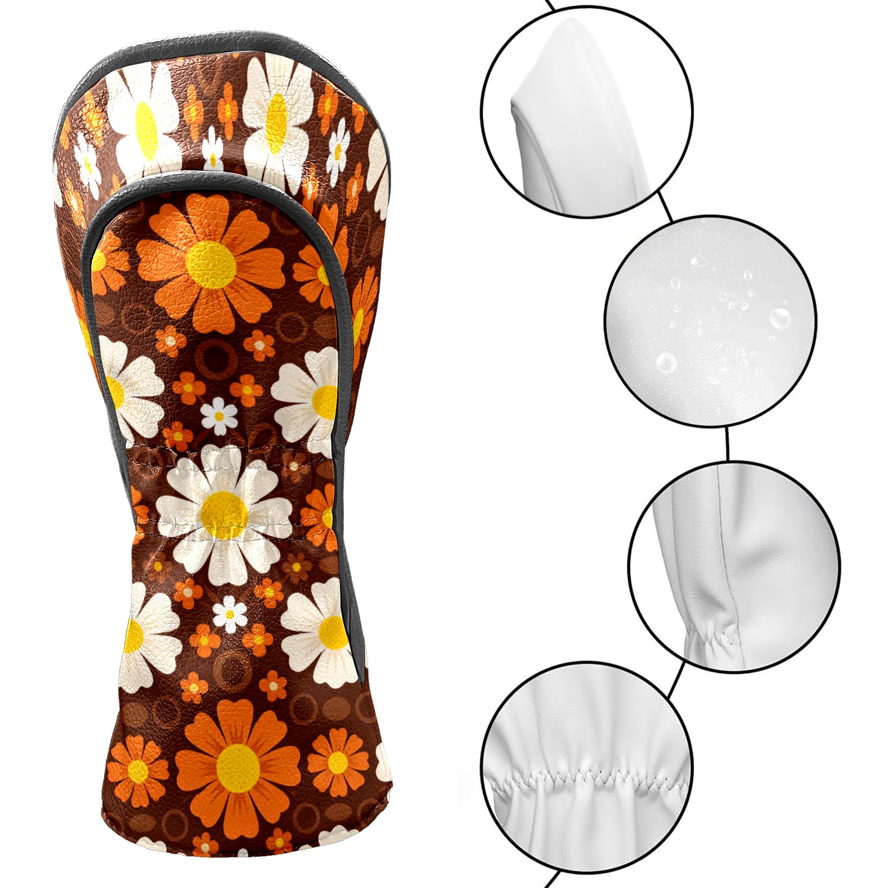 Golf Driver Head Covers Fairway Wood Headcovers, Premium Leather Golf Club Covers with Anti-Scratch Lining 1/3/5 Wood Cover for golf clubs for Women Men (Vintage Daisy Flowers)