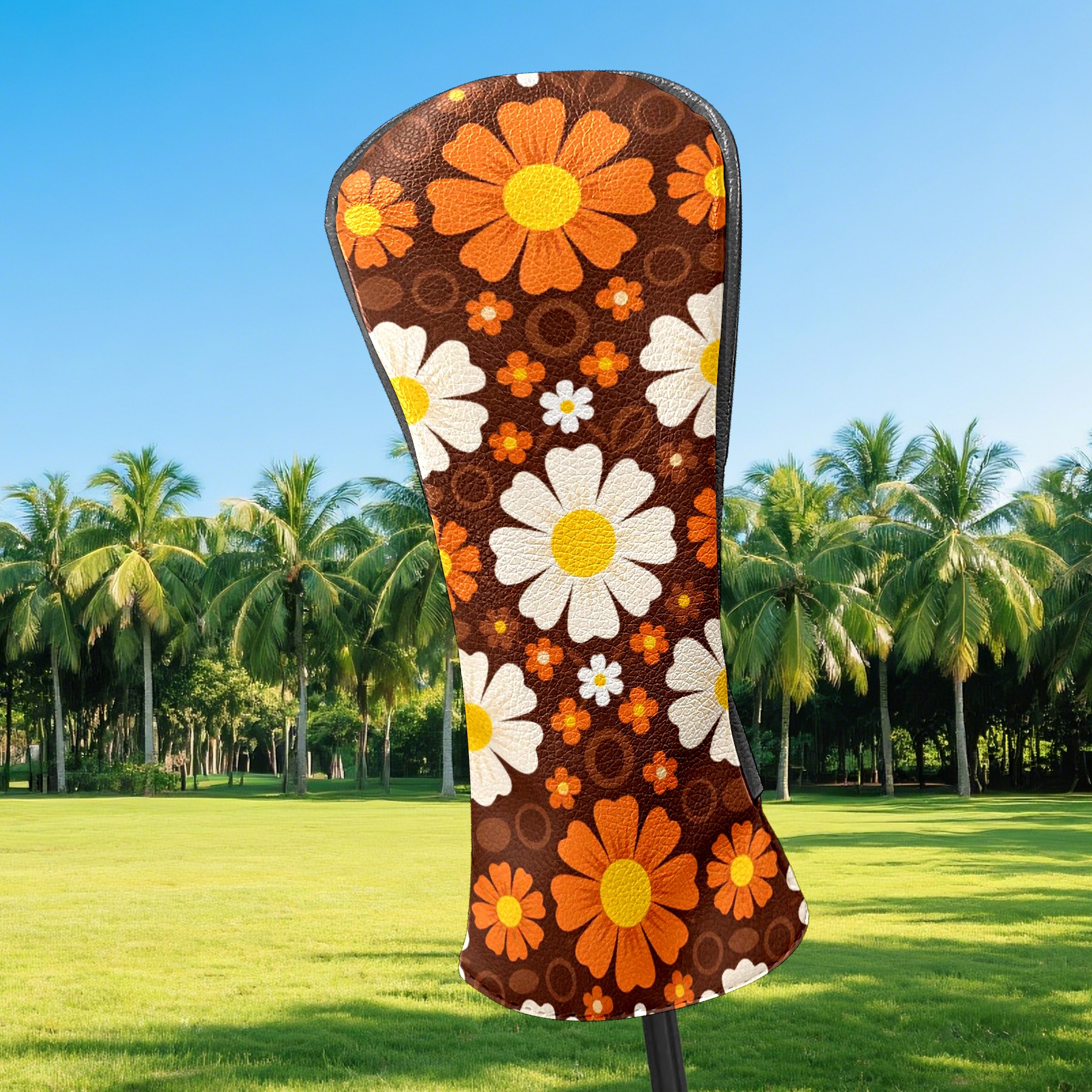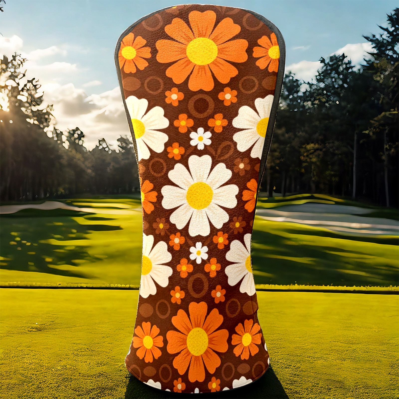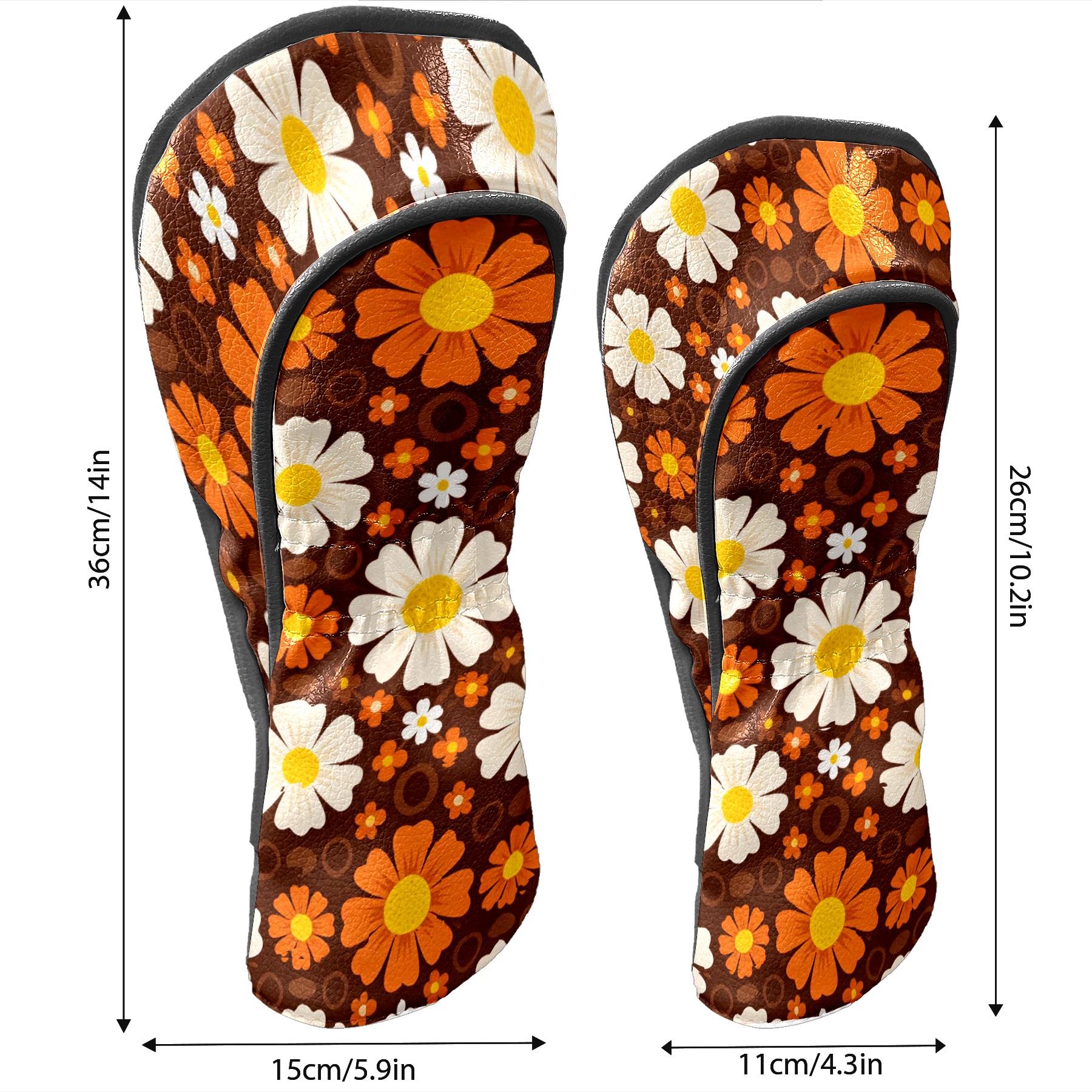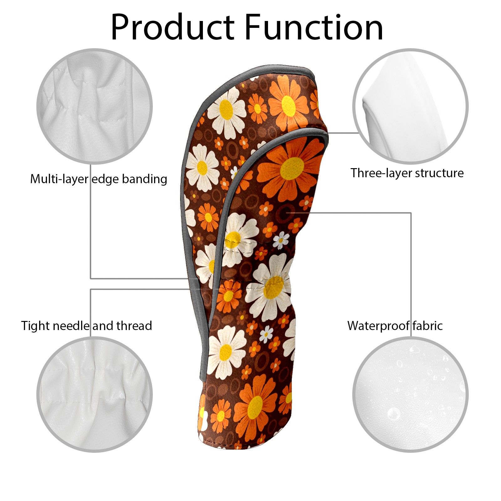 Golf Driver Head Covers Fairway Wood Headcovers, Premium Leather Golf Club Covers with Anti-Scratch Lining 1/3/5 Wood Cover for golf clubs for Women Men (Vintage Daisy Flowers)