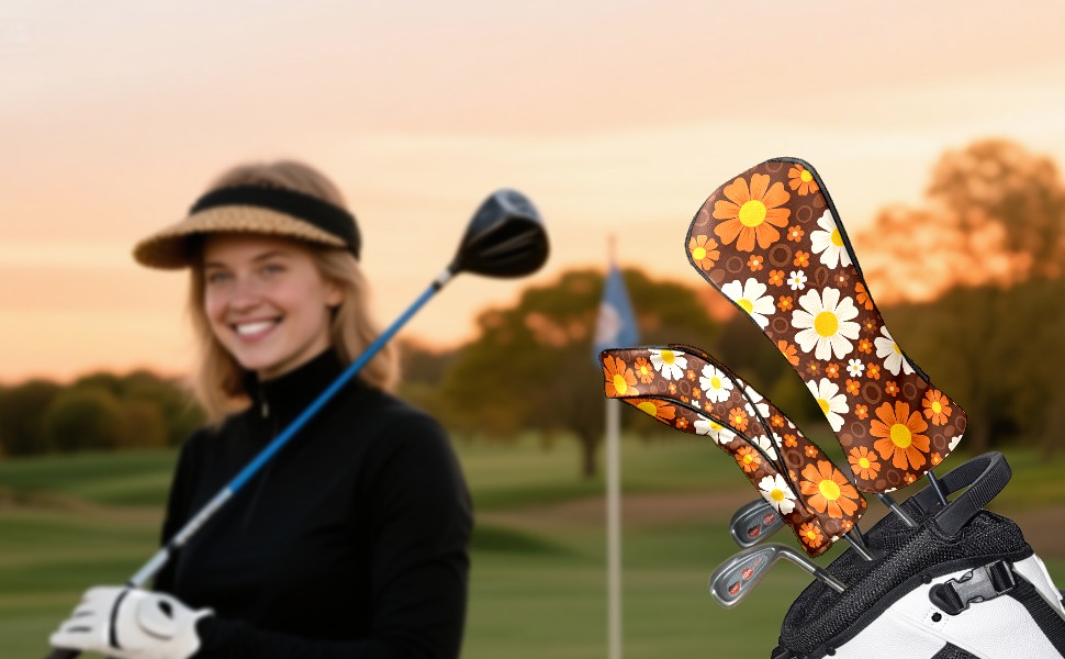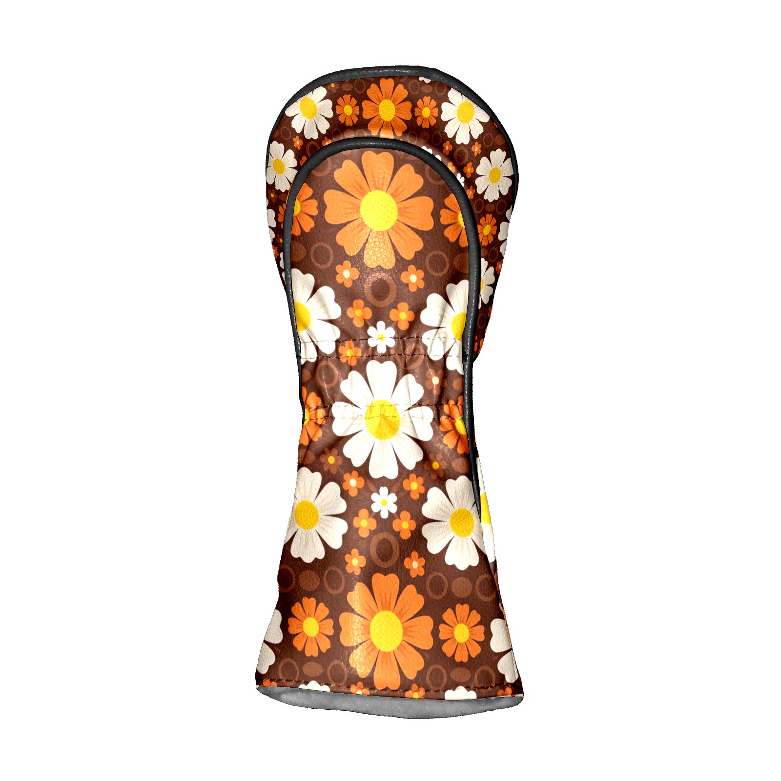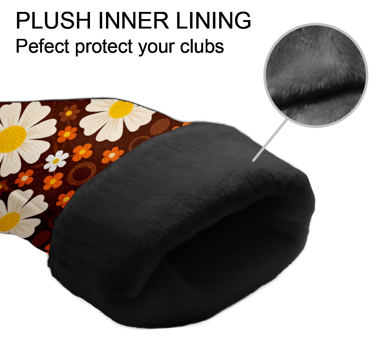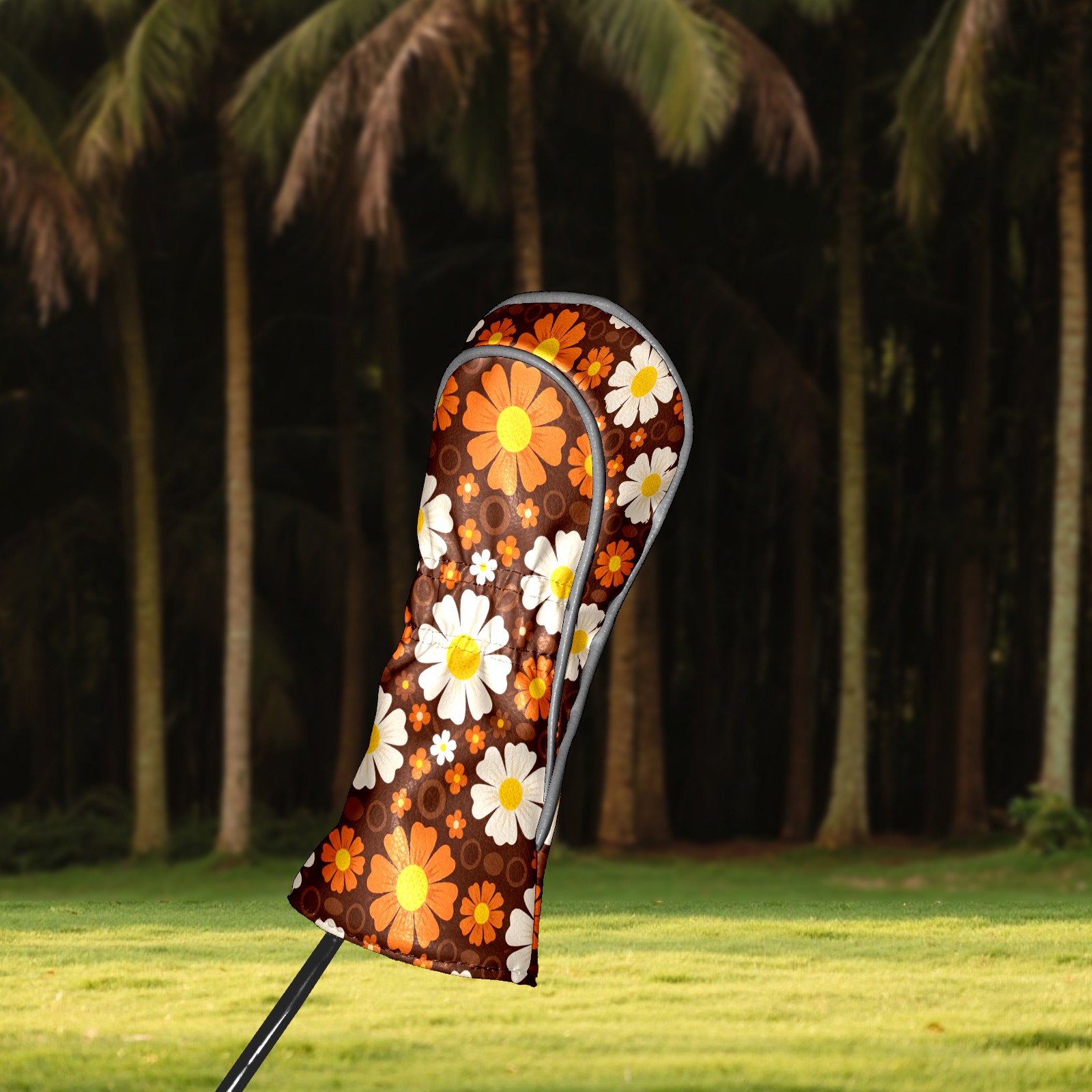 Golf Driver Head Covers Fairway Wood Headcovers, Premium Leather Golf Club Covers with Anti-Scratch Lining 1/3/5 Wood Cover for golf clubs for Women Men (Vintage Daisy Flowers)