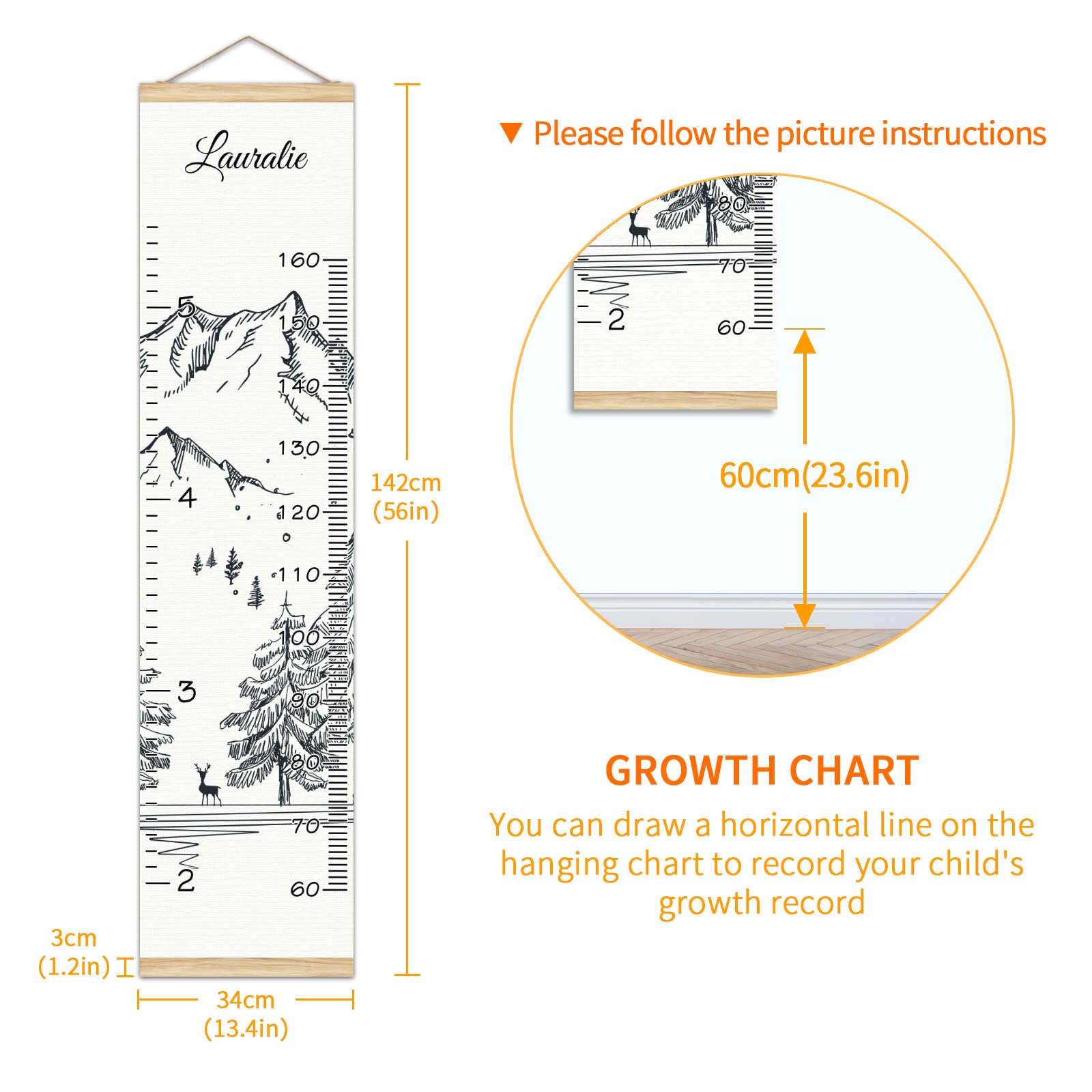Personalized Kids Name Growth Chart Ruler for Wall Wood Frame Canvas Height Measure Chart 13.4x56 in Hanging Growth Chart Winter Mountain12.18-1 Boys Girls Room Decor