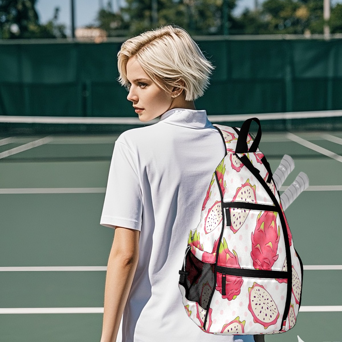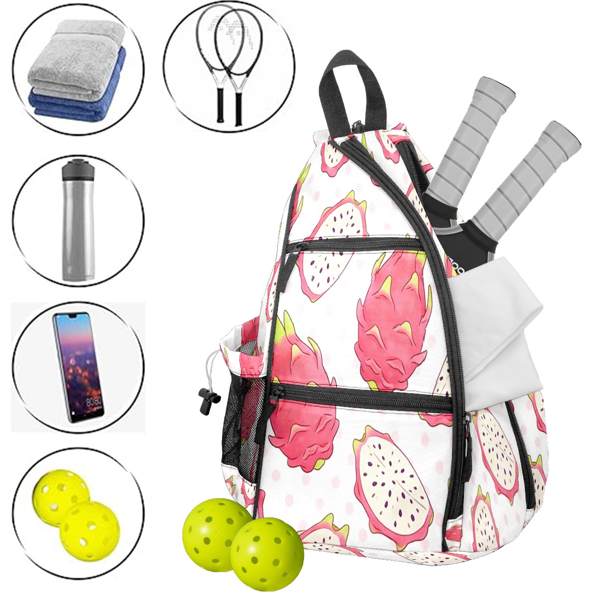 Pickleball Bag - Dragon Fruit Pattern Unisex Pickleball Backpack with Fence Hook, Adjustable Shoulder Straps, Security Pocket, Gift for Pickle Ball Enthusiasts