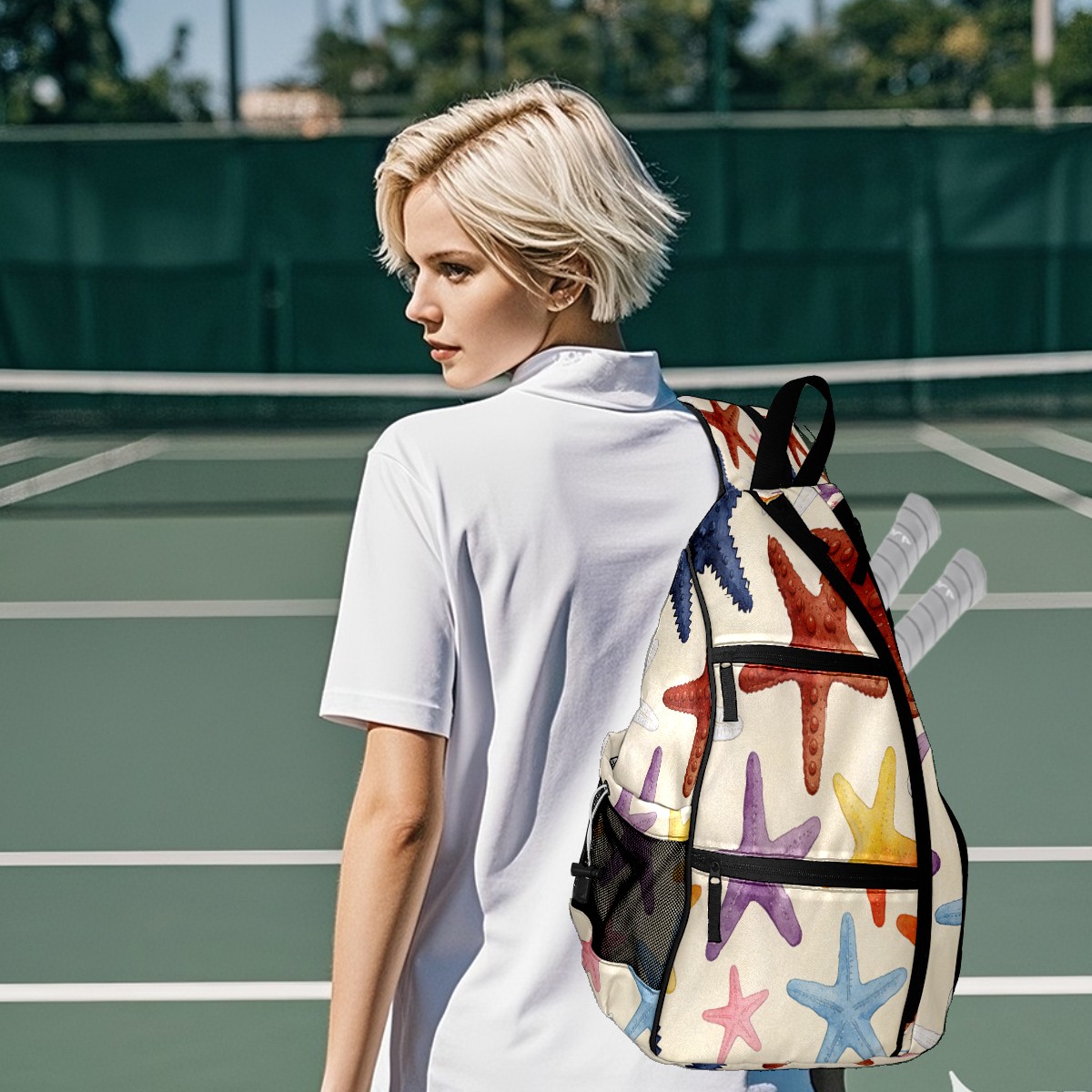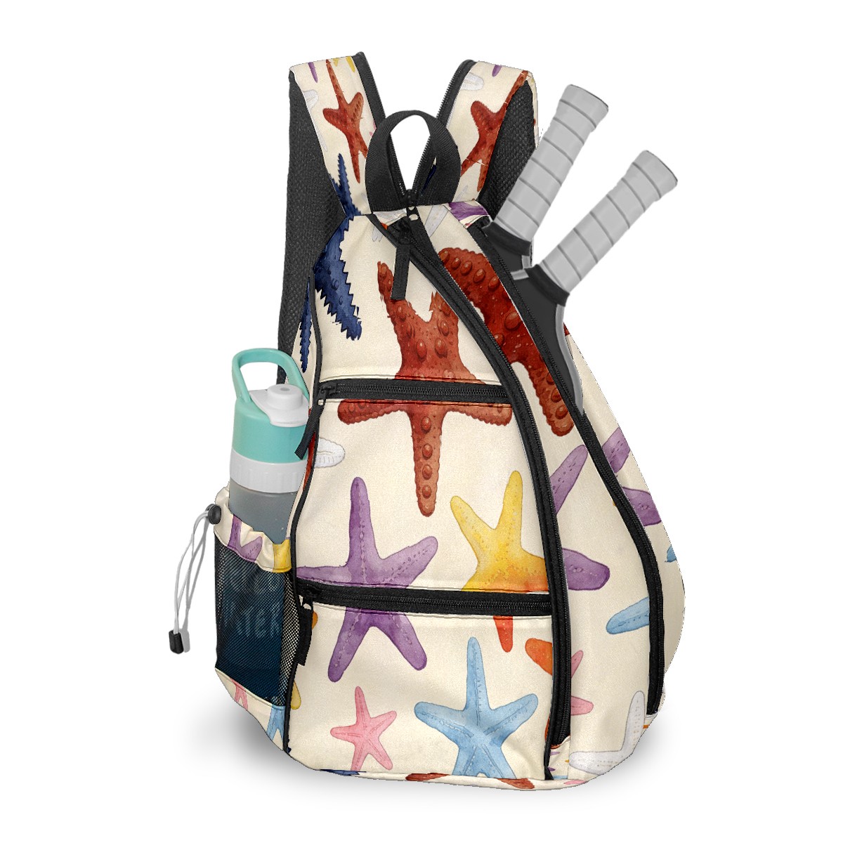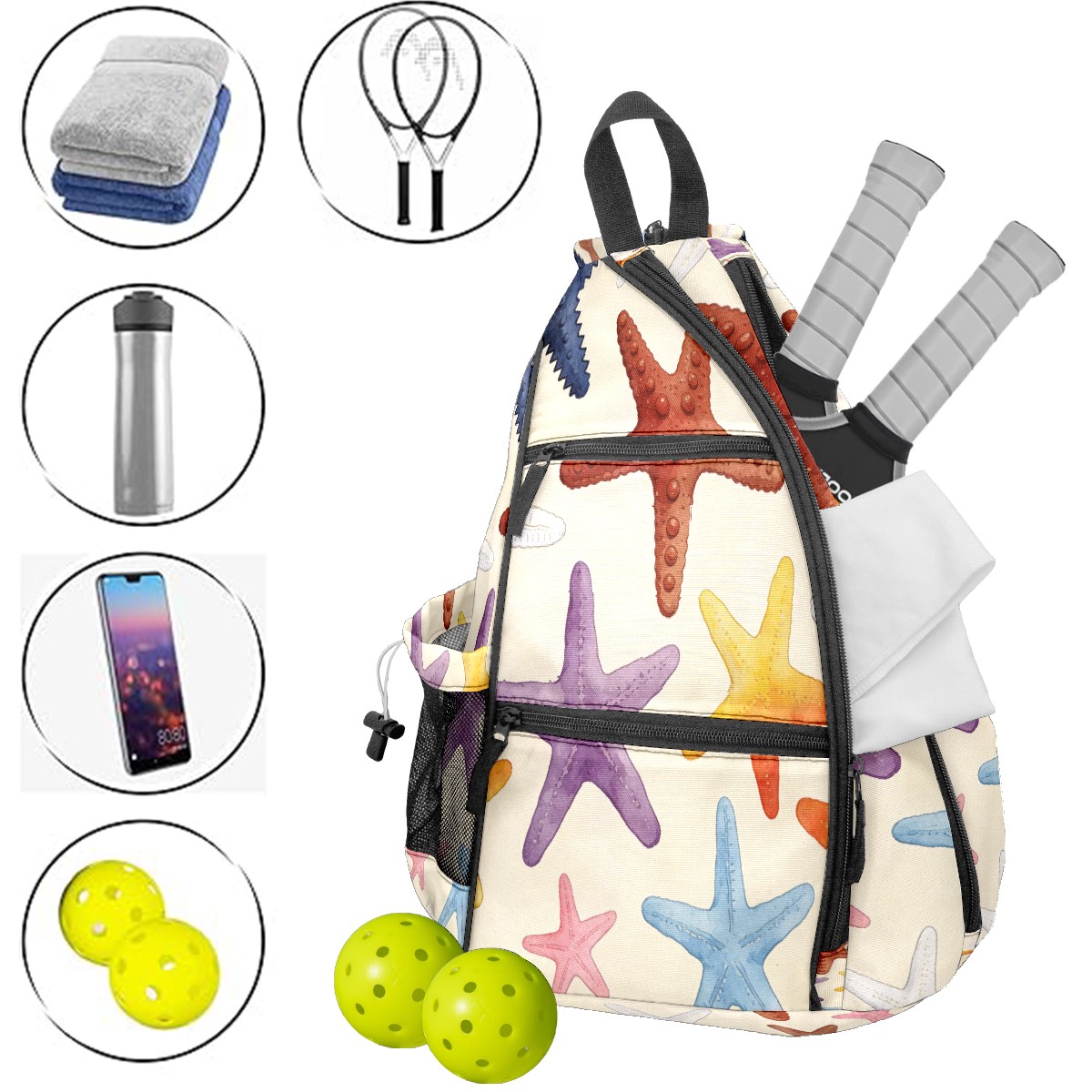 Pickleball Bag - Colorful Starfish Unisex Pickleball Backpack with Fence Hook, Adjustable Shoulder Straps, Security Pocket, Gift for Pickle Ball Enthusiasts