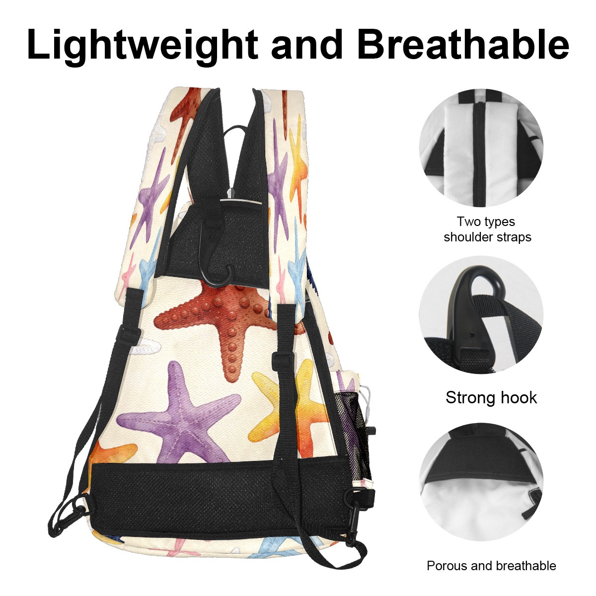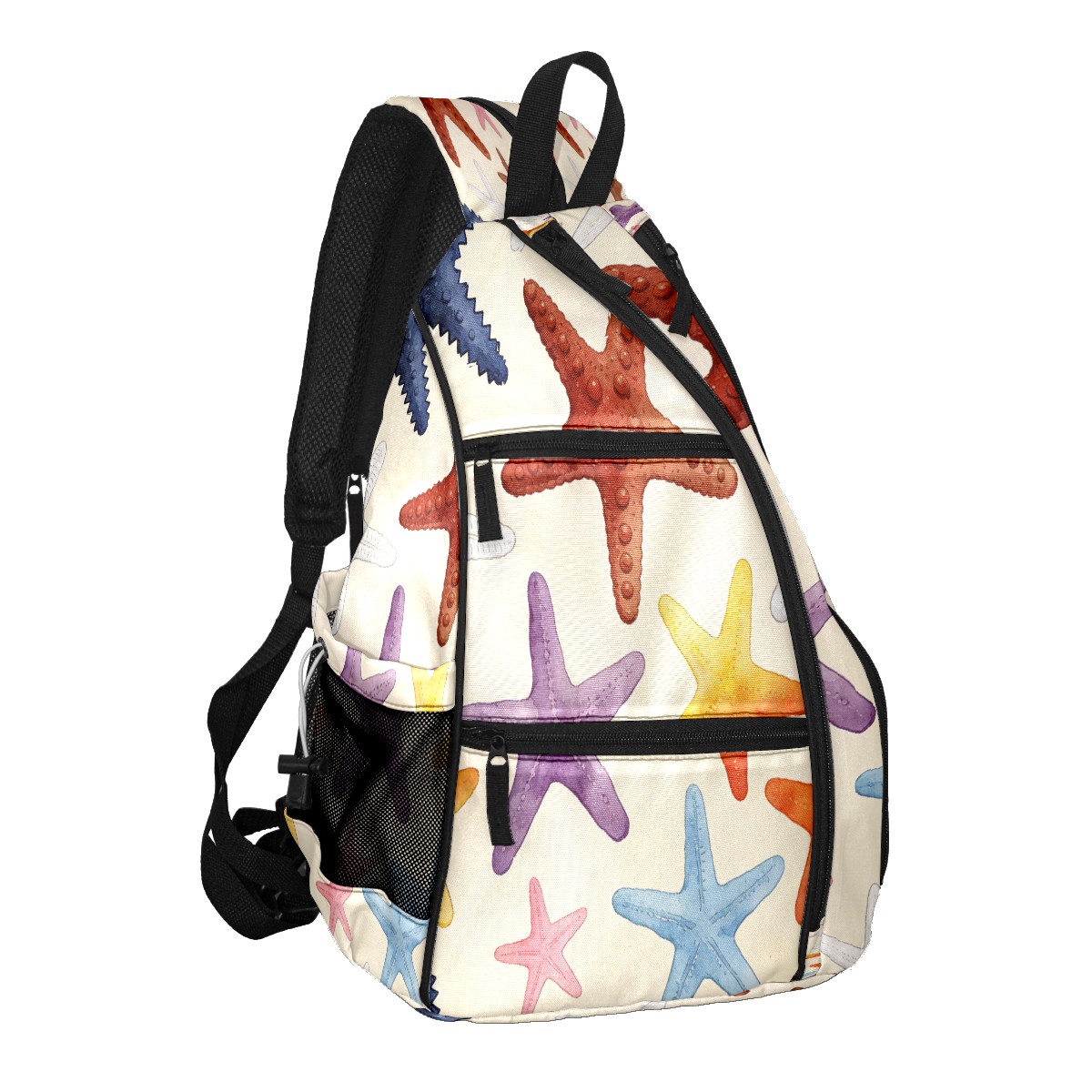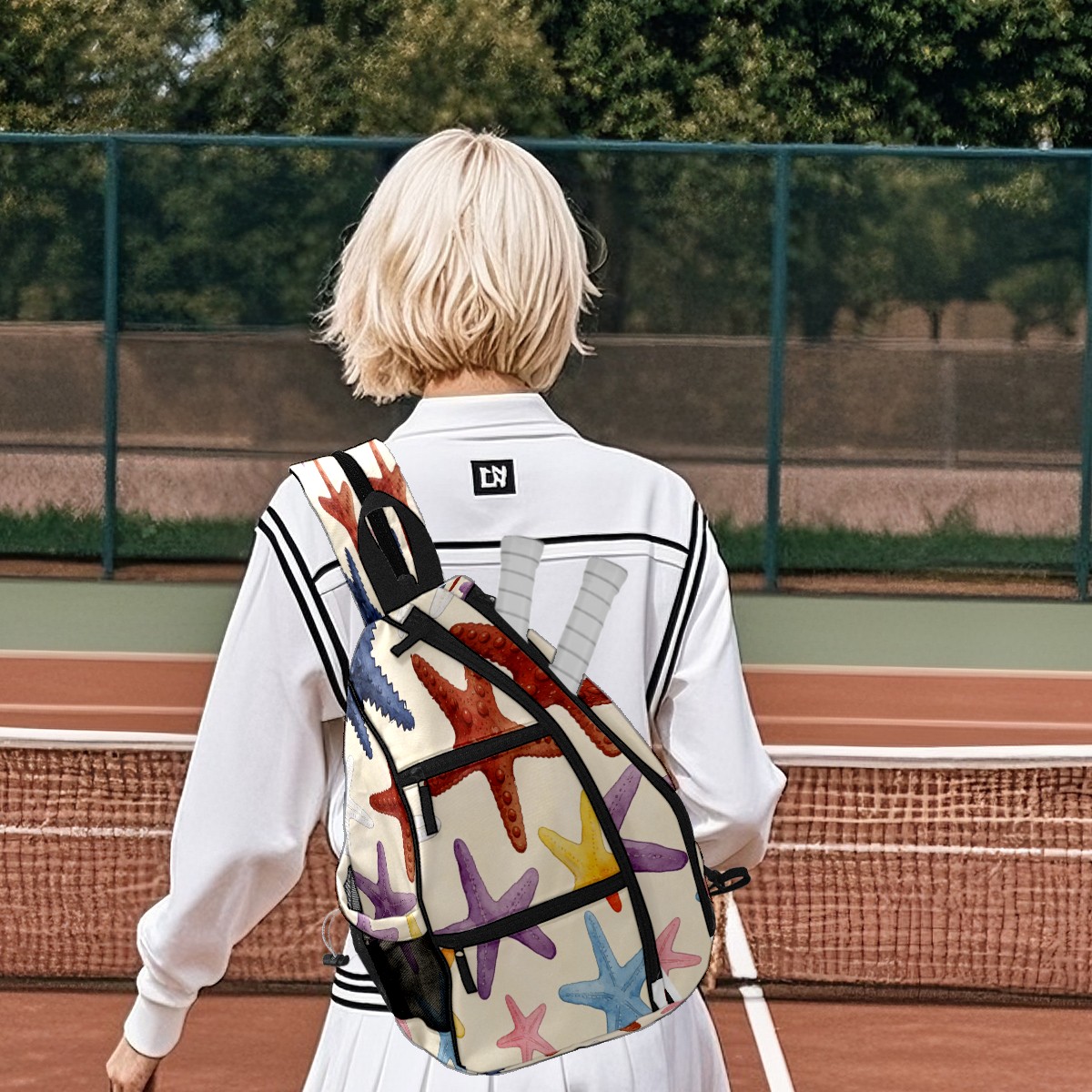 Pickleball Bag - Colorful Starfish Unisex Pickleball Backpack with Fence Hook, Adjustable Shoulder Straps, Security Pocket, Gift for Pickle Ball Enthusiasts