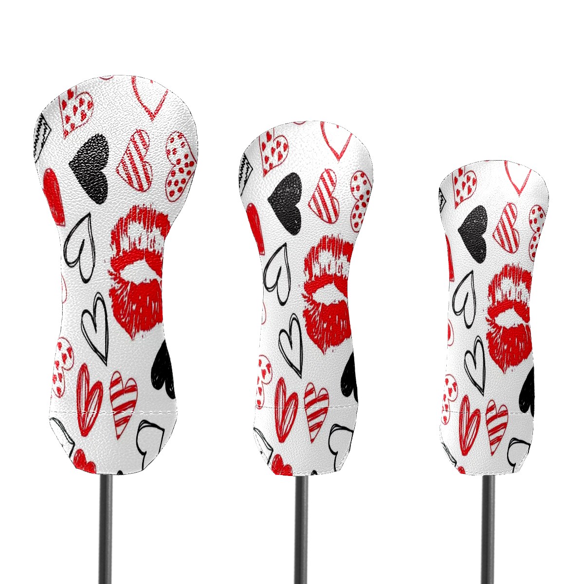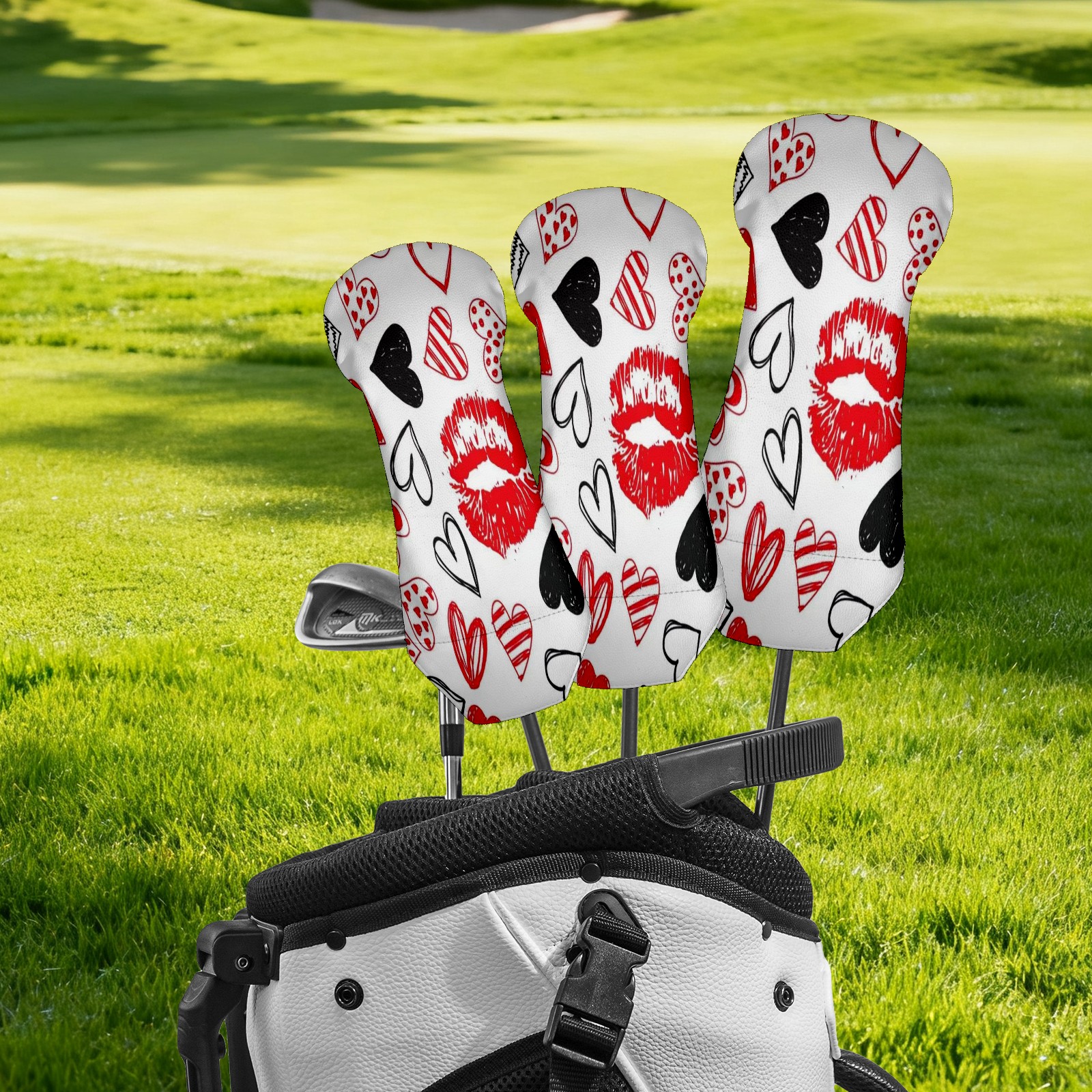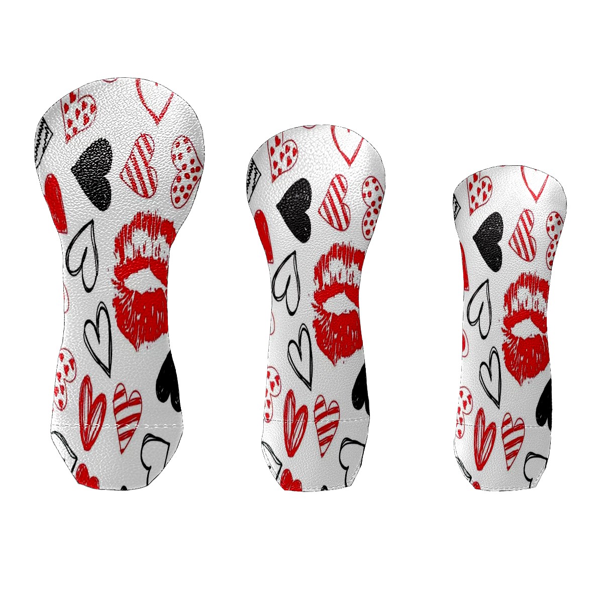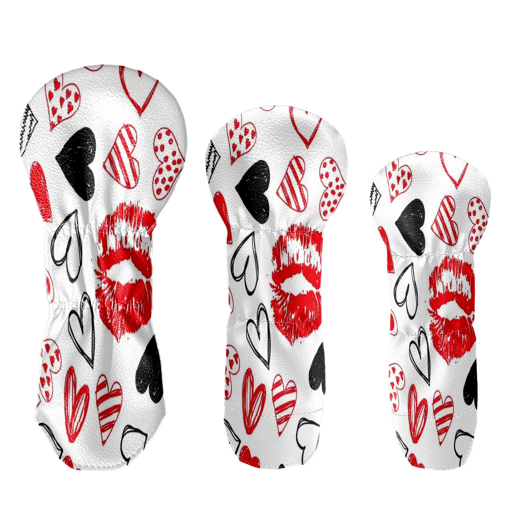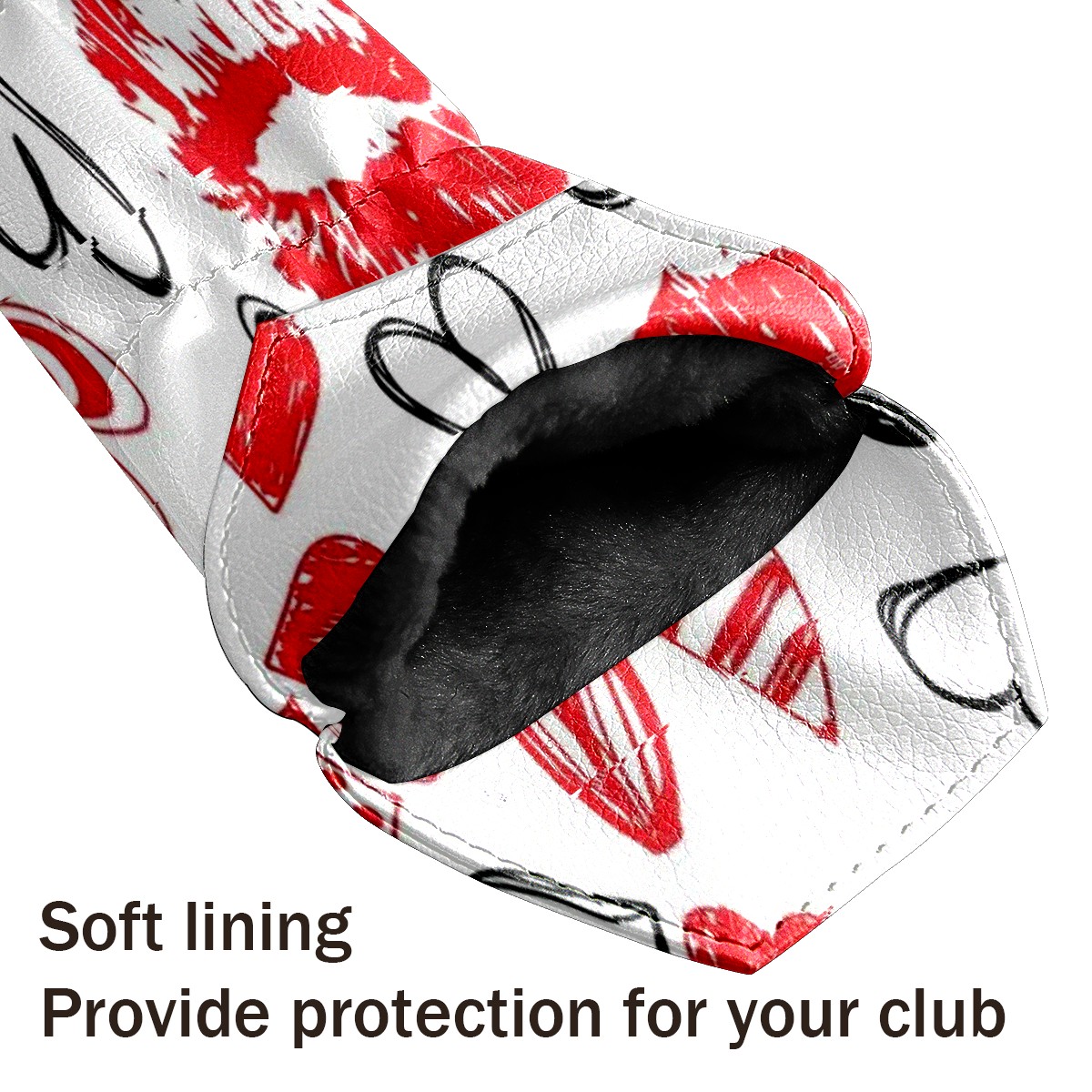 Golf Club Head Cover Waterproof Leather for Driver & Fairway Wood, Driver Headcovers, Golf Accessories for Men Women, Anti-Scratch, Golf Gift for Golfers, 1/3/5 Wood Cover Colorful Heart