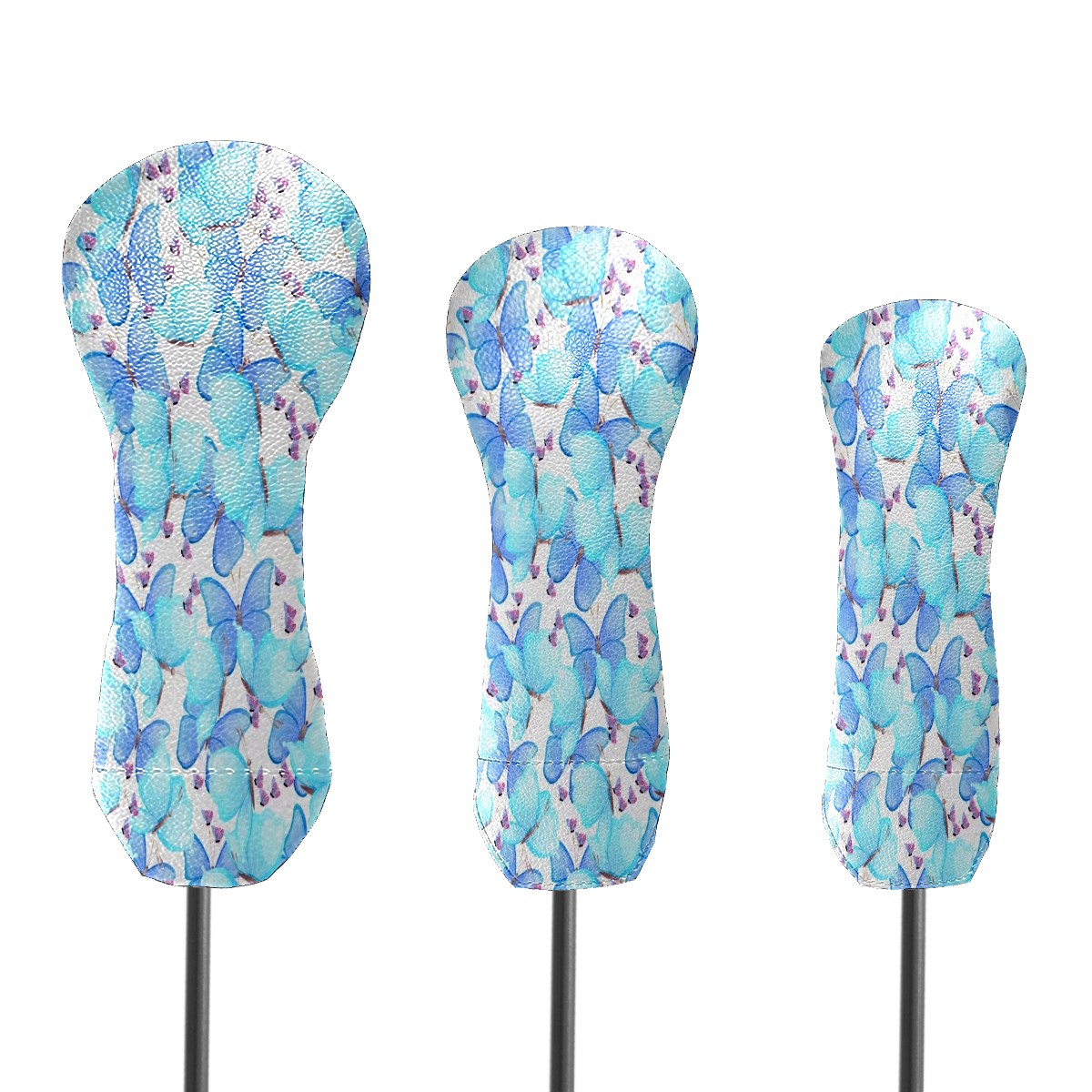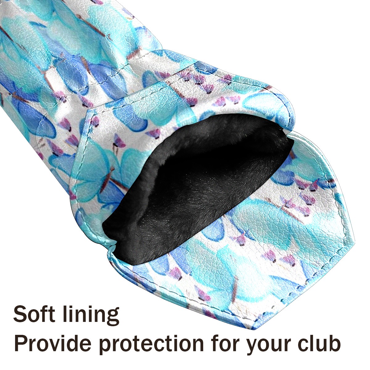 Golf Club Head Cover Waterproof Leather for Driver & Fairway Wood, Driver Headcovers, Golf Accessories for Men Women, Anti-Scratch, Golf Gift for Golfers, 1/3/5 Wood Cover Butterfly