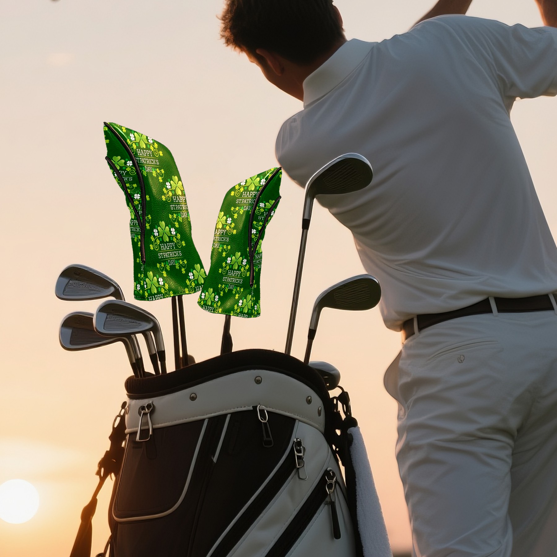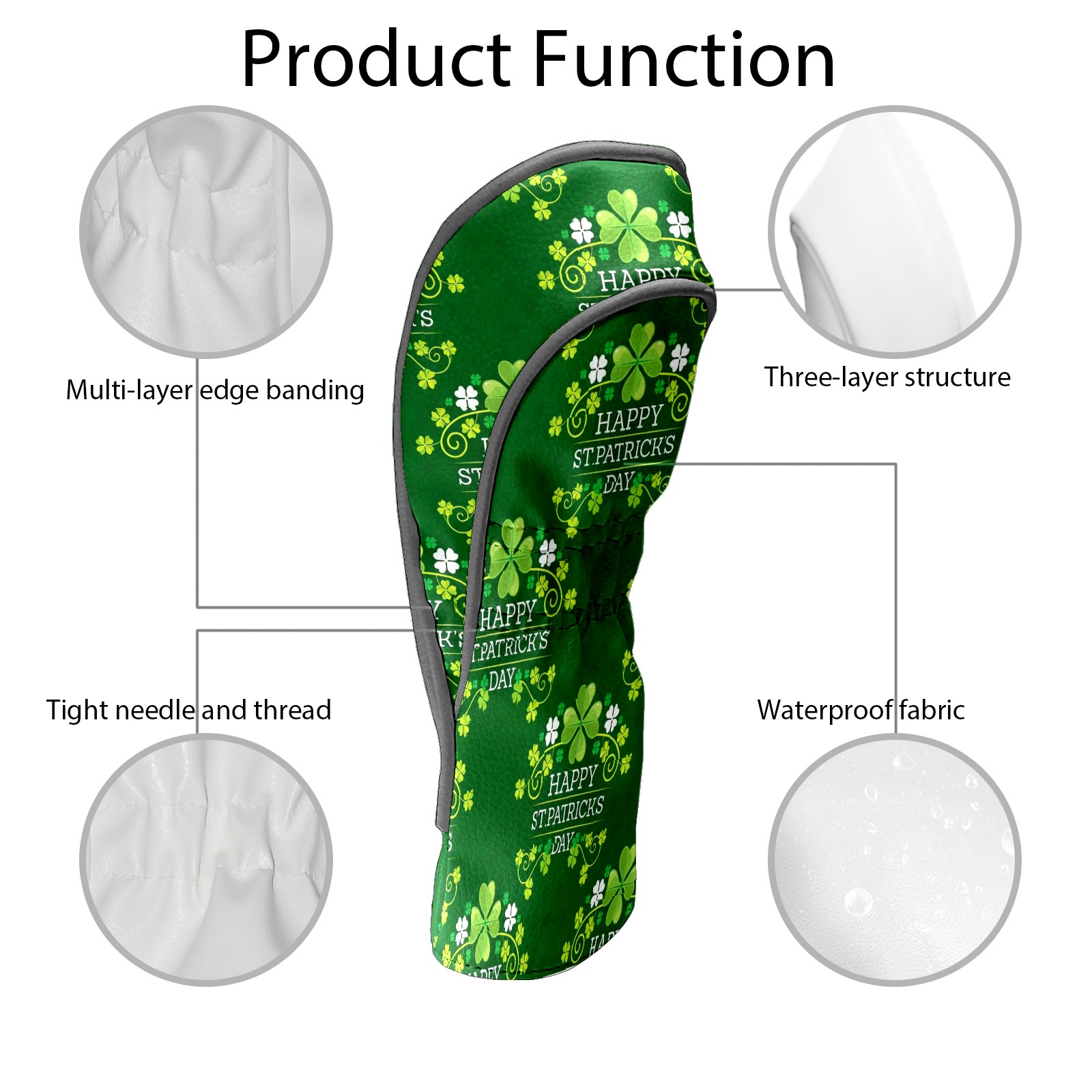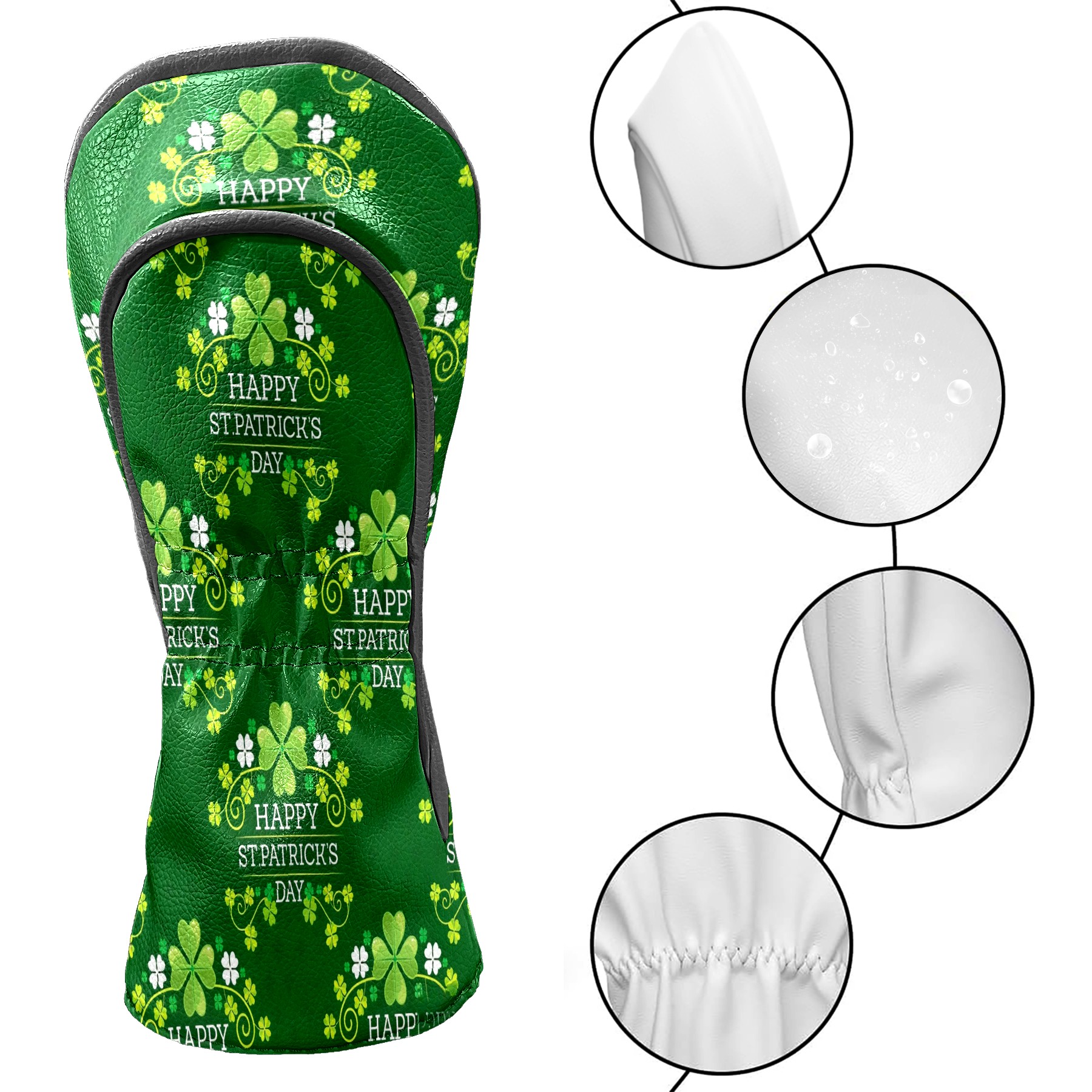 Golf Club Head Cover Waterproof Leather for Driver & Fairway Wood, Driver Headcovers, Golf Accessories for Men Women, Anti-Scratch, Golf Gift for Golfers, 1/3/5 Wood Cover Trifolium 3