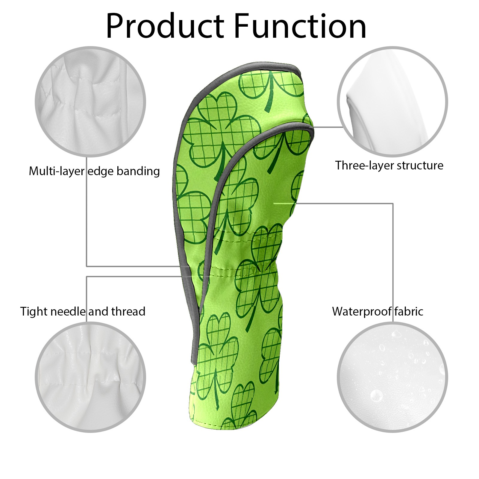 Golf Club Head Cover Waterproof Leather for Driver & Fairway Wood, Driver Headcovers, Golf Accessories for Men Women, Anti-Scratch, Golf Gift for Golfers, 1/3/5 Wood Cover Trifolium 5