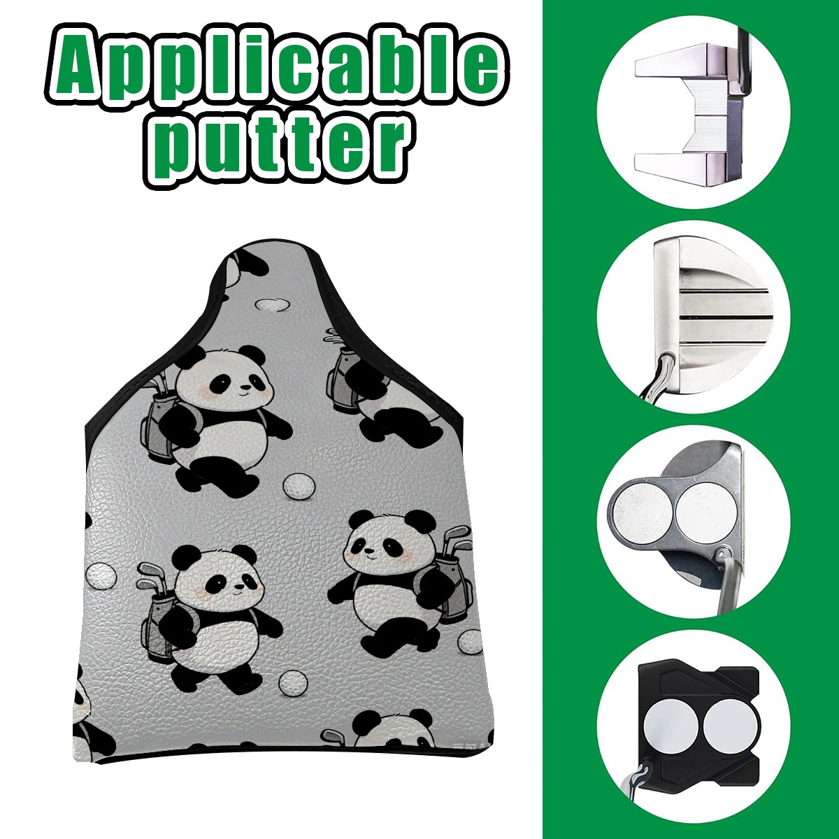 Mallet Putter Cover,Golf Club Head Cover, PU Leather Iron Head Covers Set Gift for Travel Cases Protector Fit Most, Easily Slips on and Secures Panda pattern