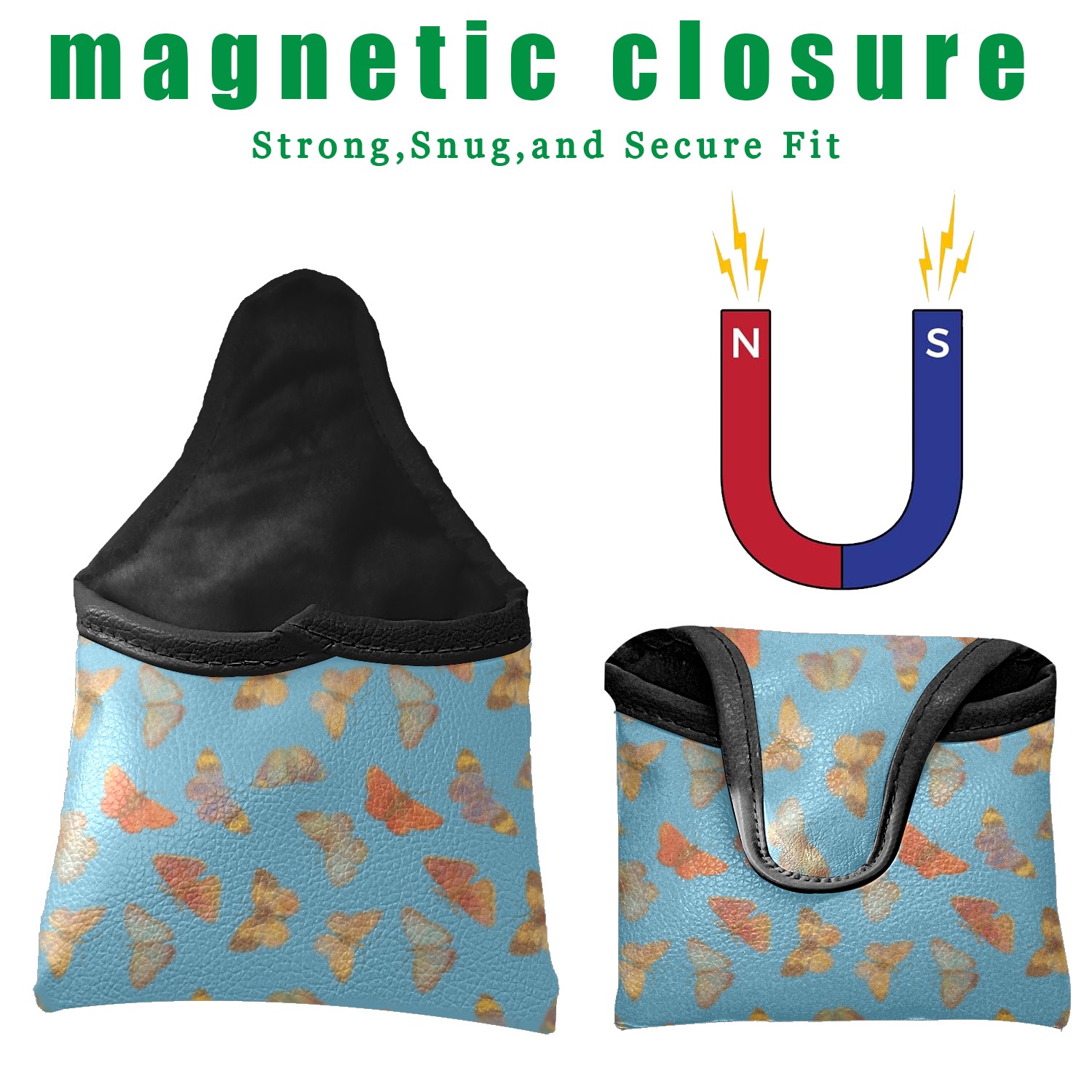 Mallet Putter Cover,Golf Club Head Cover, PU Leather Iron Head Covers Set Gift for Travel Cases Protector Fit Most, Easily Slips on and Secures Butterfly