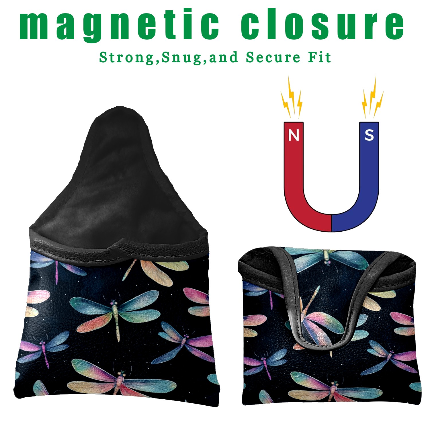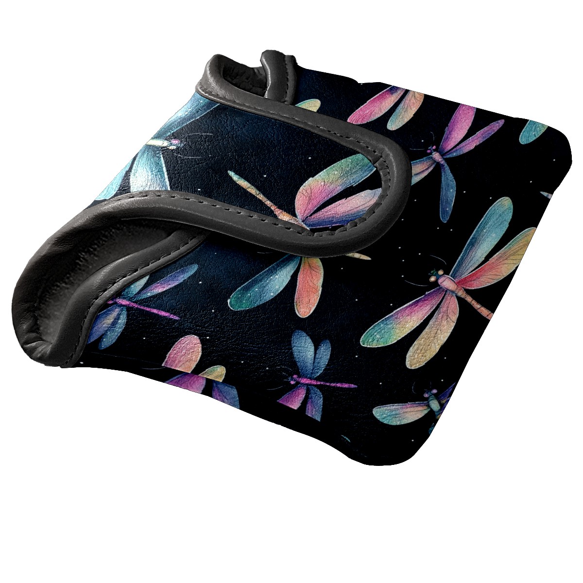 Mallet Putter Cover,Golf Club Head Cover, PU Leather Iron Head Covers Set Gift for Travel Cases Protector Fit Most, Easily Slips on and Secures Iridescent Dragonflies