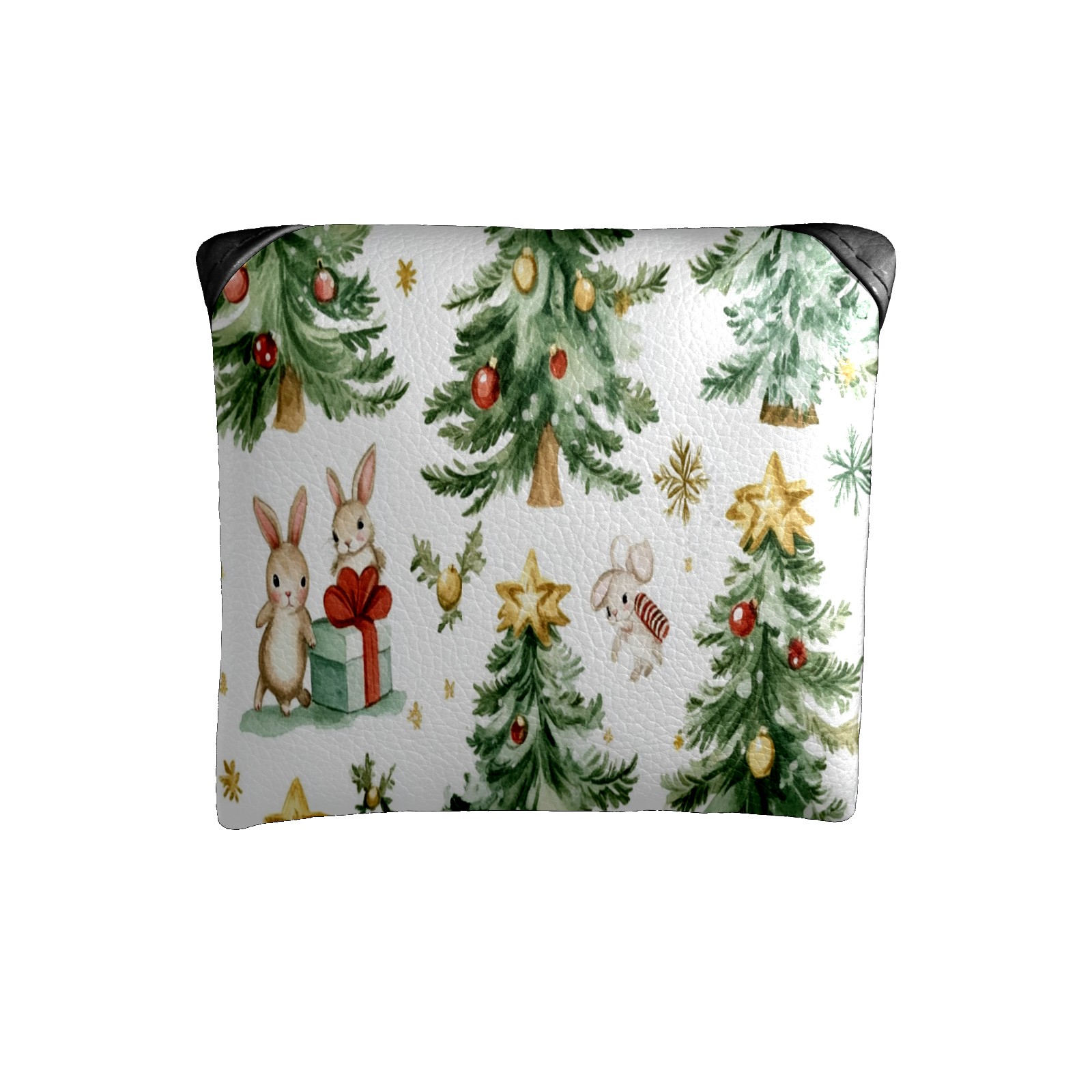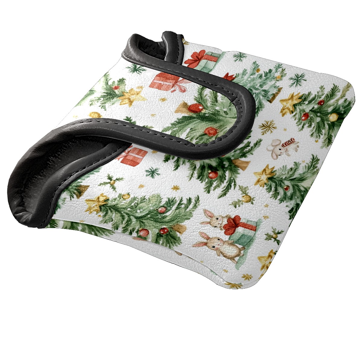 Mallet Putter Cover,Golf Club Head Cover, PU Leather Iron Head Covers Set Gift for Travel Cases Protector Fit Most, Easily Slips on and Secures Watercolor Christmas Trees