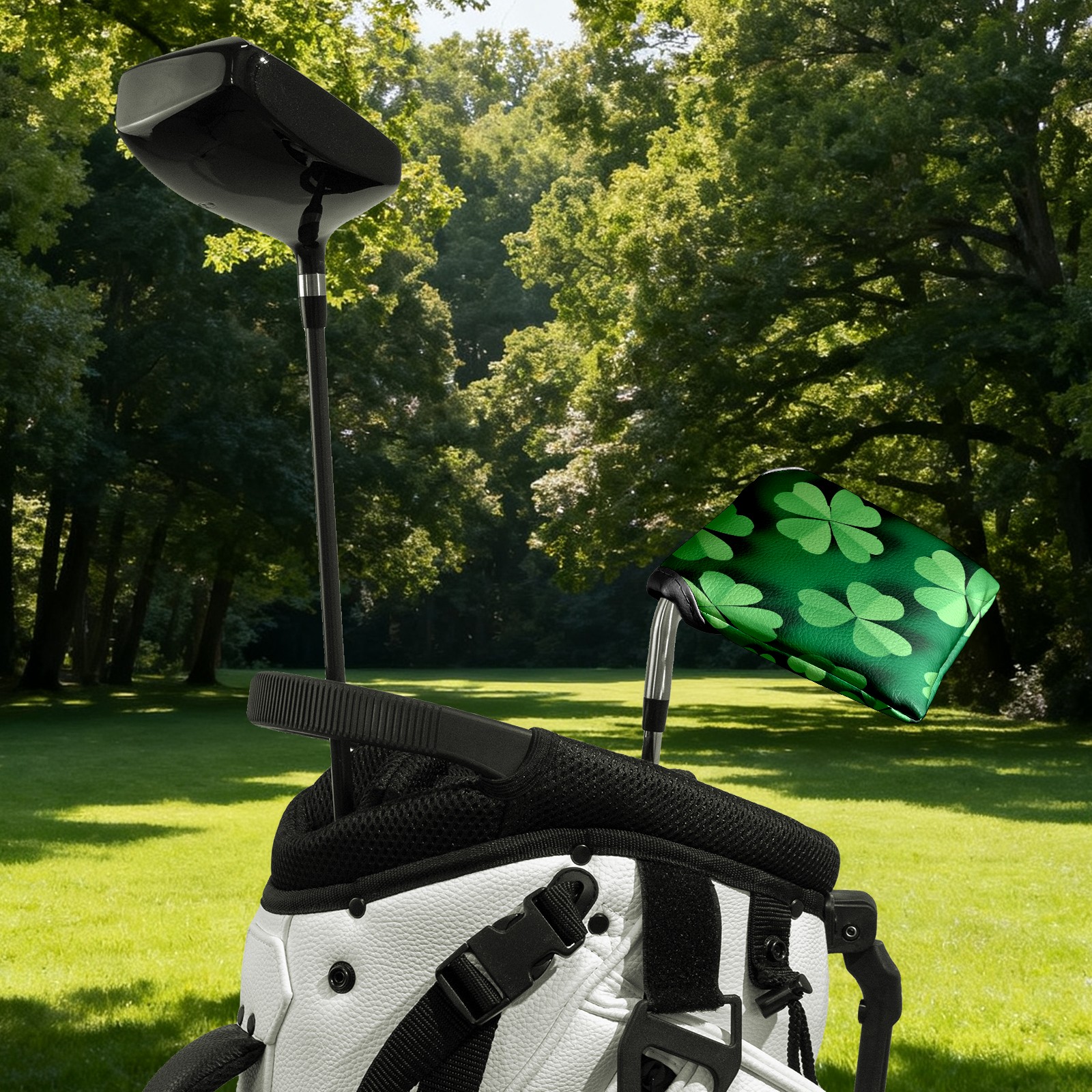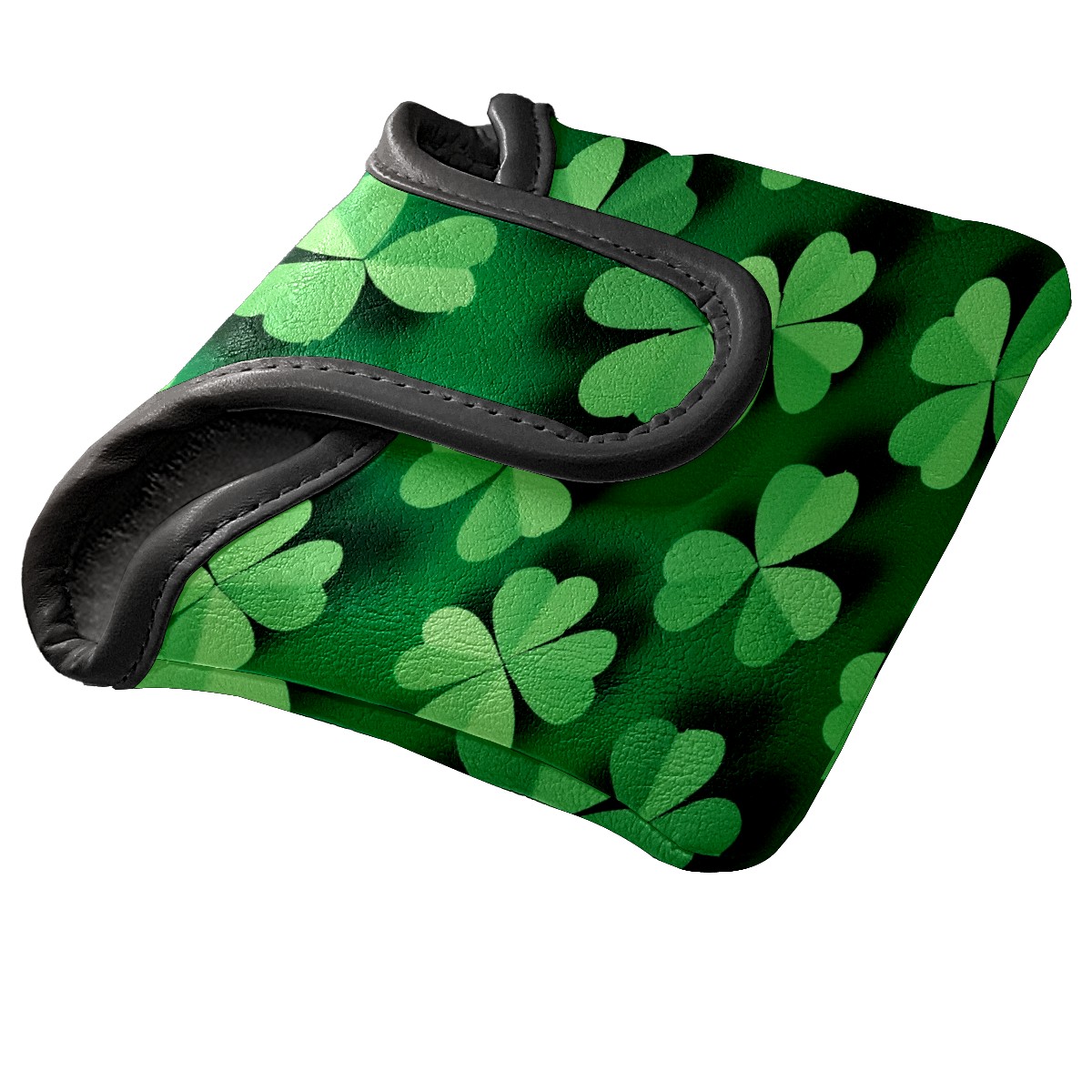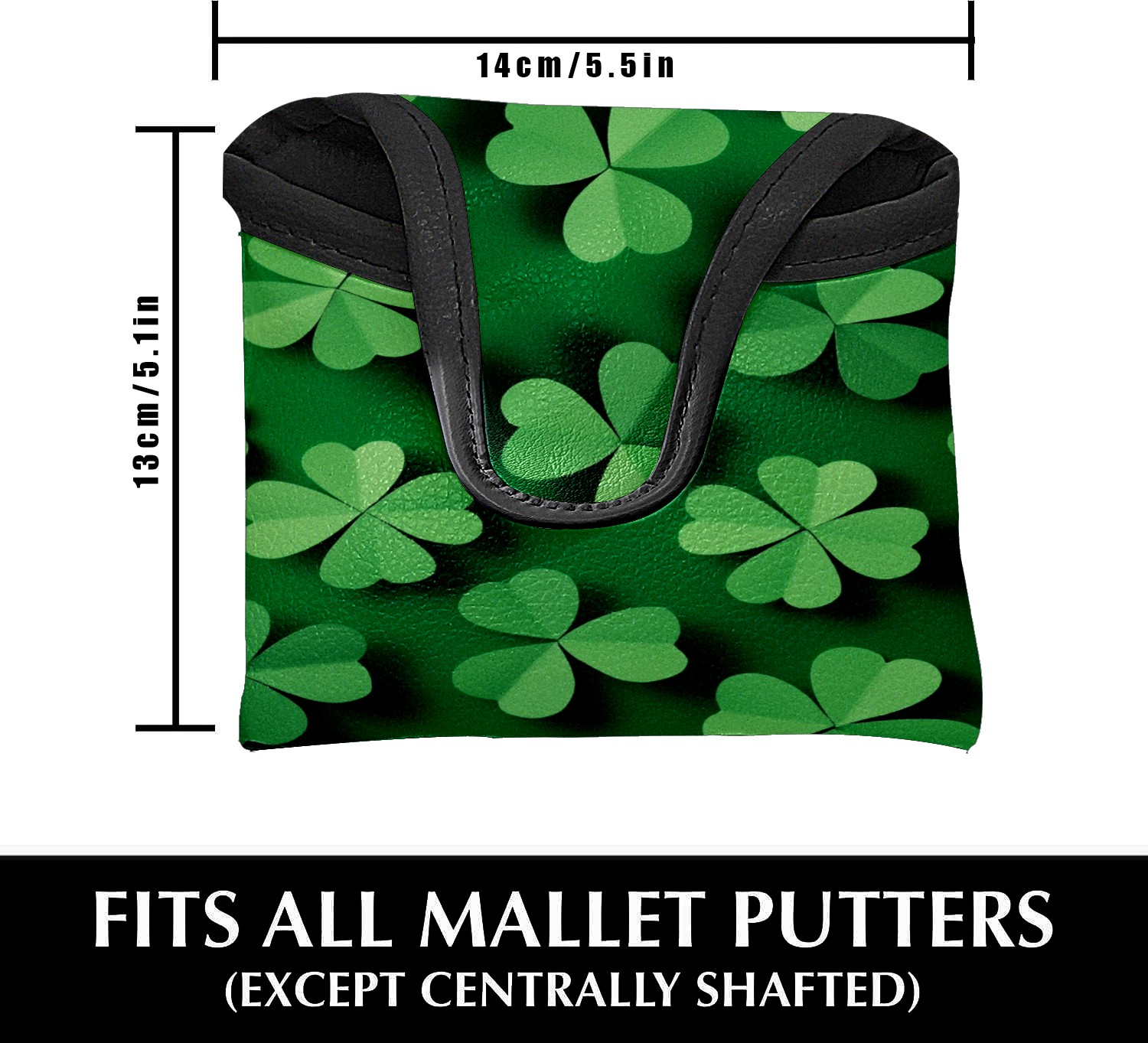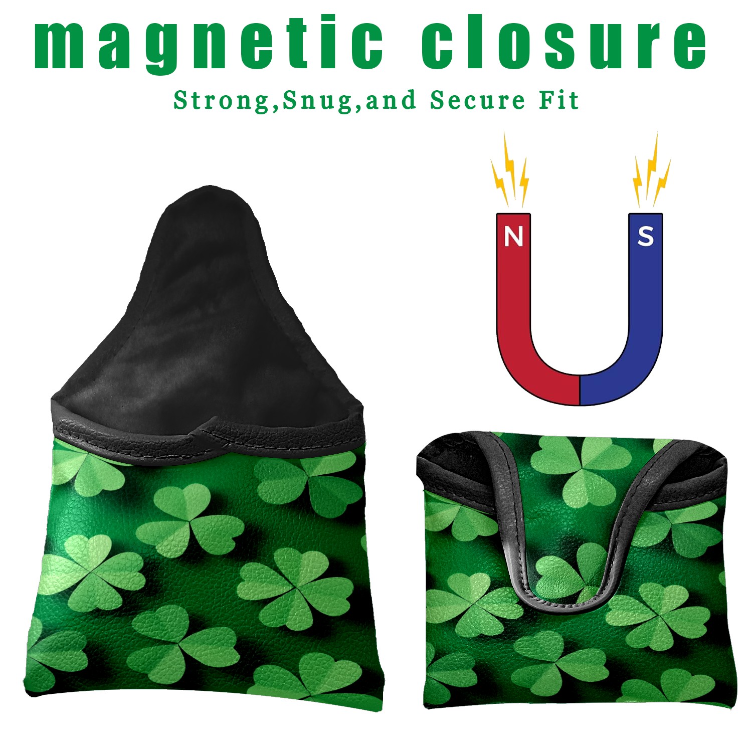 Mallet Putter Cover,Golf Club Head Cover, PU Leather Iron Head Covers Set Gift for Travel Cases Protector Fit Most, Easily Slips on and Secures Green Shamrock