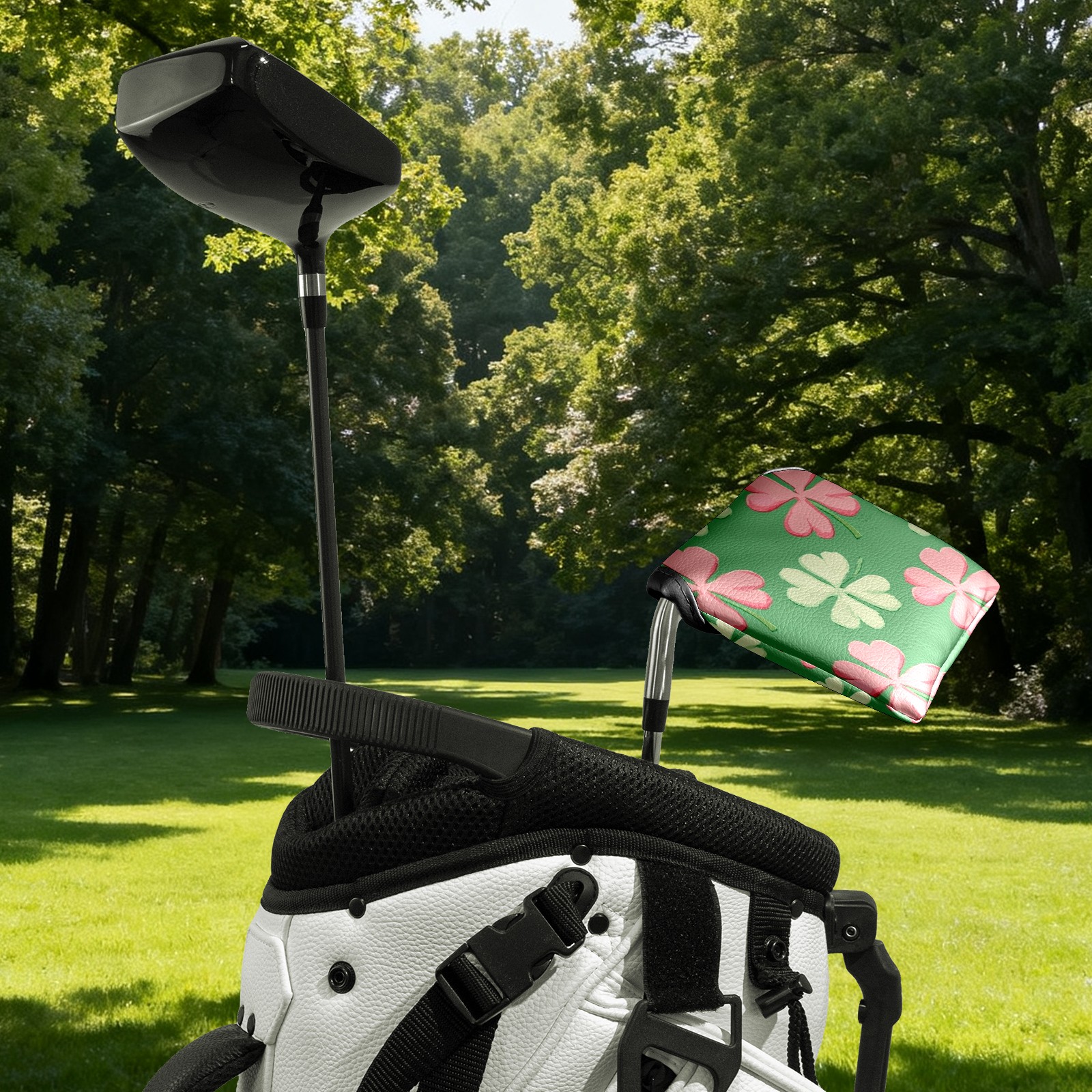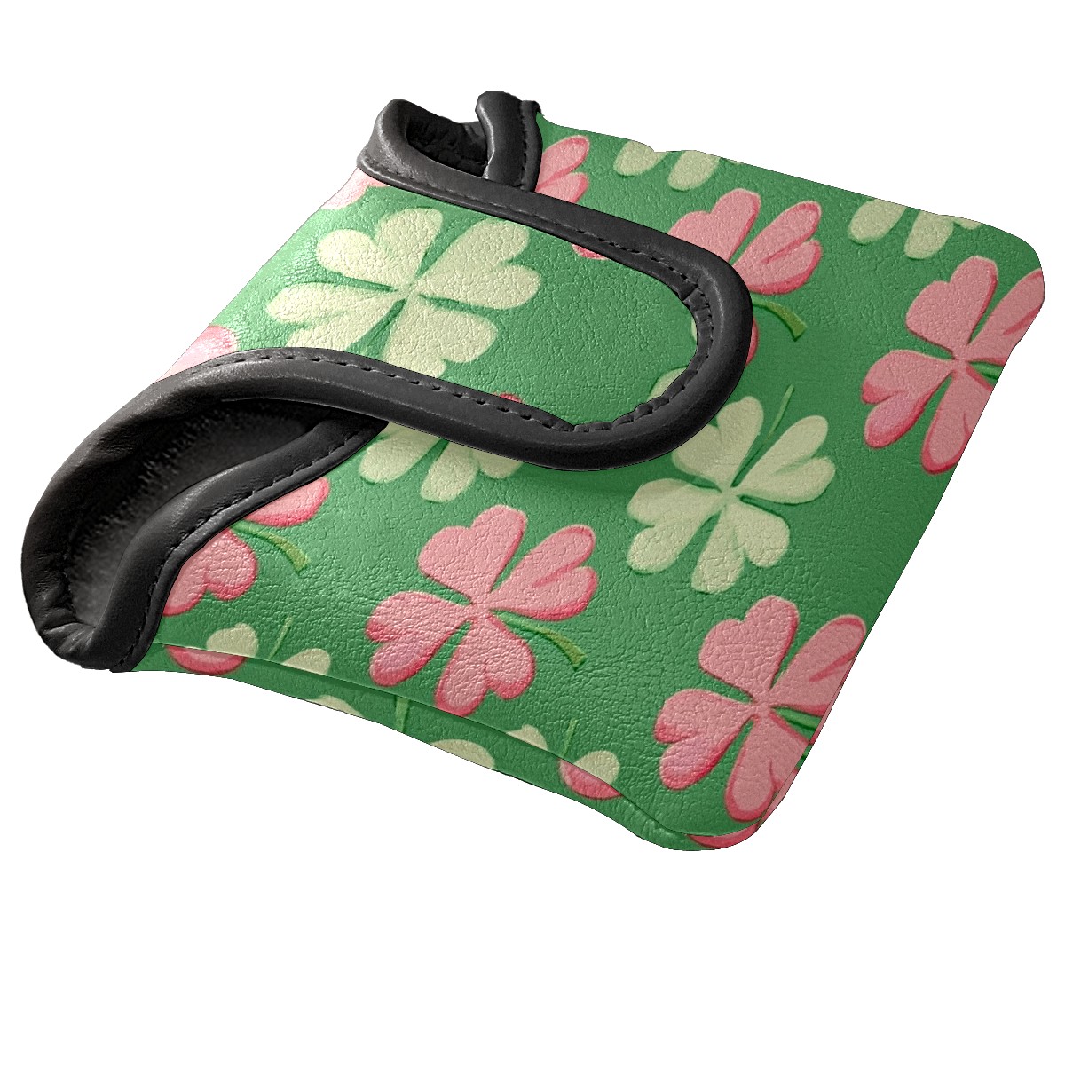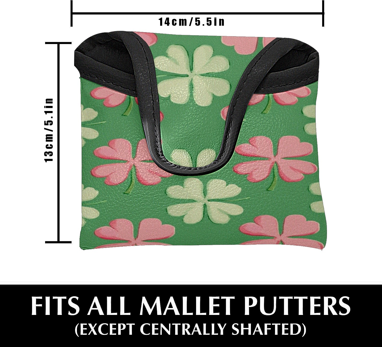 Mallet Putter Cover,Golf Club Head Cover, PU Leather Iron Head Covers Set Gift for Travel Cases Protector Fit Most, Easily Slips on and Secures Shamrocks With Pink Stripes