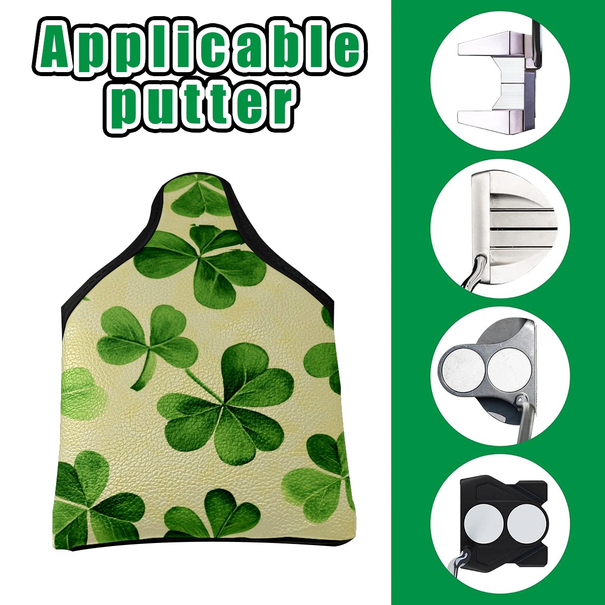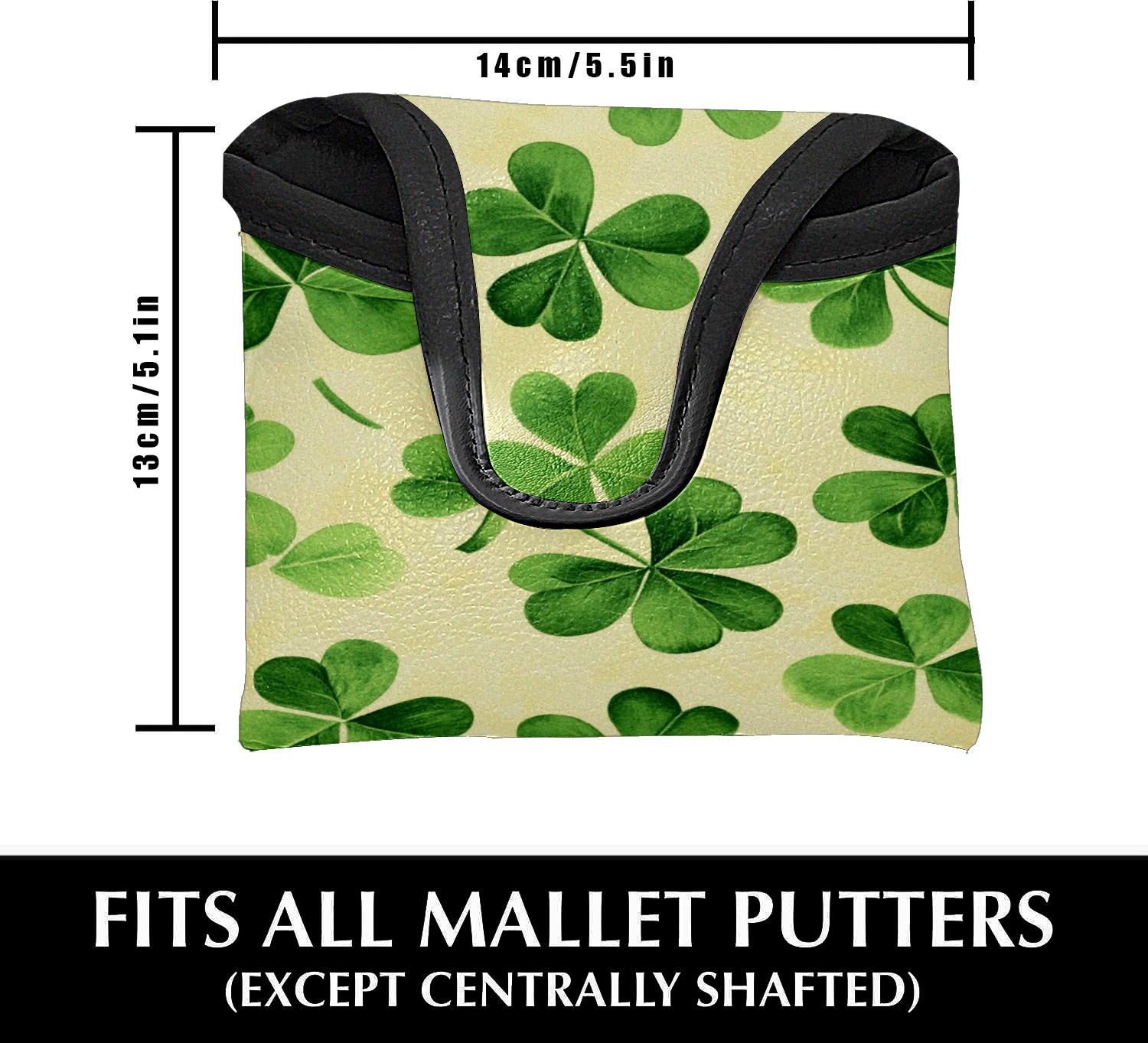 Mallet Putter Cover,Golf Club Head Cover, PU Leather Iron Head Covers Set Gift for Travel Cases Protector Fit Most, Easily Slips on and Secures Green Shamrocks