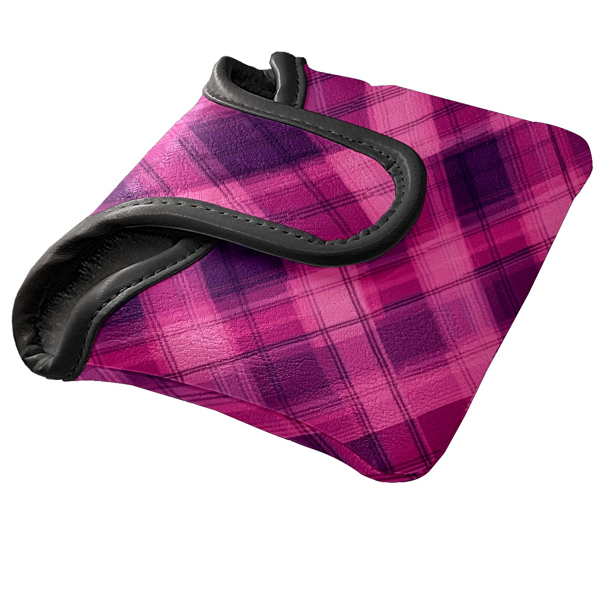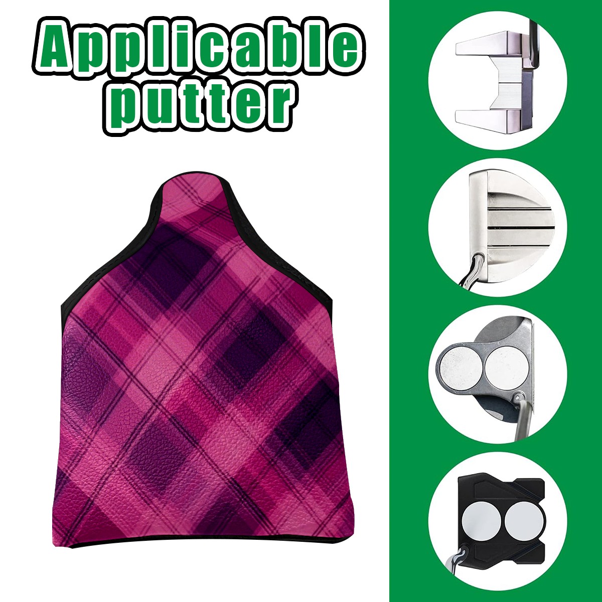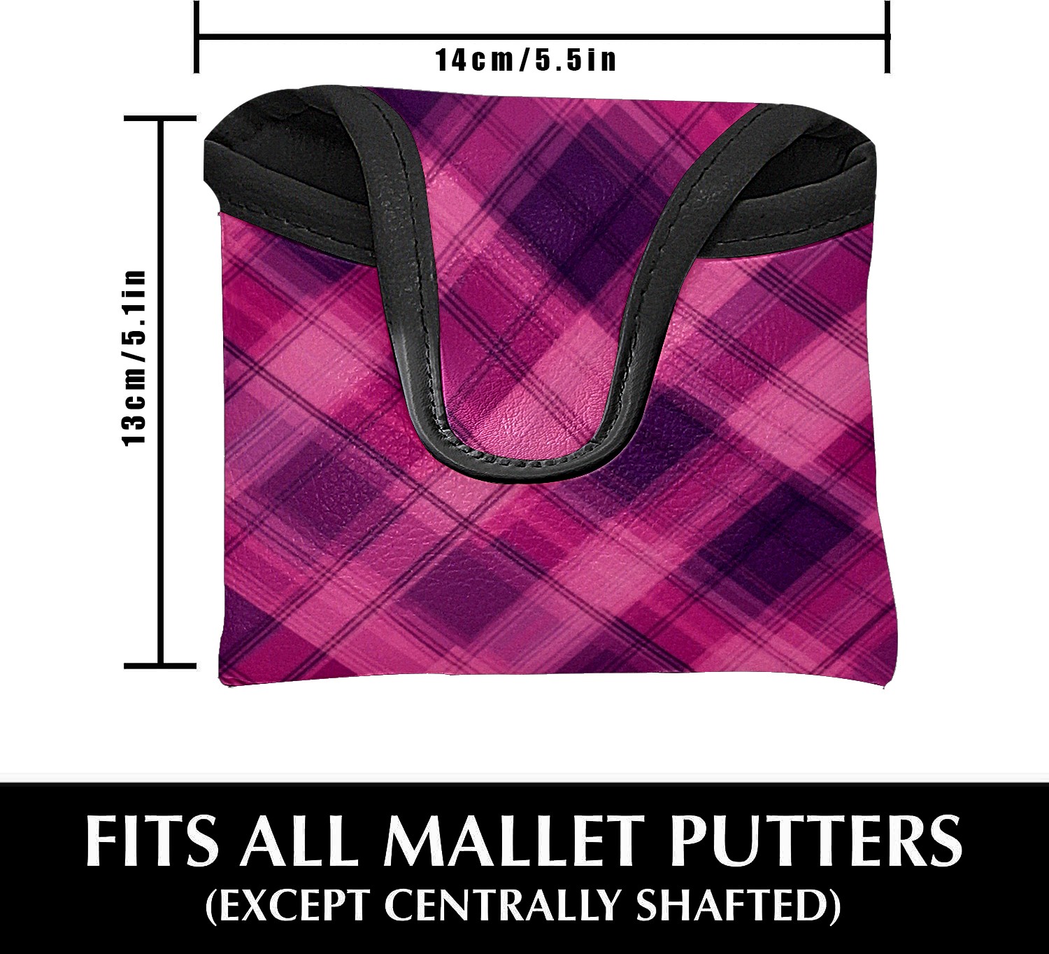 Mallet Putter Cover,Golf Club Head Cover, PU Leather Iron Head Covers Set Gift for Travel Cases Protector Fit Most, Easily Slips on and Secures Pink And Purple Checkered