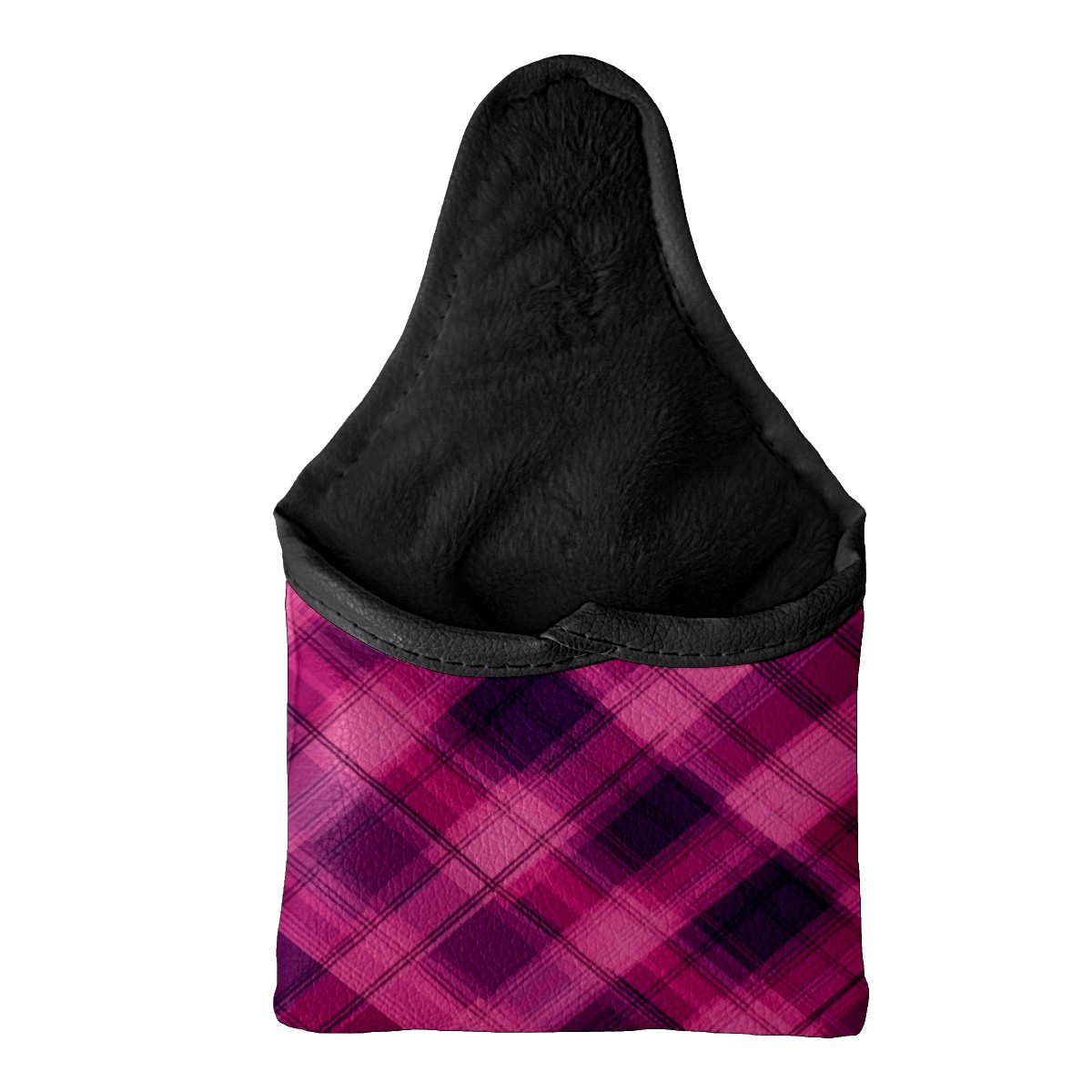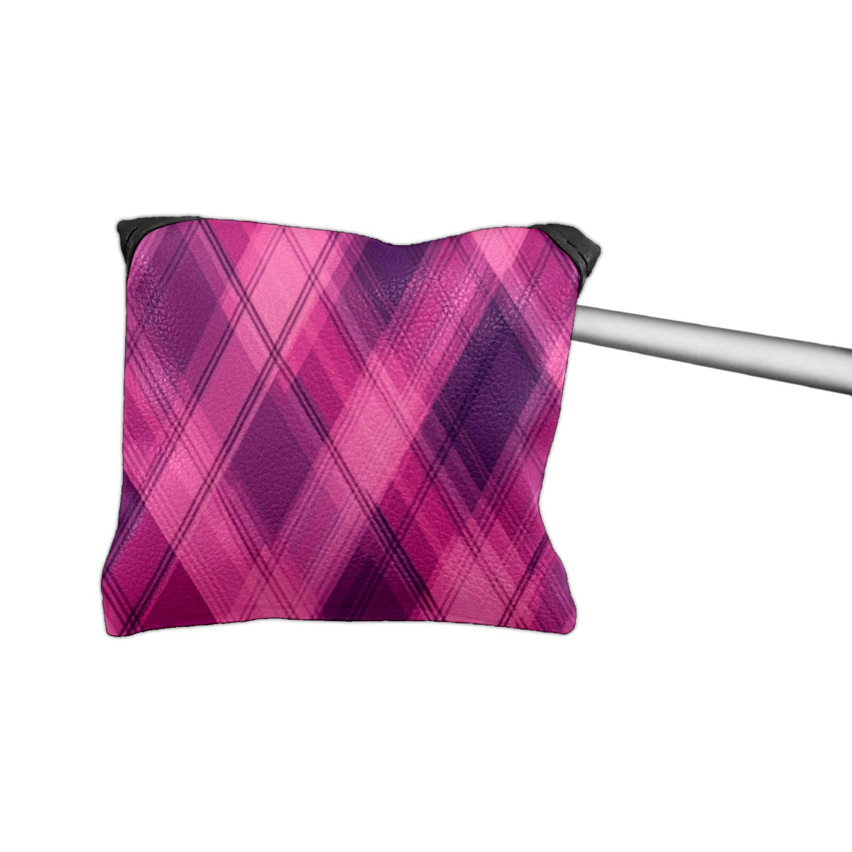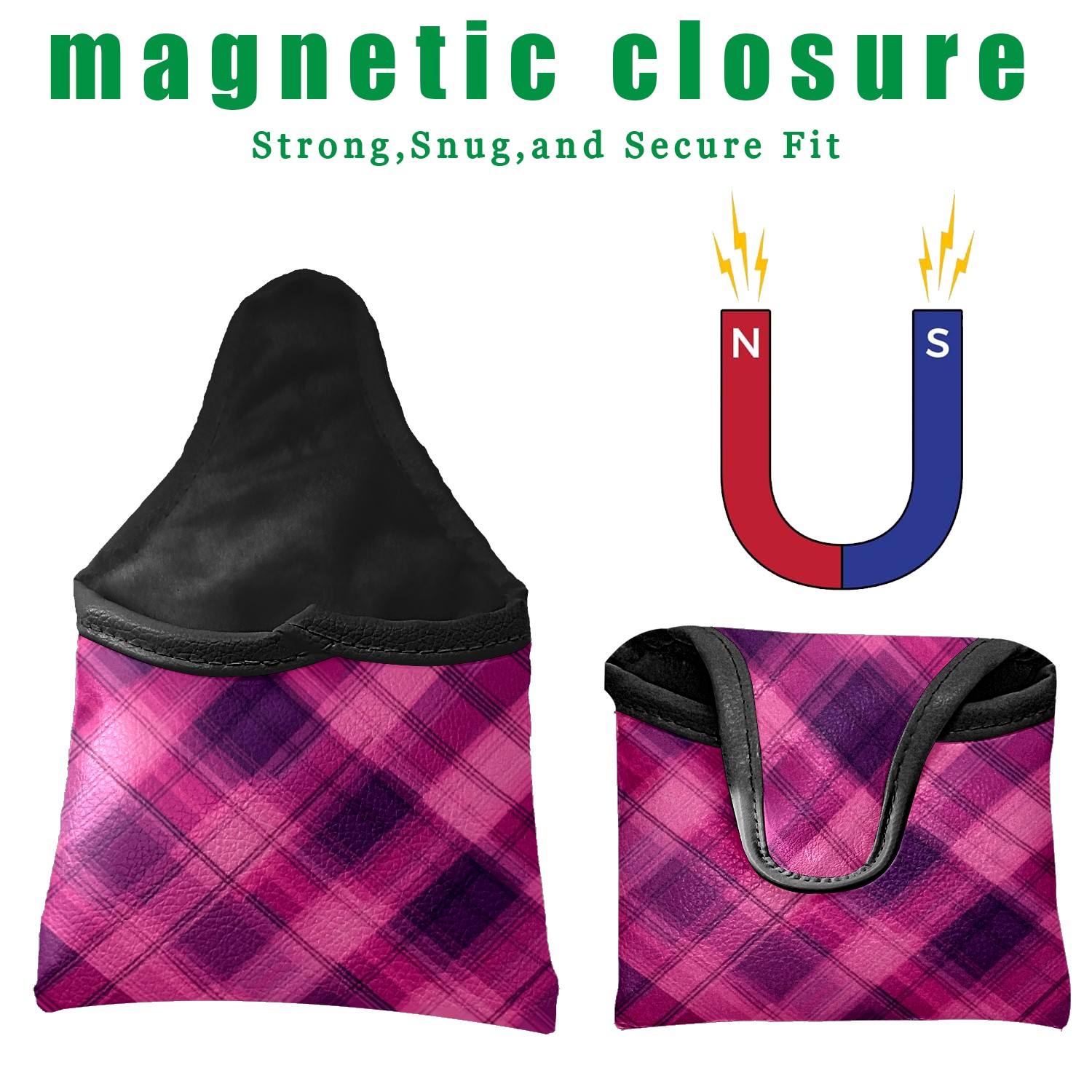 Mallet Putter Cover,Golf Club Head Cover, PU Leather Iron Head Covers Set Gift for Travel Cases Protector Fit Most, Easily Slips on and Secures Pink And Purple Checkered