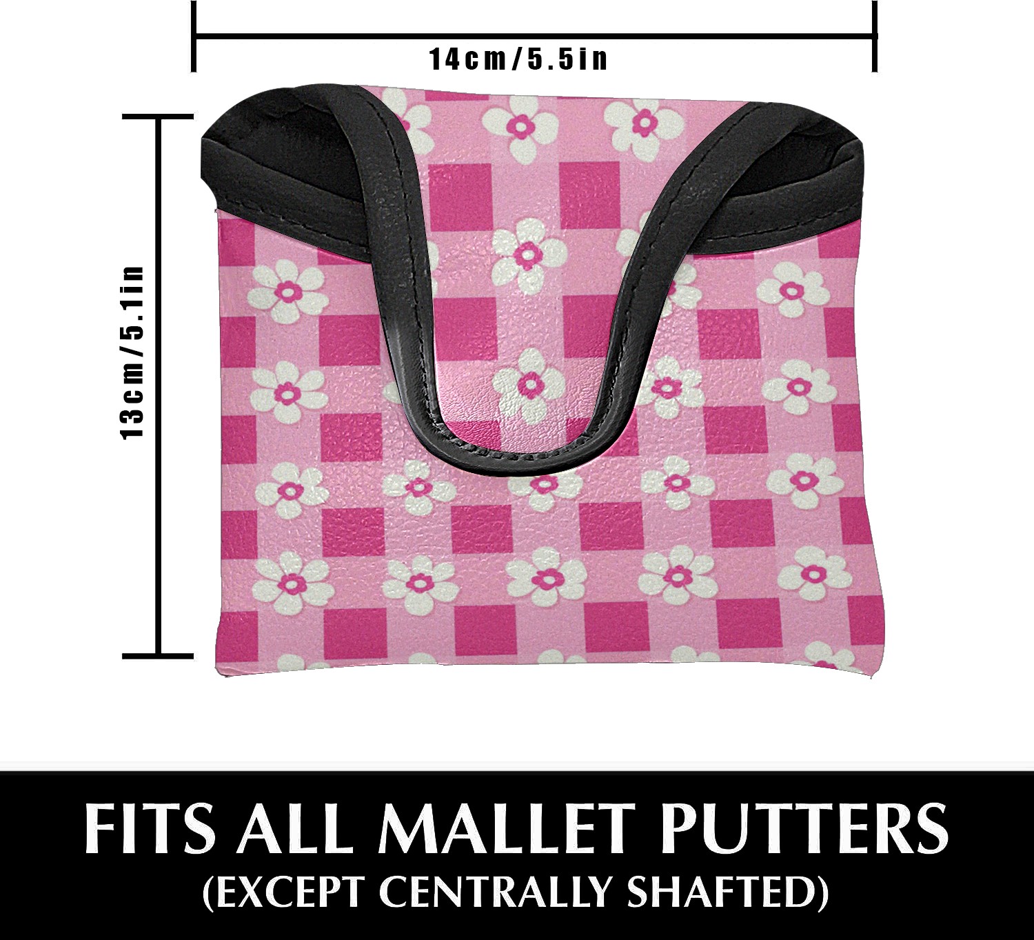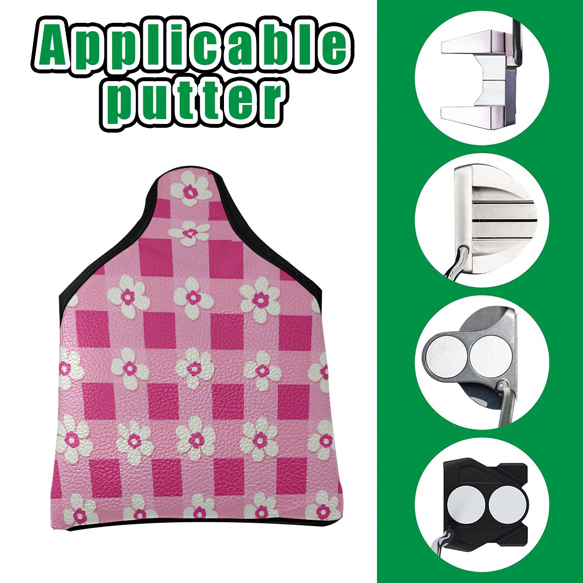 Mallet Putter Cover,Golf Club Head Cover, PU Leather Iron Head Covers Set Gift for Travel Cases Protector Fit Most, Easily Slips on and Secures Pink Gingham With Flowers