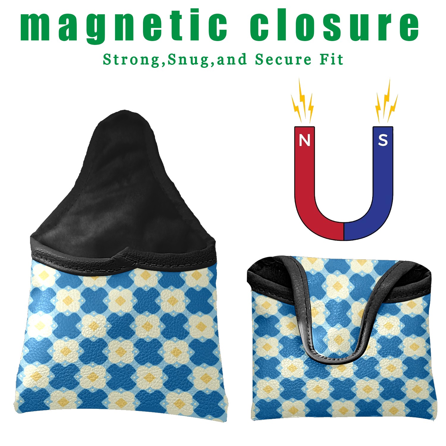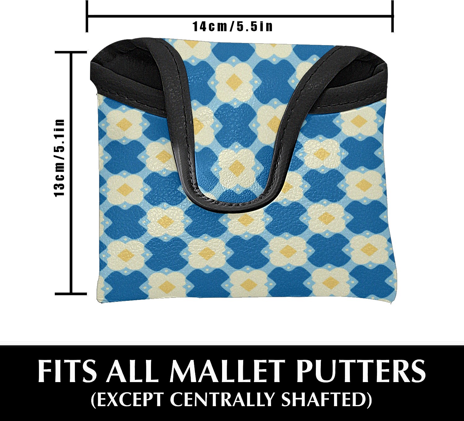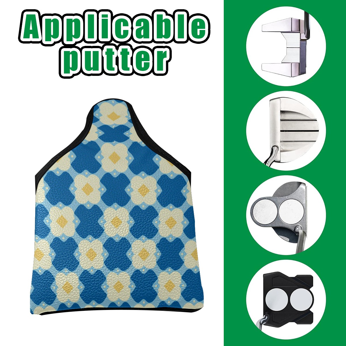 Mallet Putter Cover,Golf Club Head Cover, PU Leather Iron Head Covers Set Gift for Travel Cases Protector Fit Most, Easily Slips on and Secures Blue And White Checkered