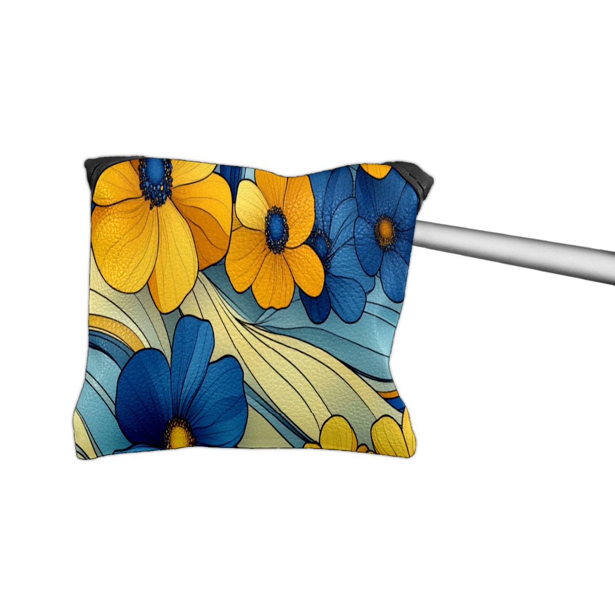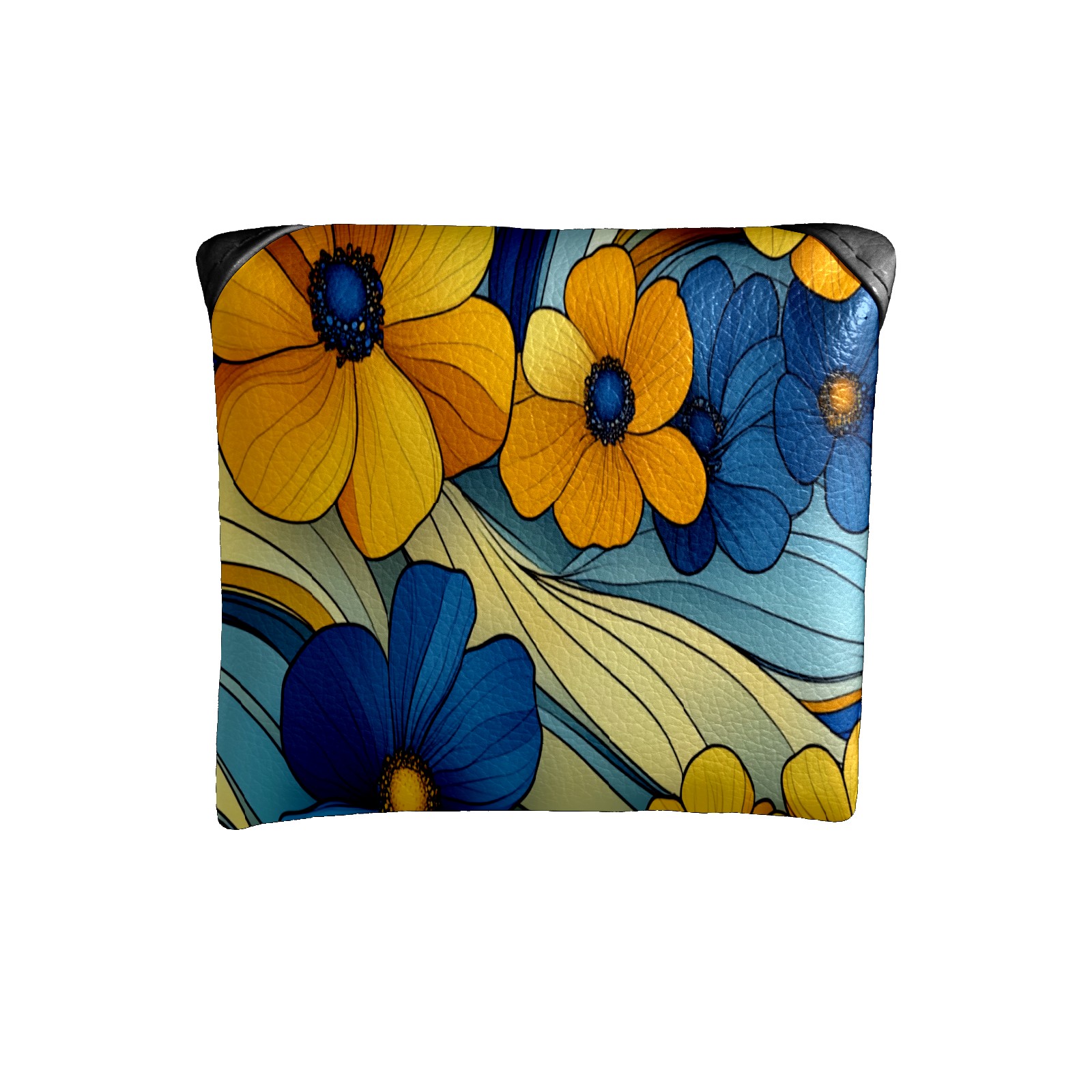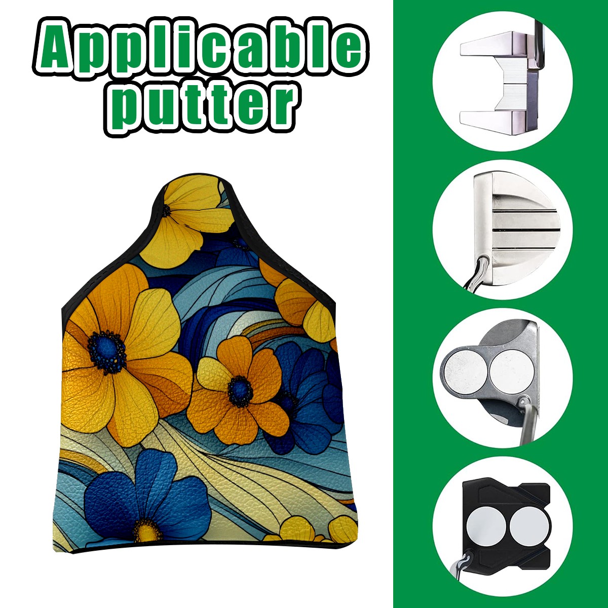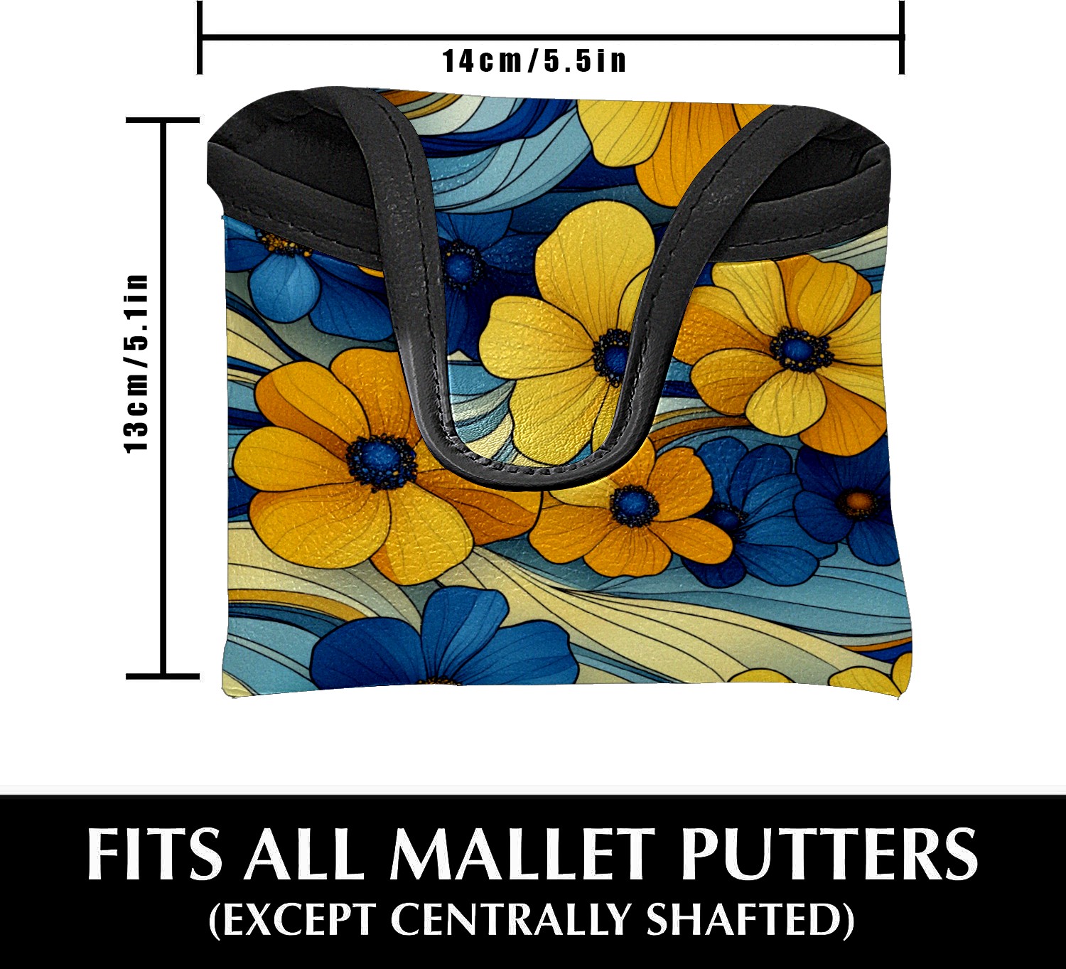 Mallet Putter Cover,Golf Club Head Cover, PU Leather Iron Head Covers Set Gift for Travel Cases Protector Fit Most, Easily Slips on and Secures Yellow Blue Flowers 2