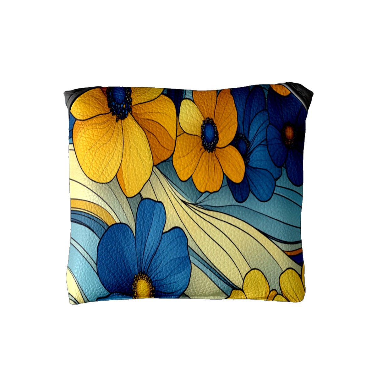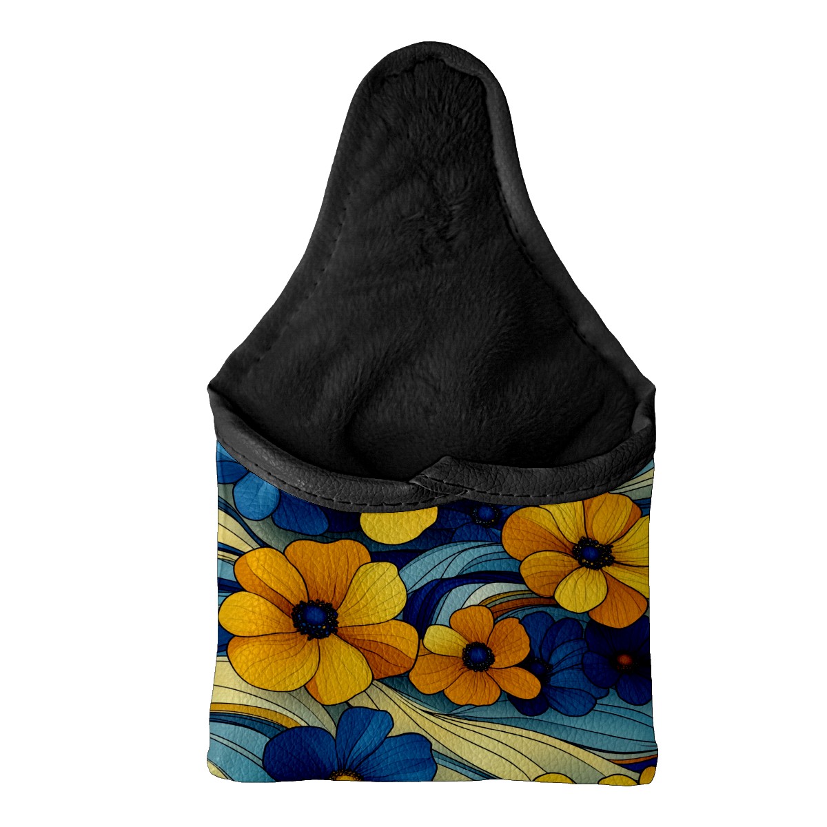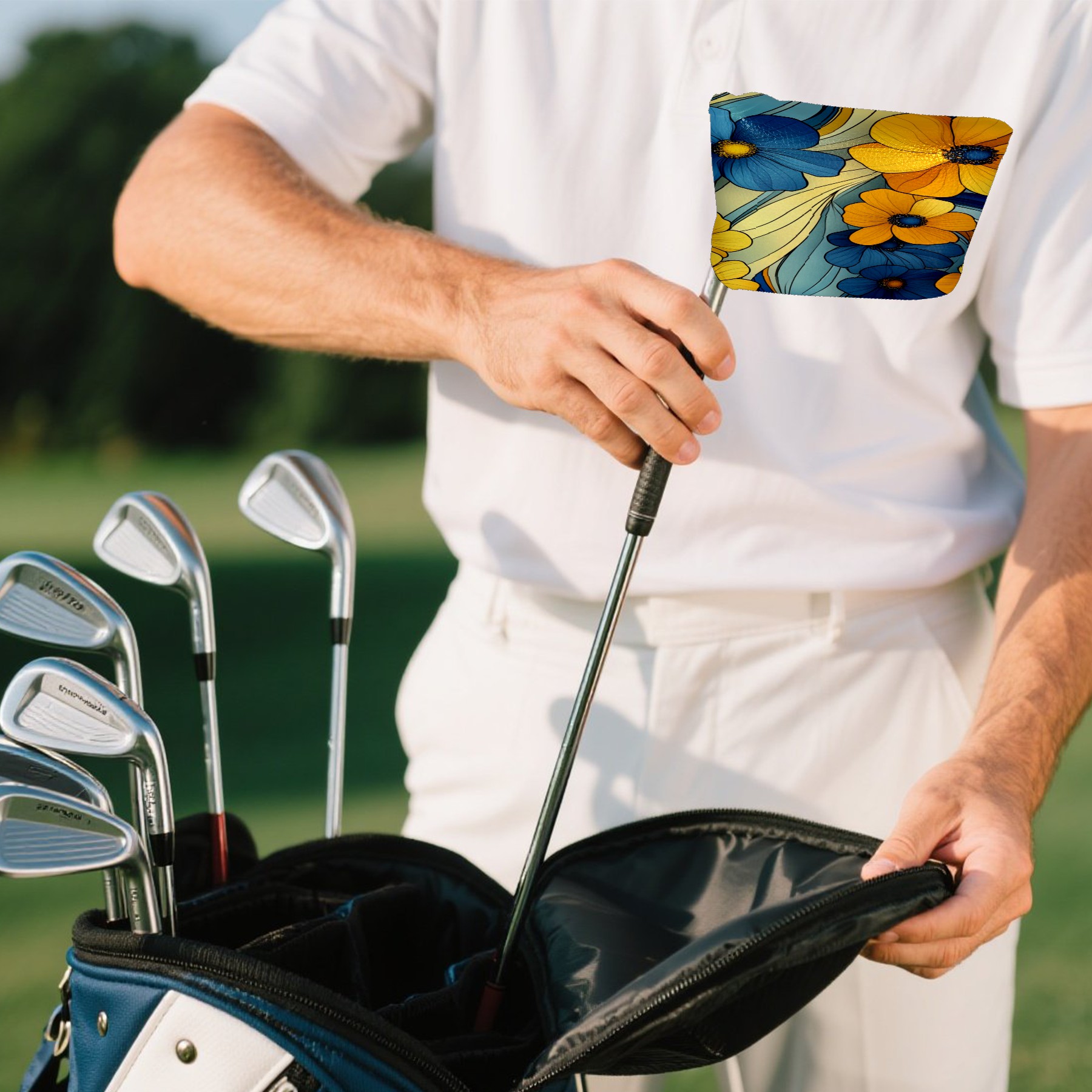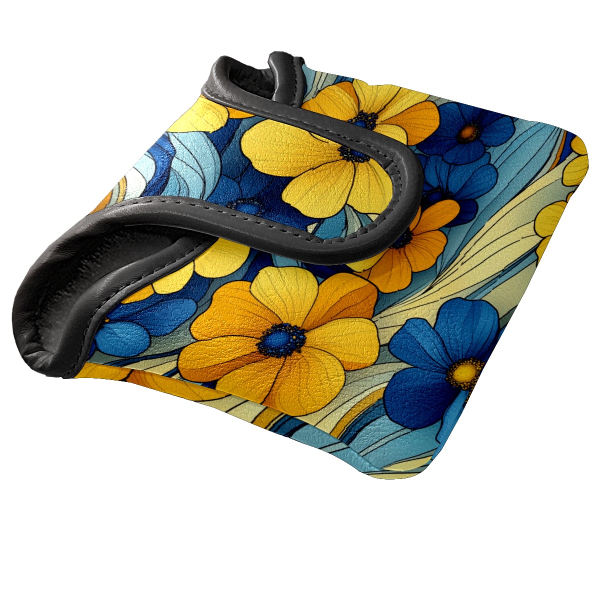 Mallet Putter Cover,Golf Club Head Cover, PU Leather Iron Head Covers Set Gift for Travel Cases Protector Fit Most, Easily Slips on and Secures Yellow Blue Flowers 2