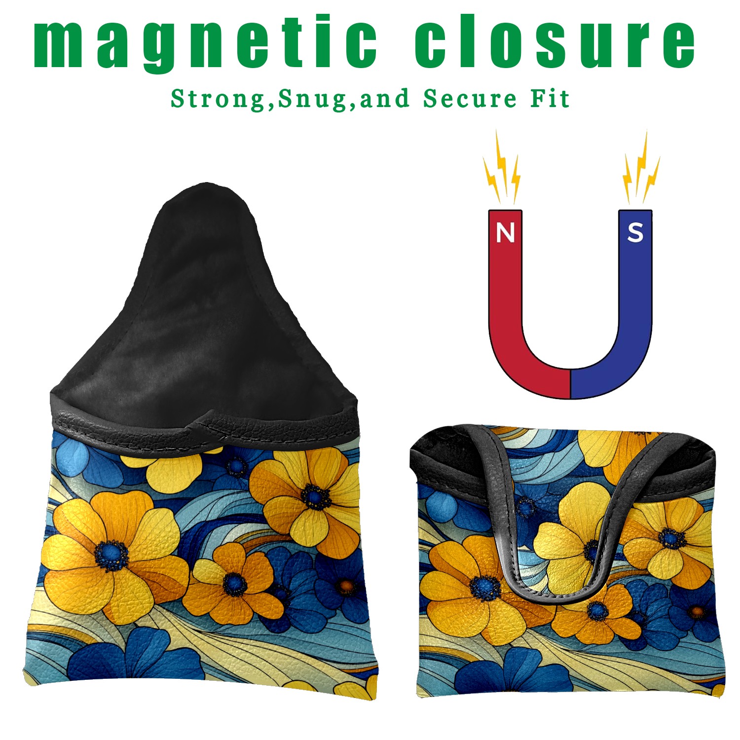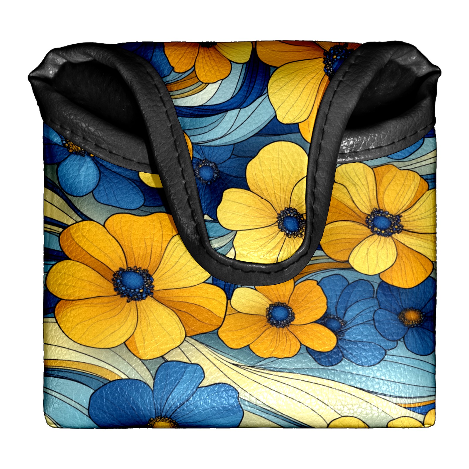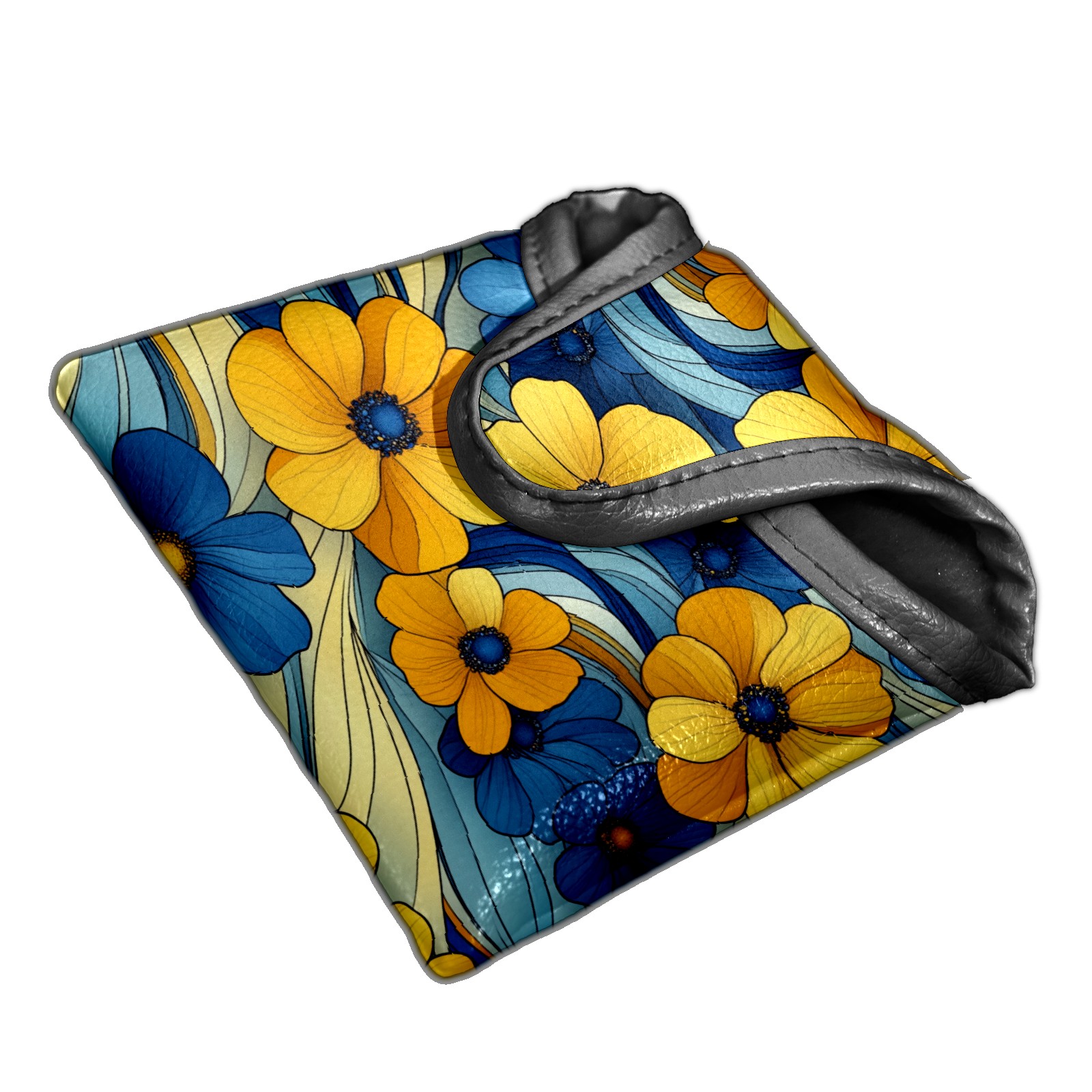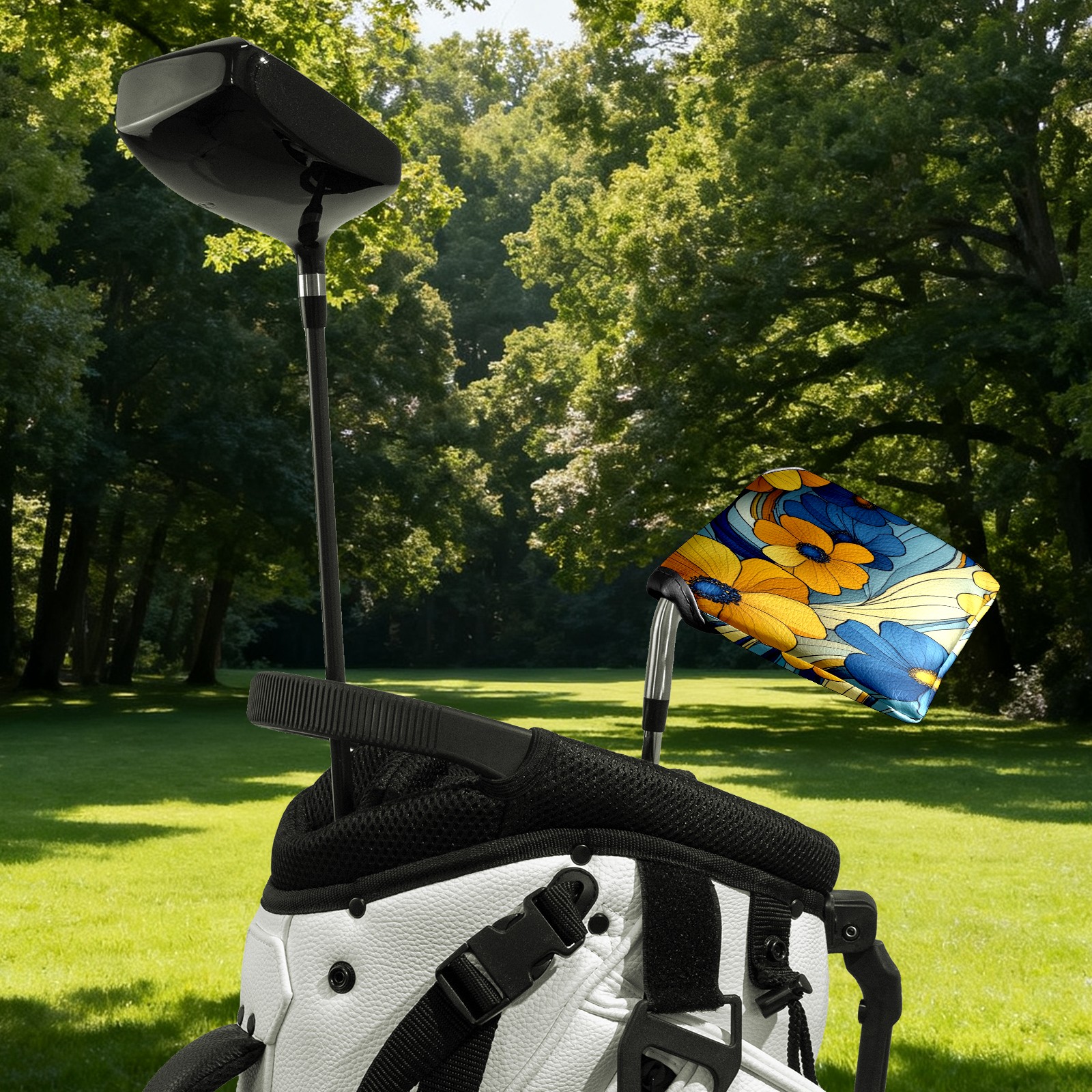 Mallet Putter Cover,Golf Club Head Cover, PU Leather Iron Head Covers Set Gift for Travel Cases Protector Fit Most, Easily Slips on and Secures Yellow Blue Flowers 2