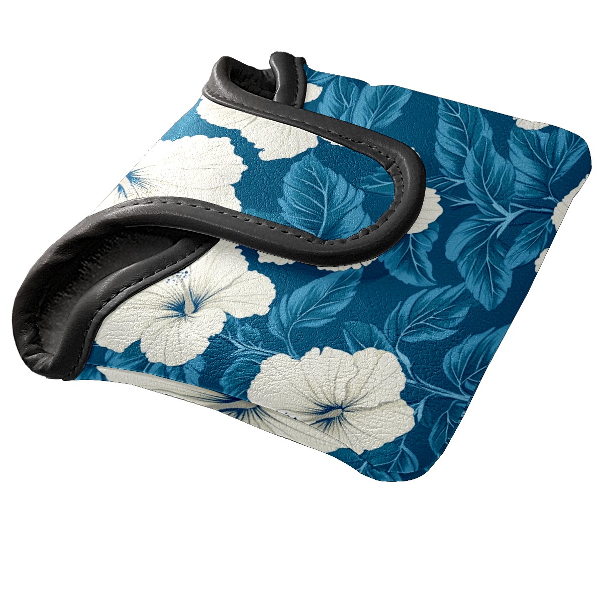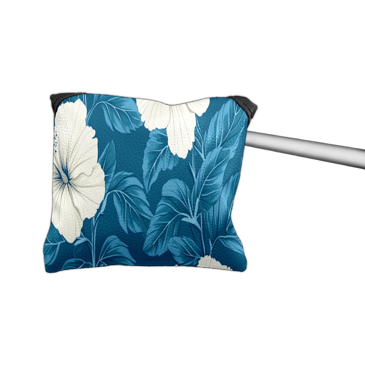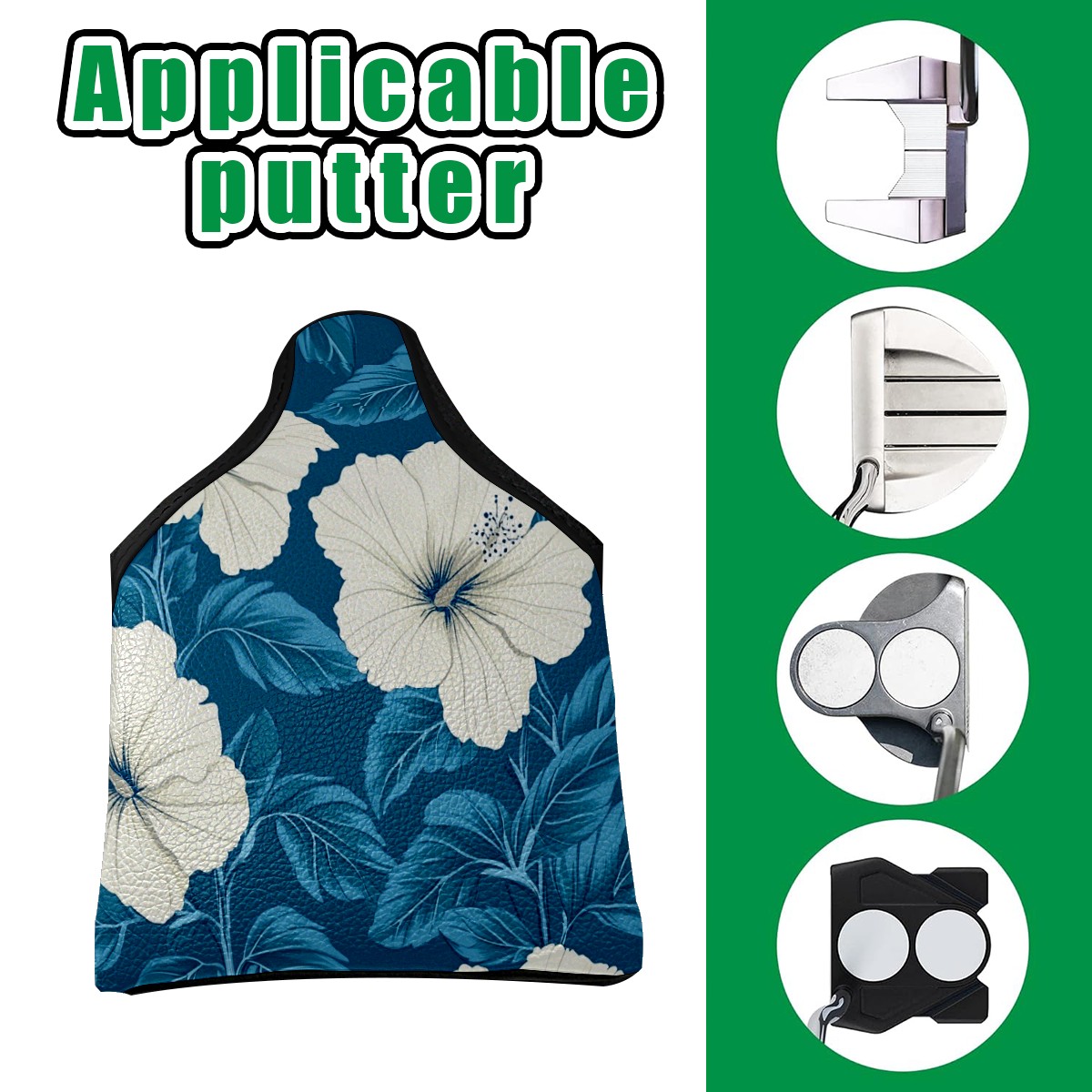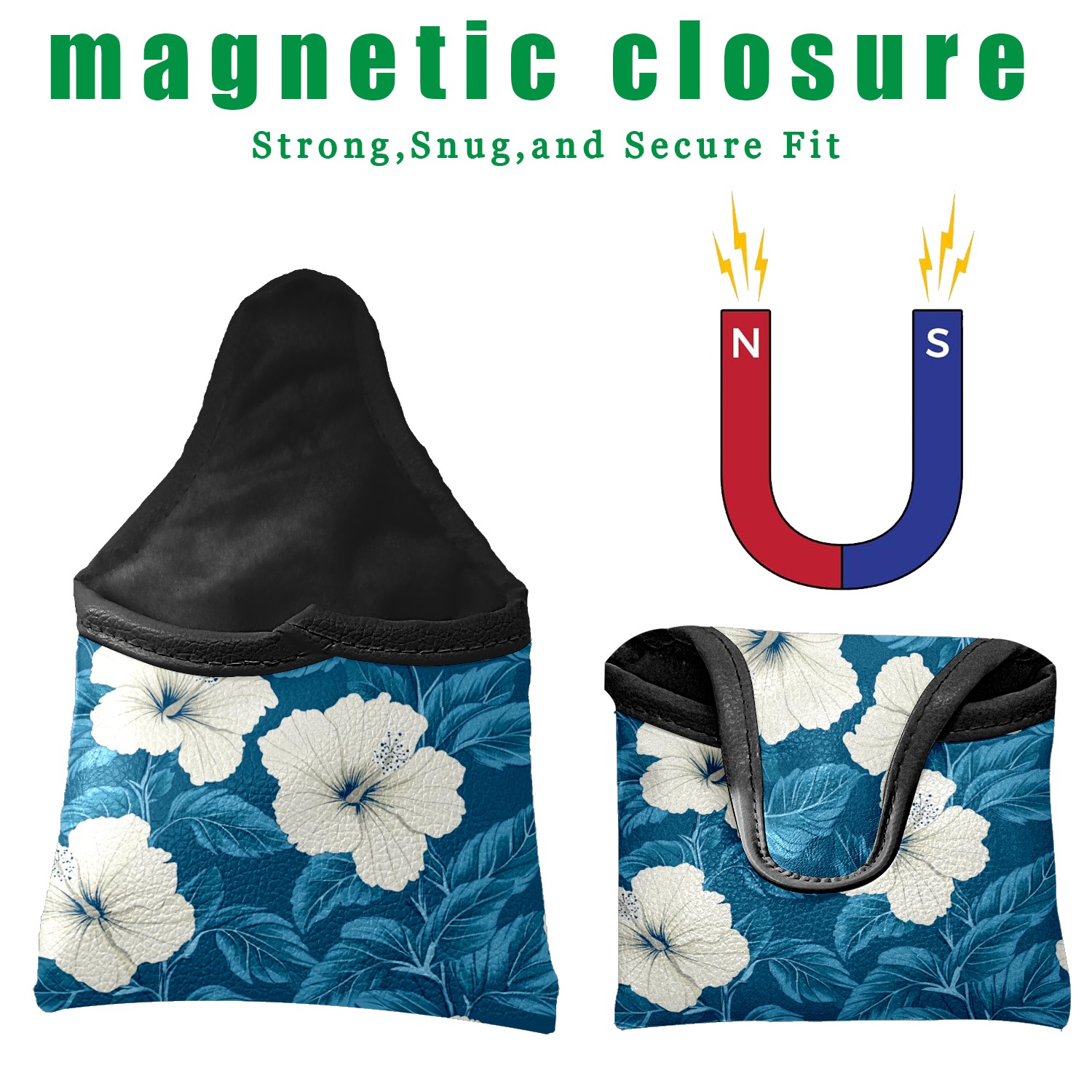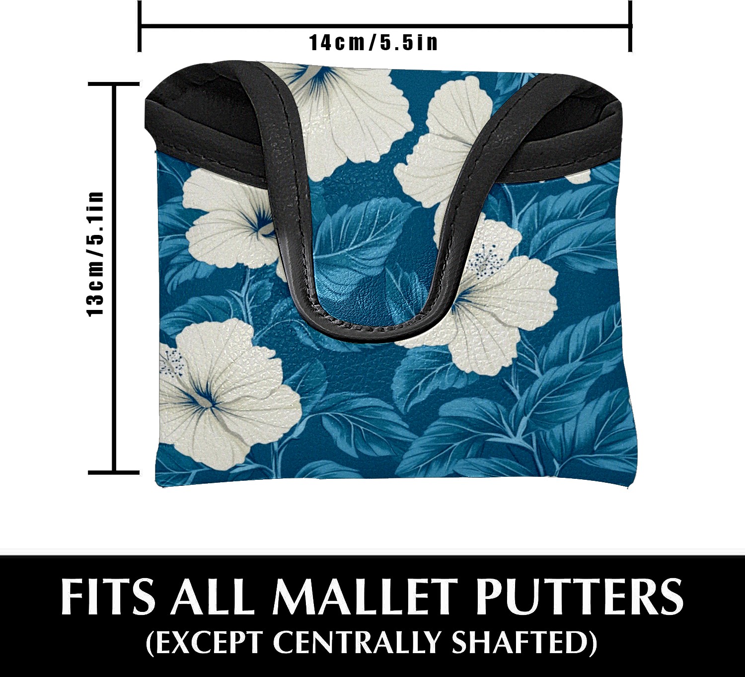 Mallet Putter Cover,Golf Club Head Cover, PU Leather Iron Head Covers Set Gift for Travel Cases Protector Fit Most, Easily Slips on and Secures White Hibiscus Flowers