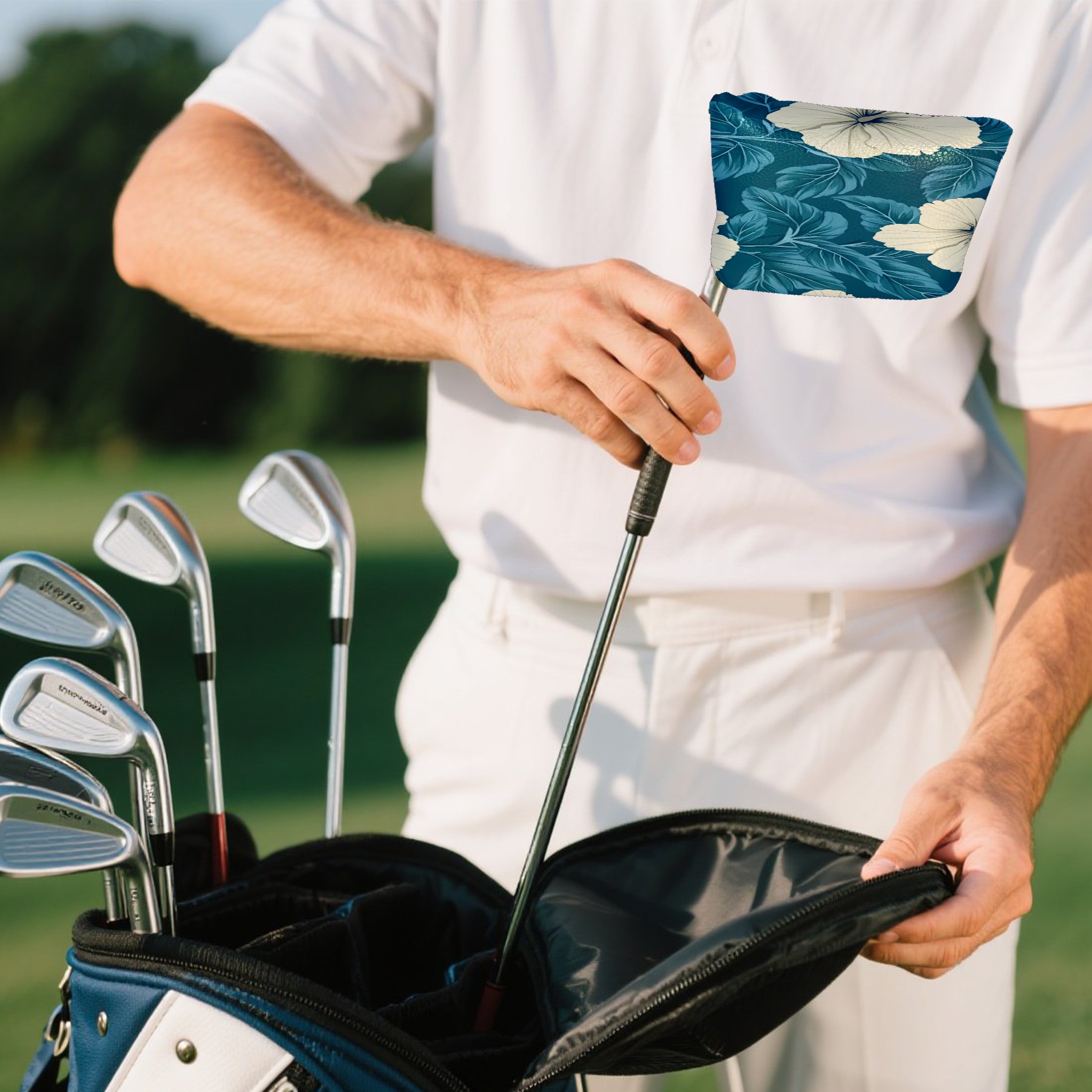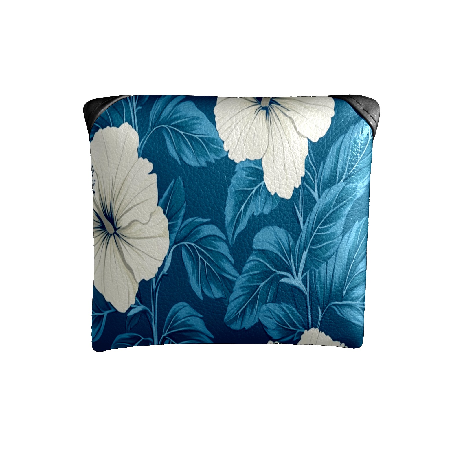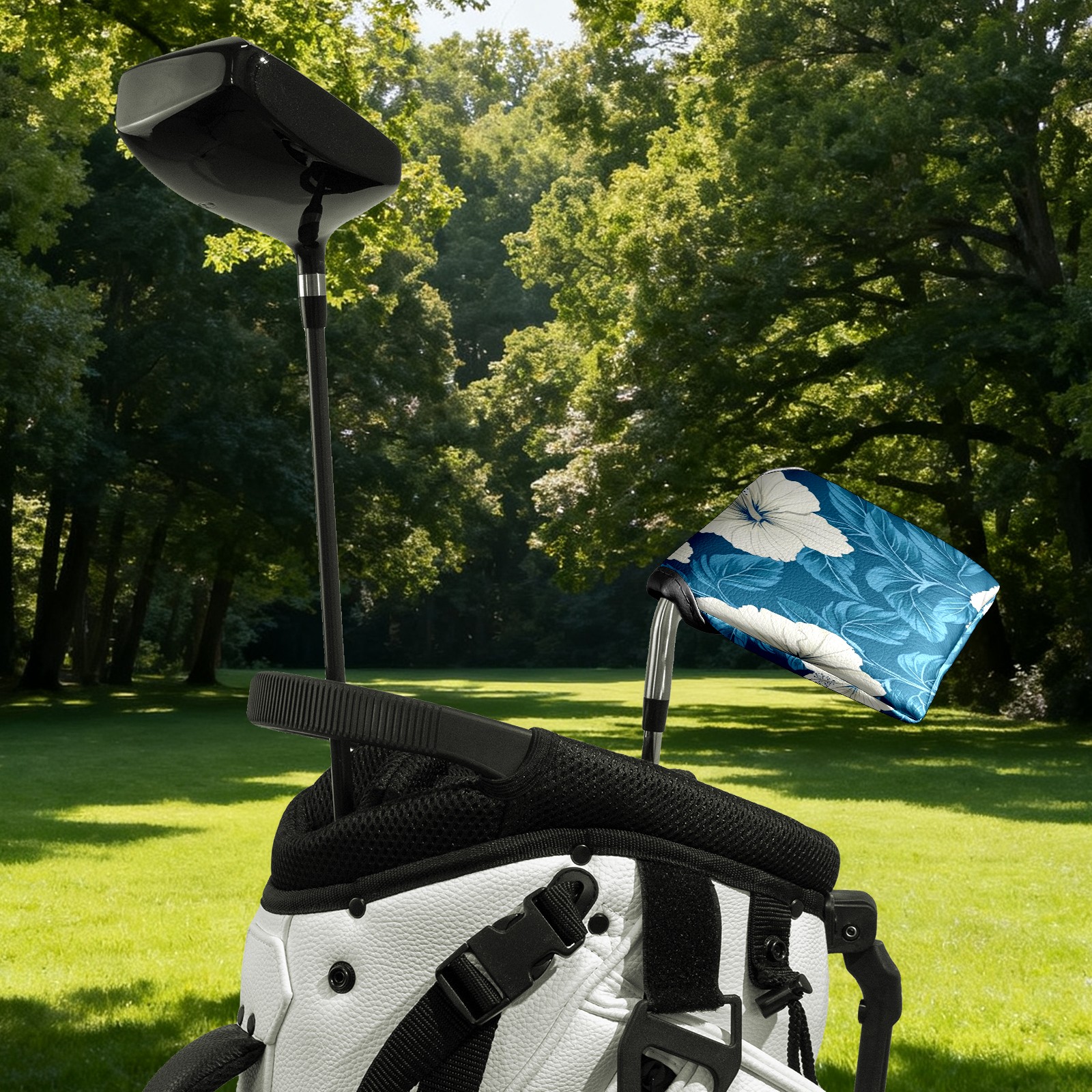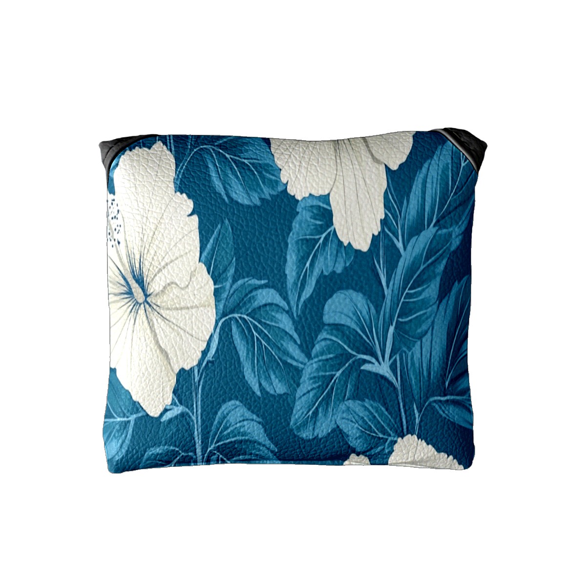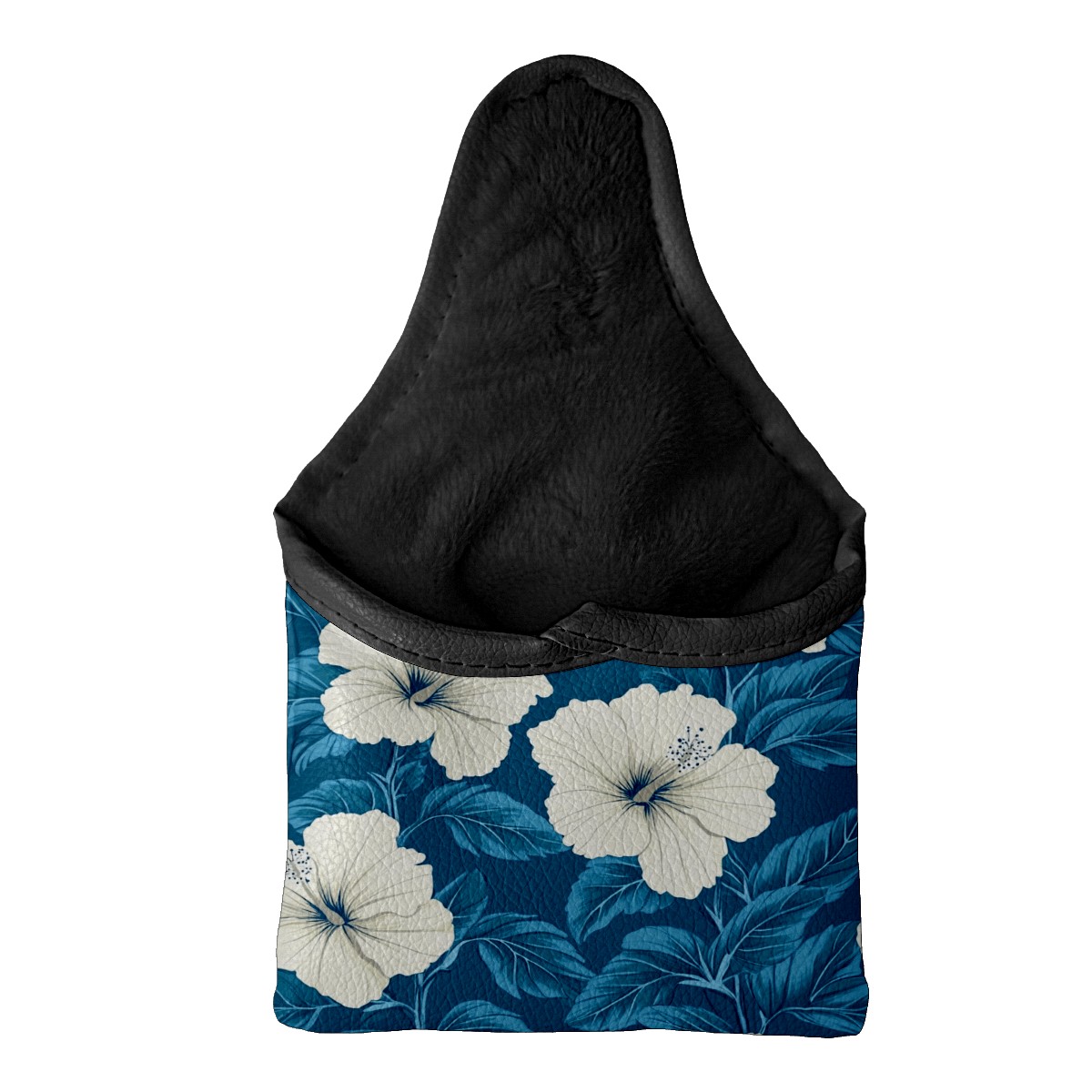 Mallet Putter Cover,Golf Club Head Cover, PU Leather Iron Head Covers Set Gift for Travel Cases Protector Fit Most, Easily Slips on and Secures White Hibiscus Flowers