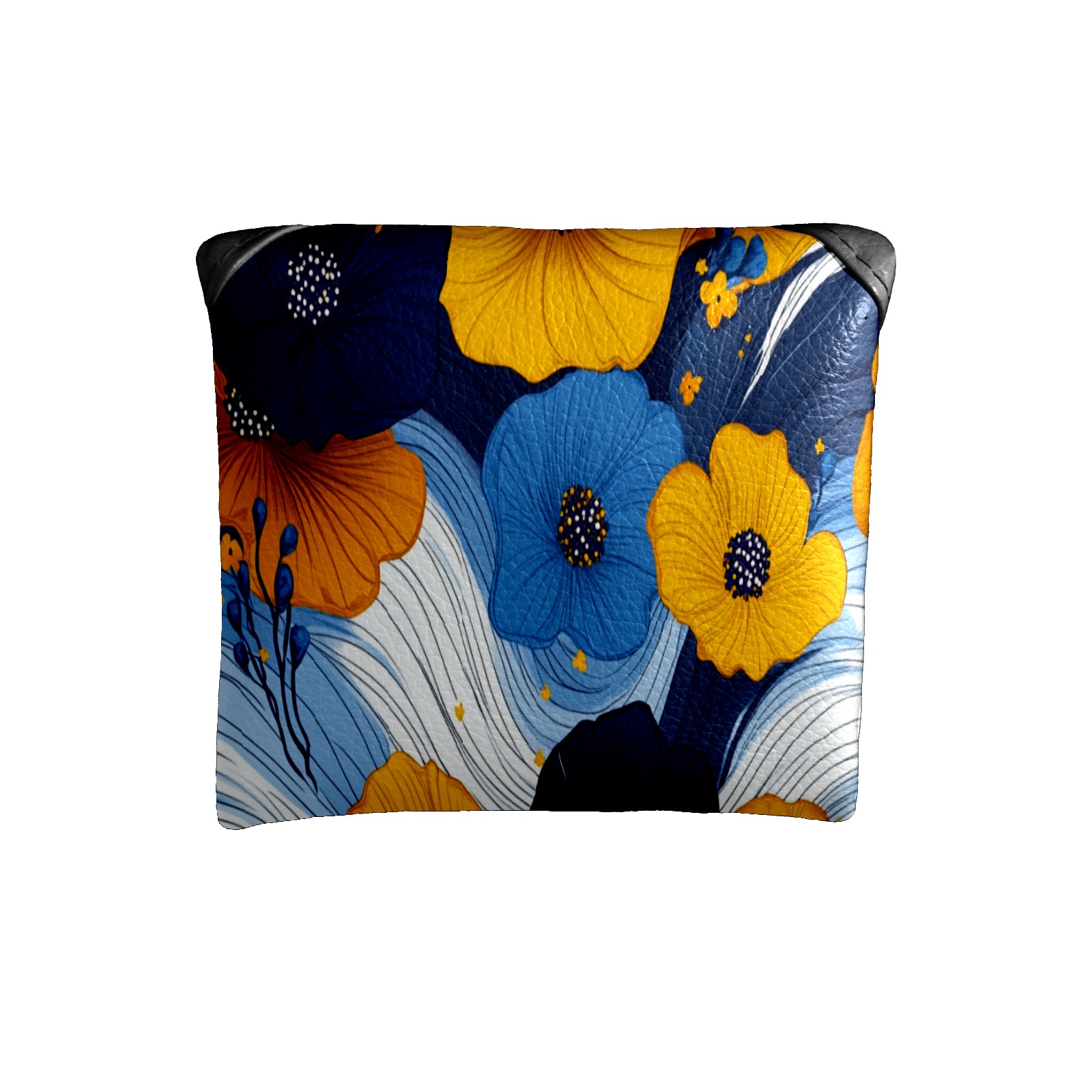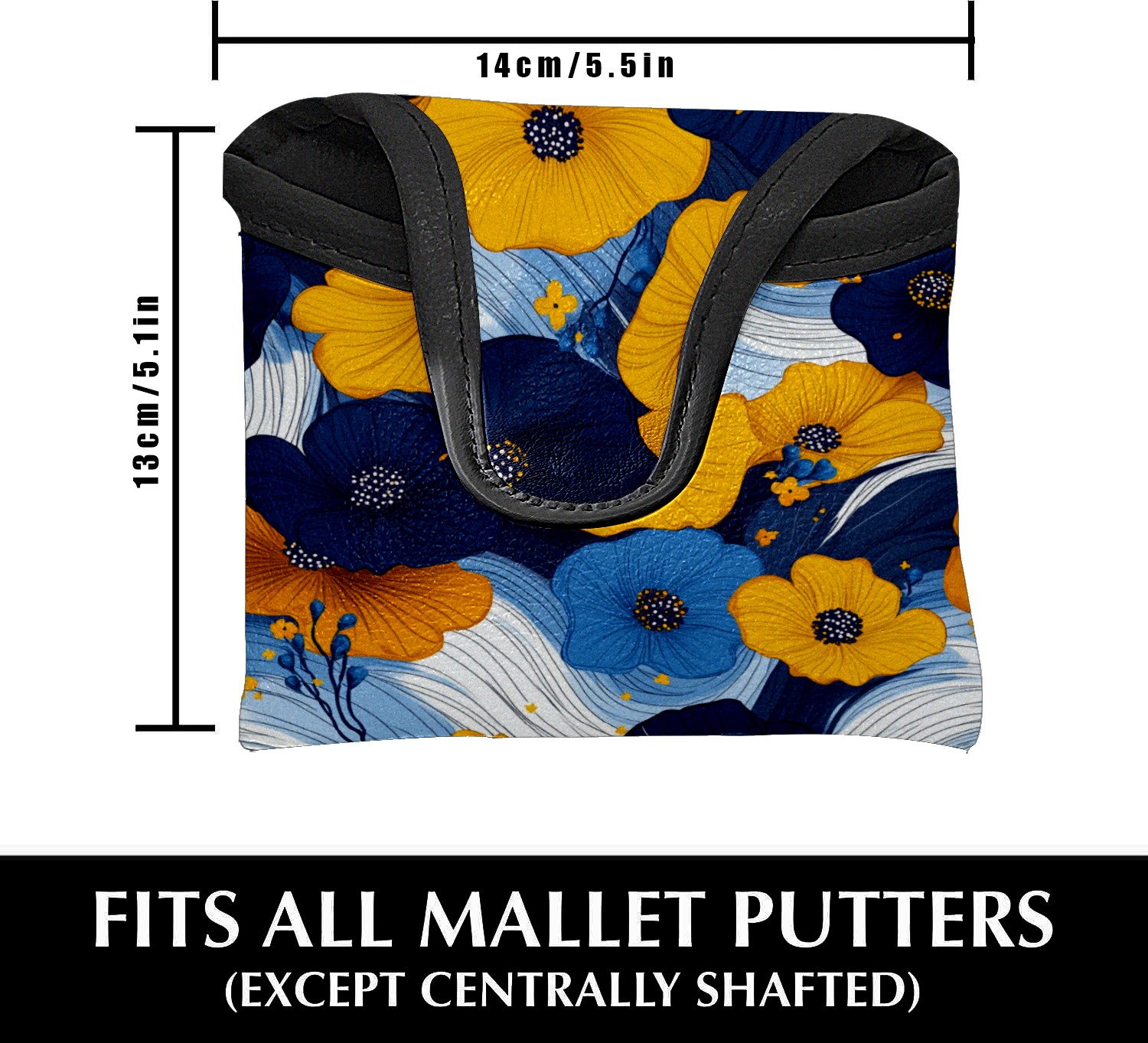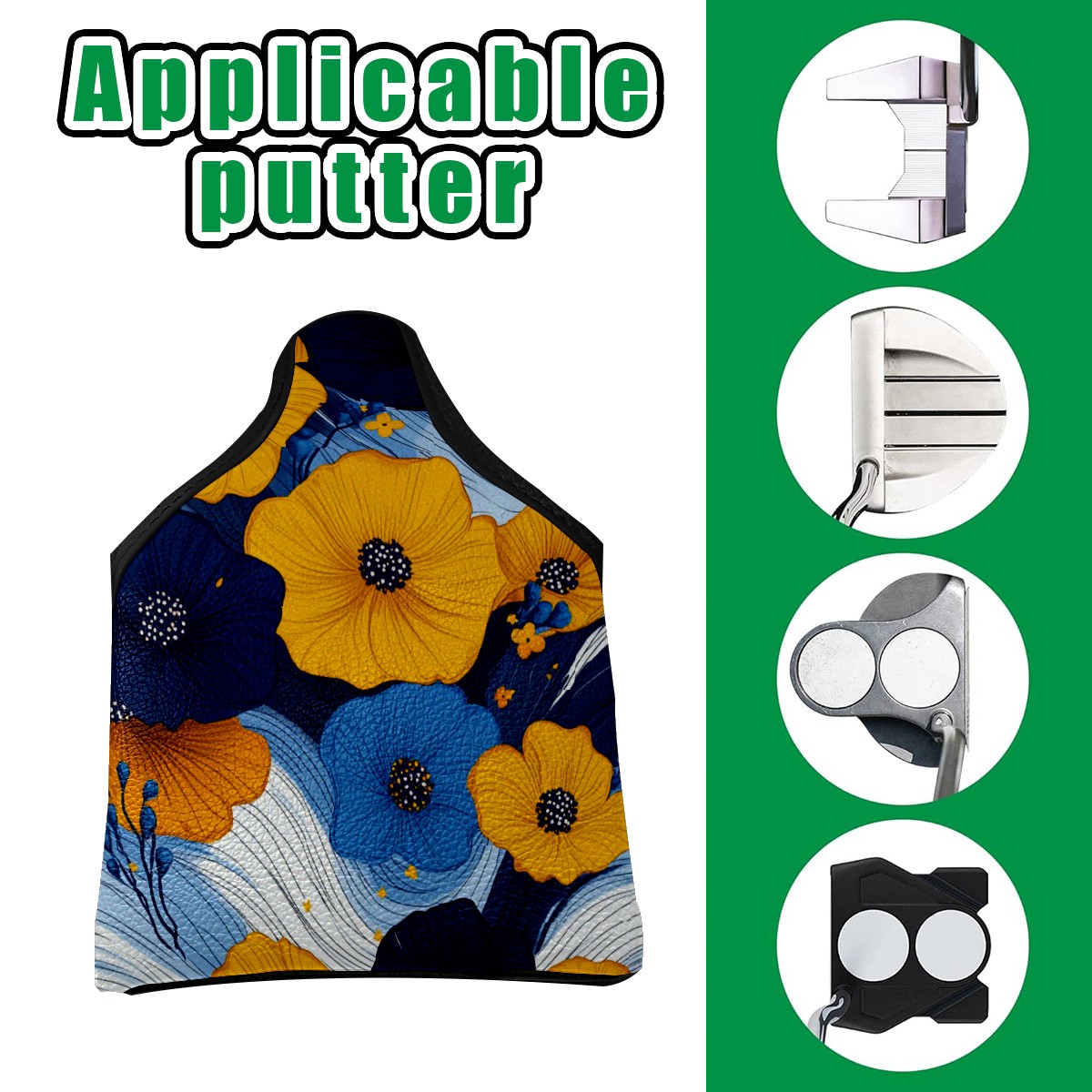 Mallet Putter Cover,Golf Club Head Cover, PU Leather Iron Head Covers Set Gift for Travel Cases Protector Fit Most, Easily Slips on and Secures Yellow Blue Flowers 1