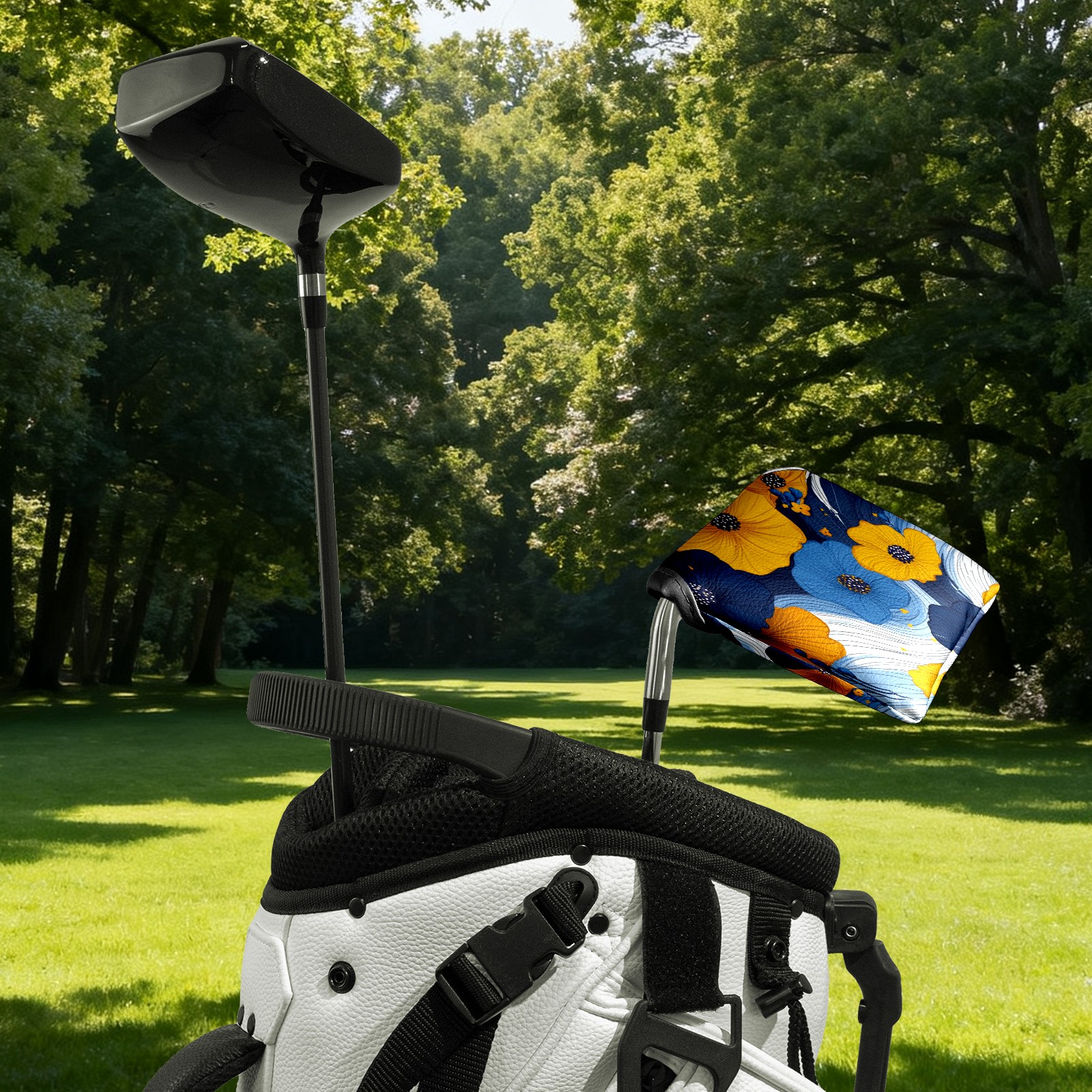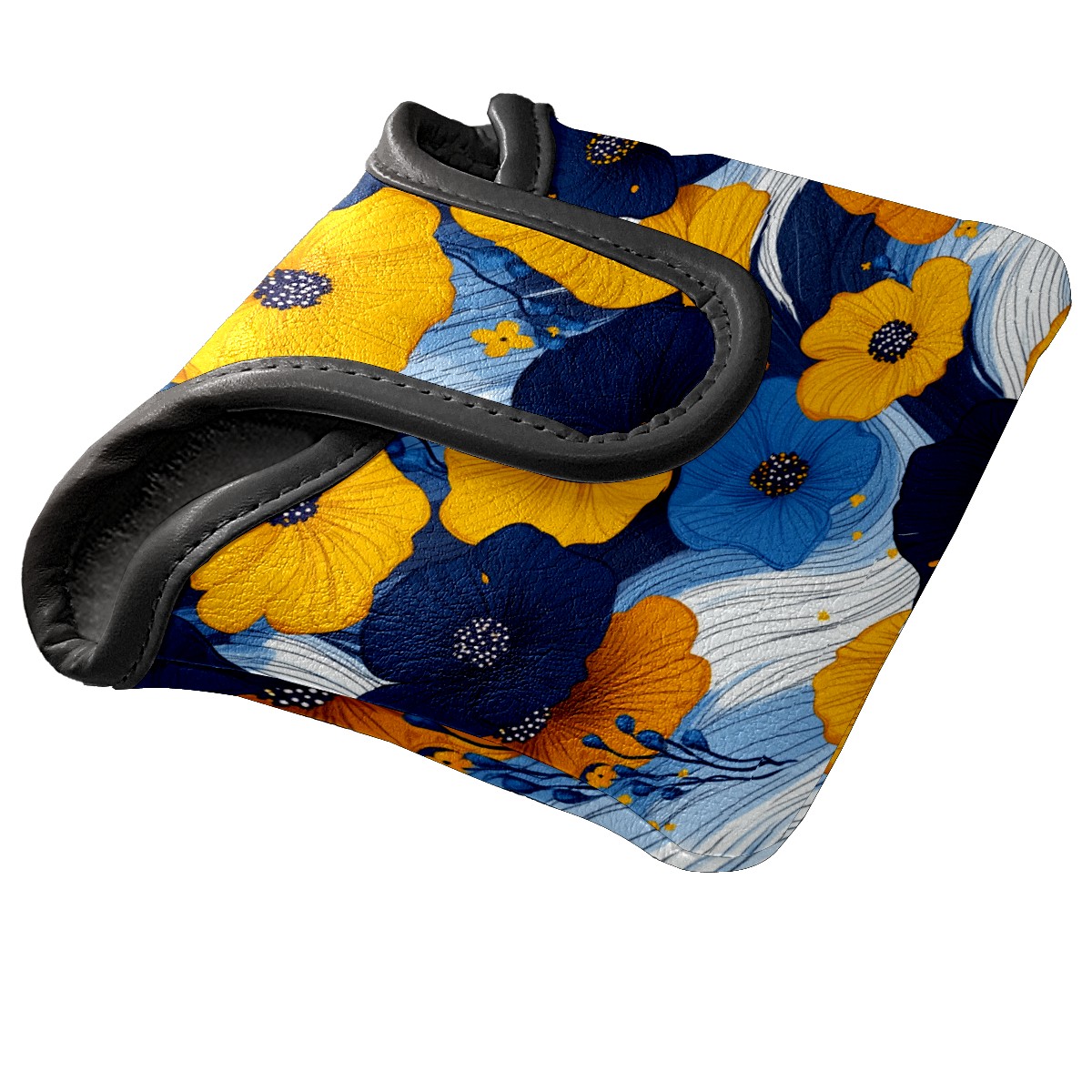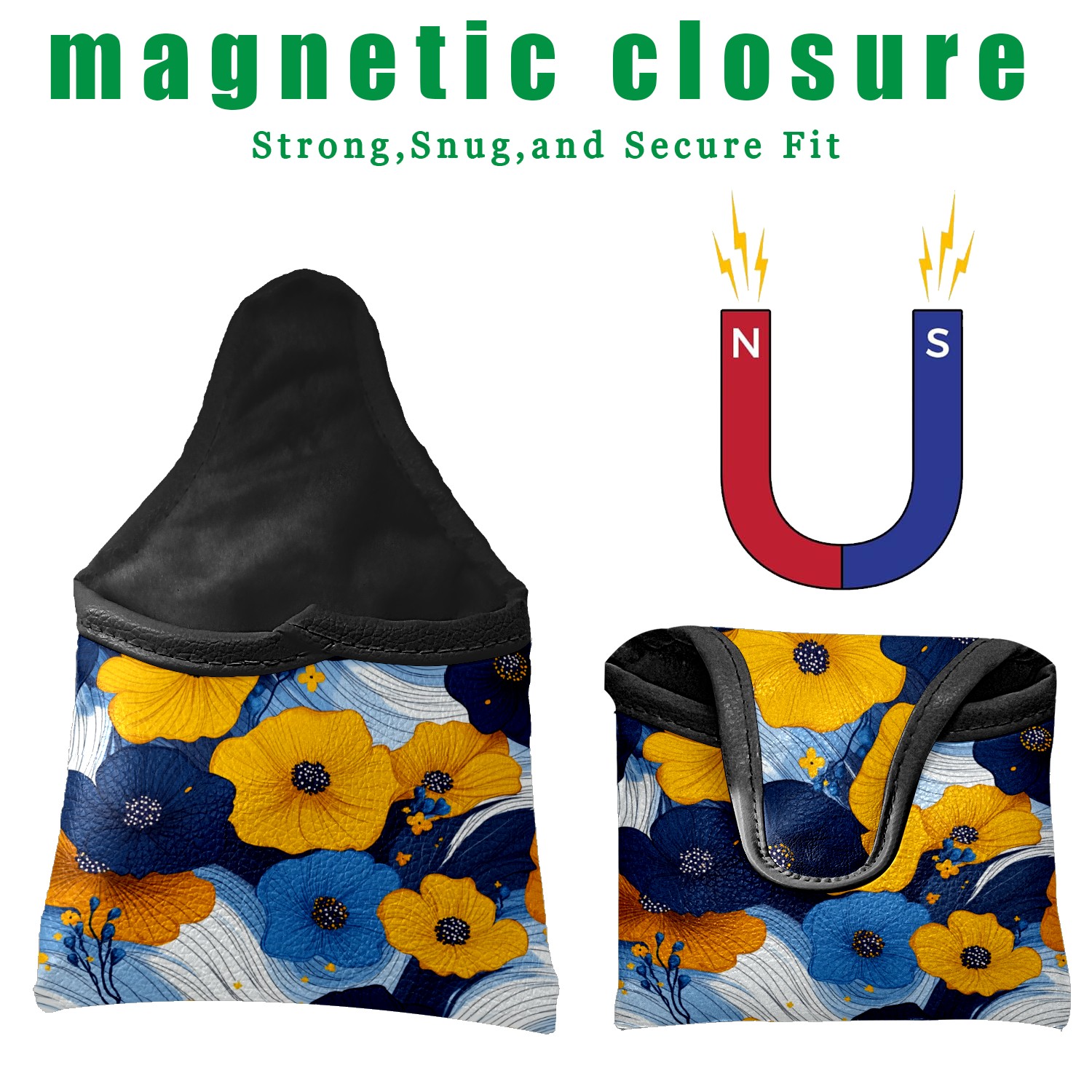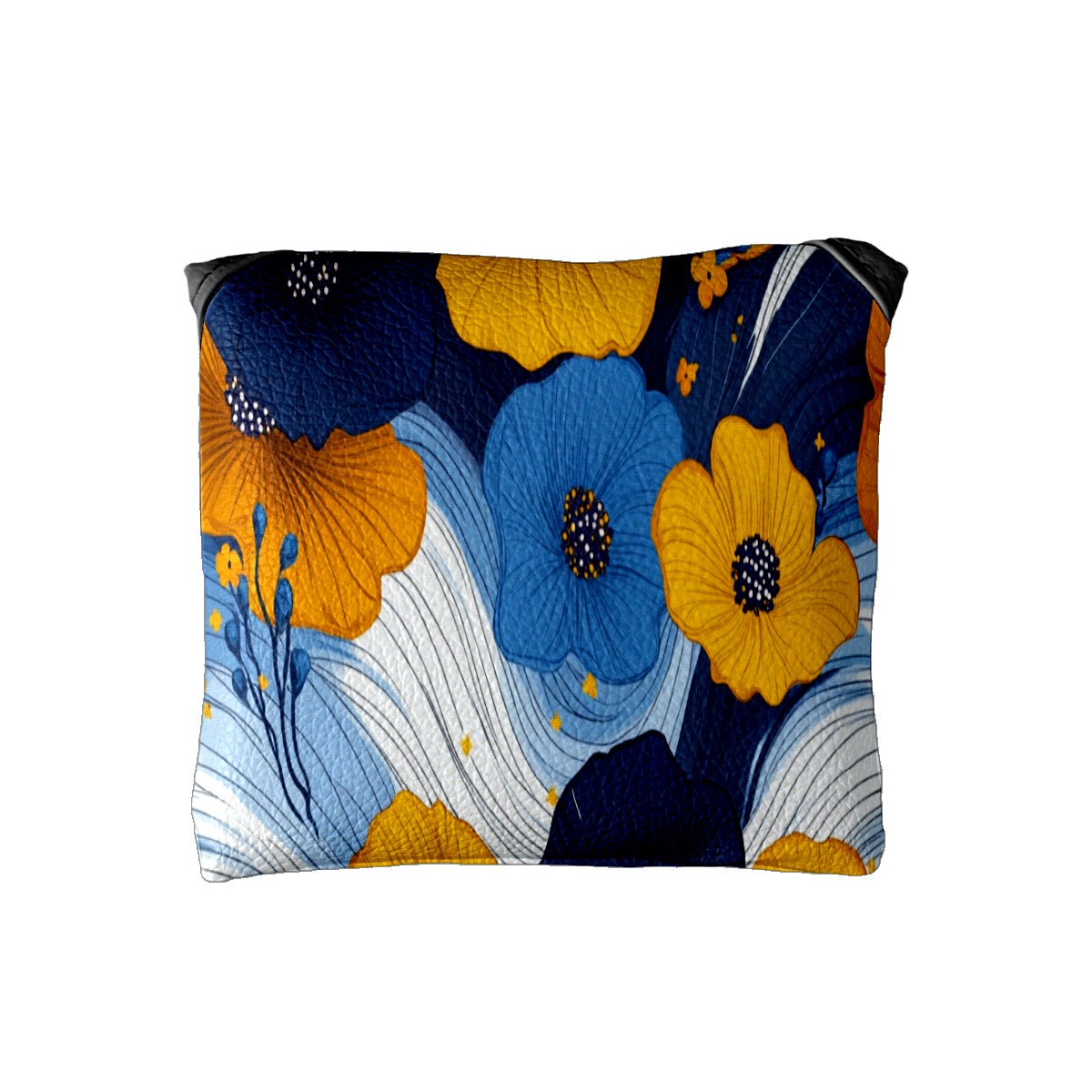 Mallet Putter Cover,Golf Club Head Cover, PU Leather Iron Head Covers Set Gift for Travel Cases Protector Fit Most, Easily Slips on and Secures Yellow Blue Flowers 1