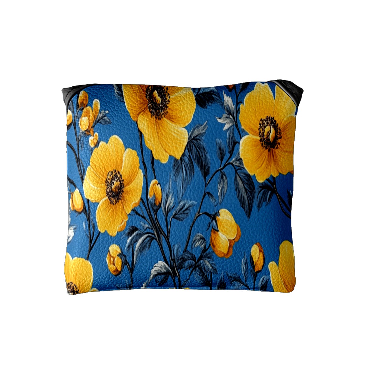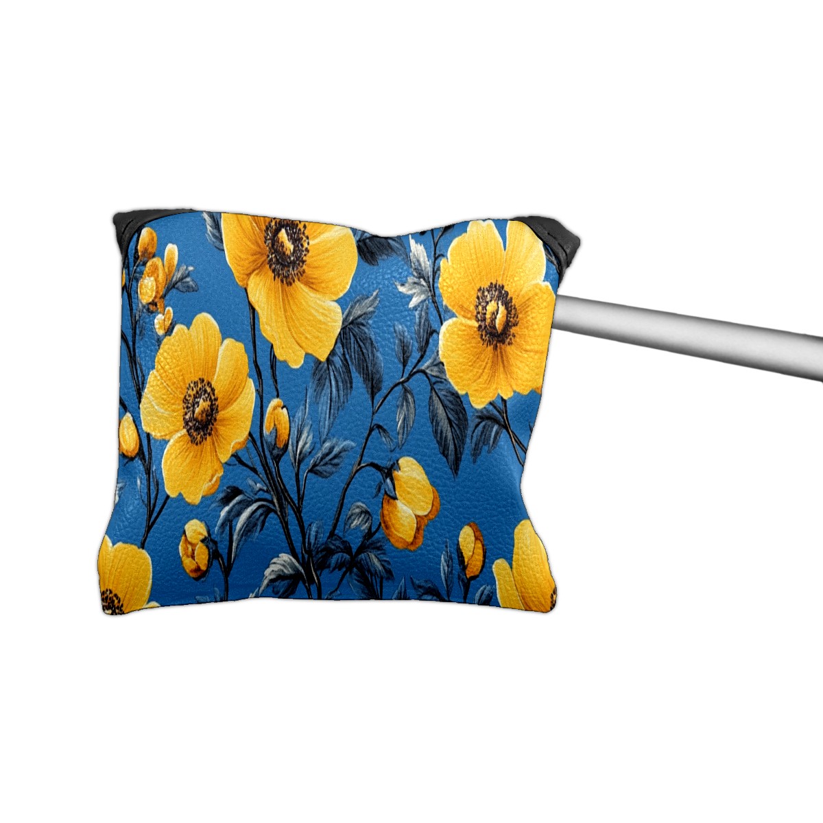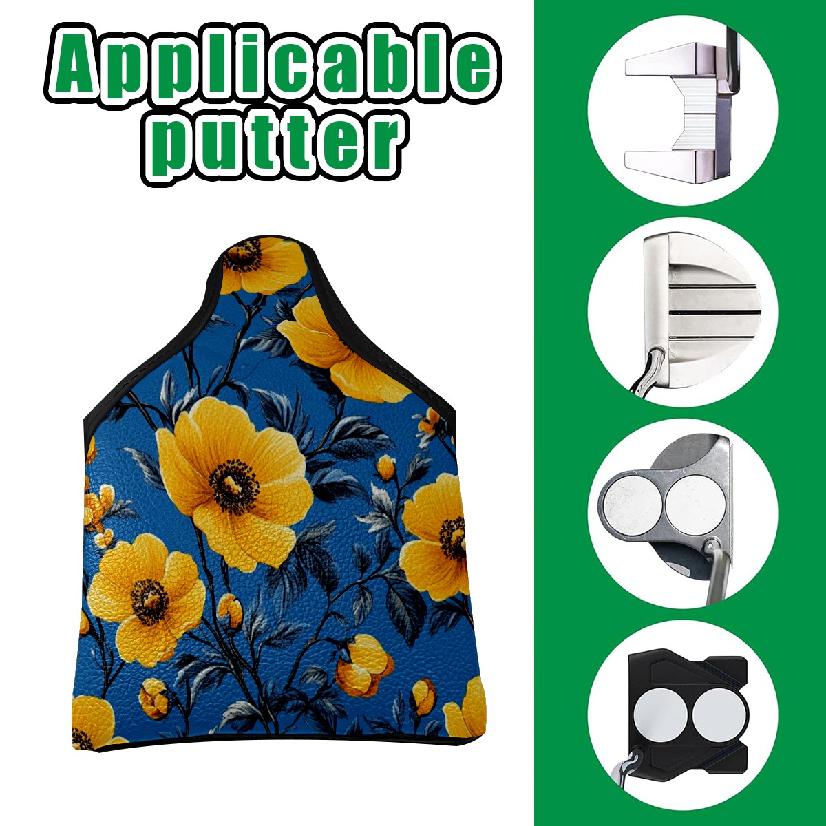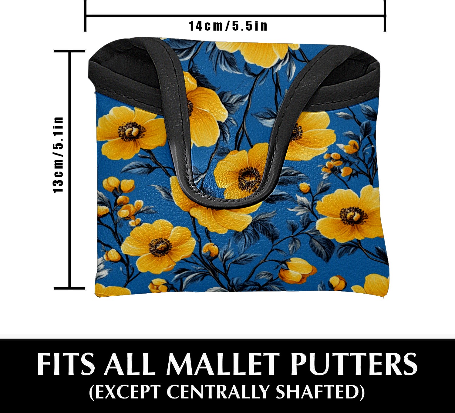 Mallet Putter Cover,Golf Club Head Cover, PU Leather Iron Head Covers Set Gift for Travel Cases Protector Fit Most, Easily Slips on and Secures Yellow Flowers 1
