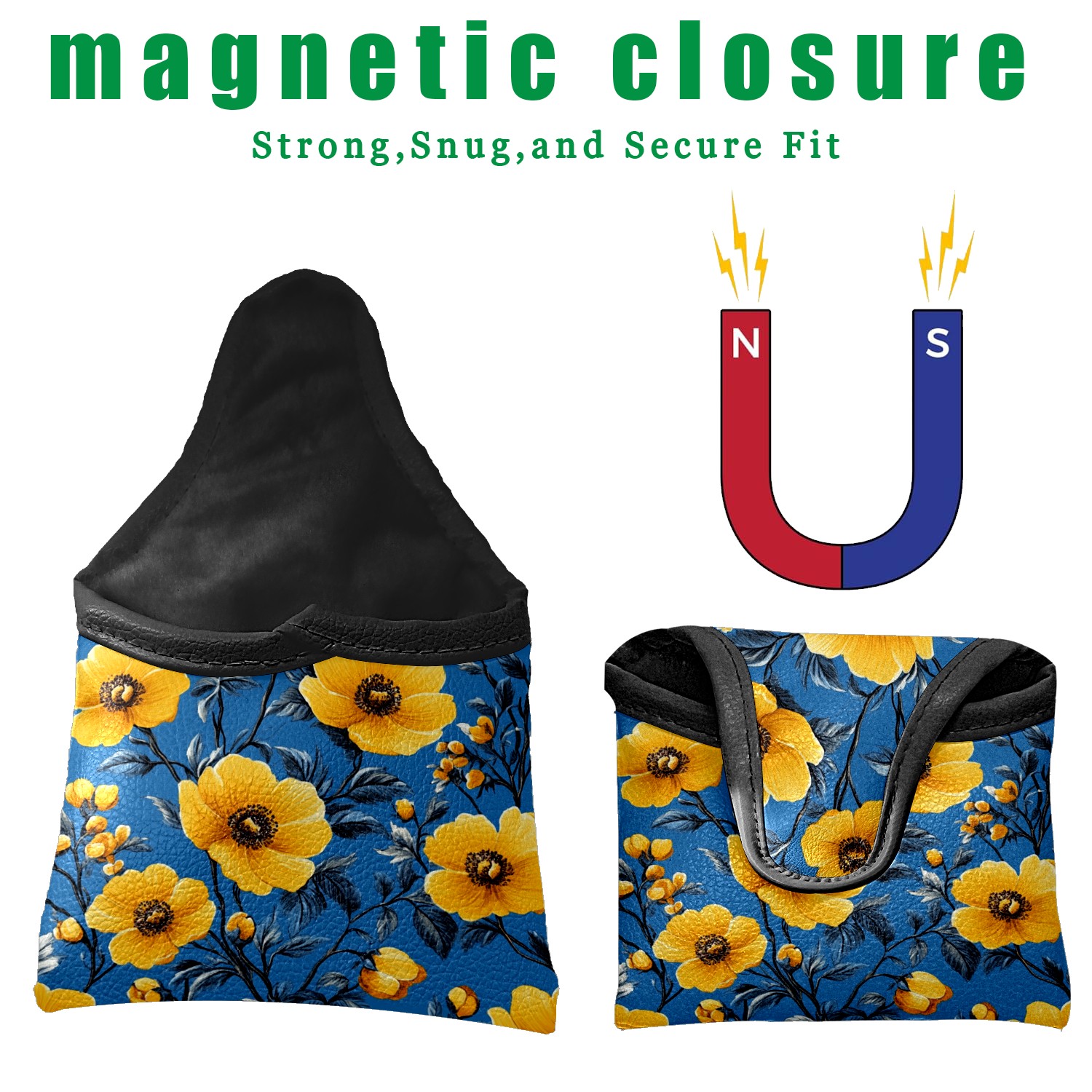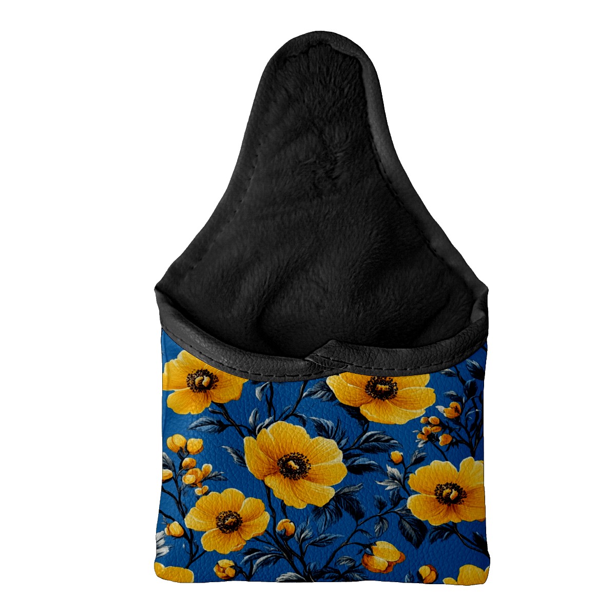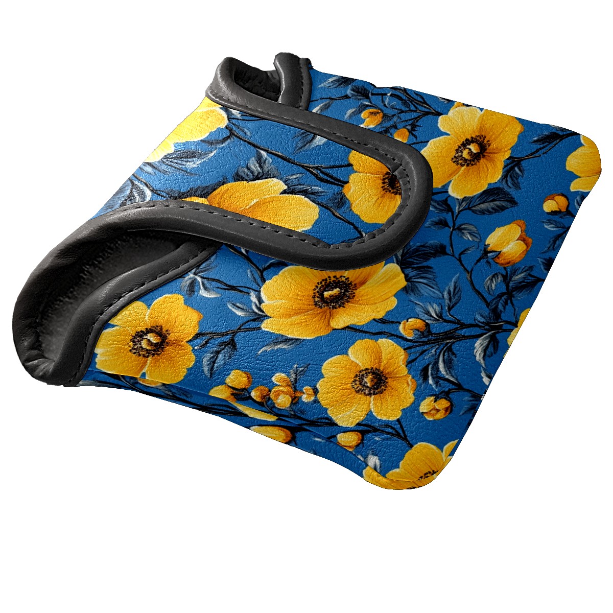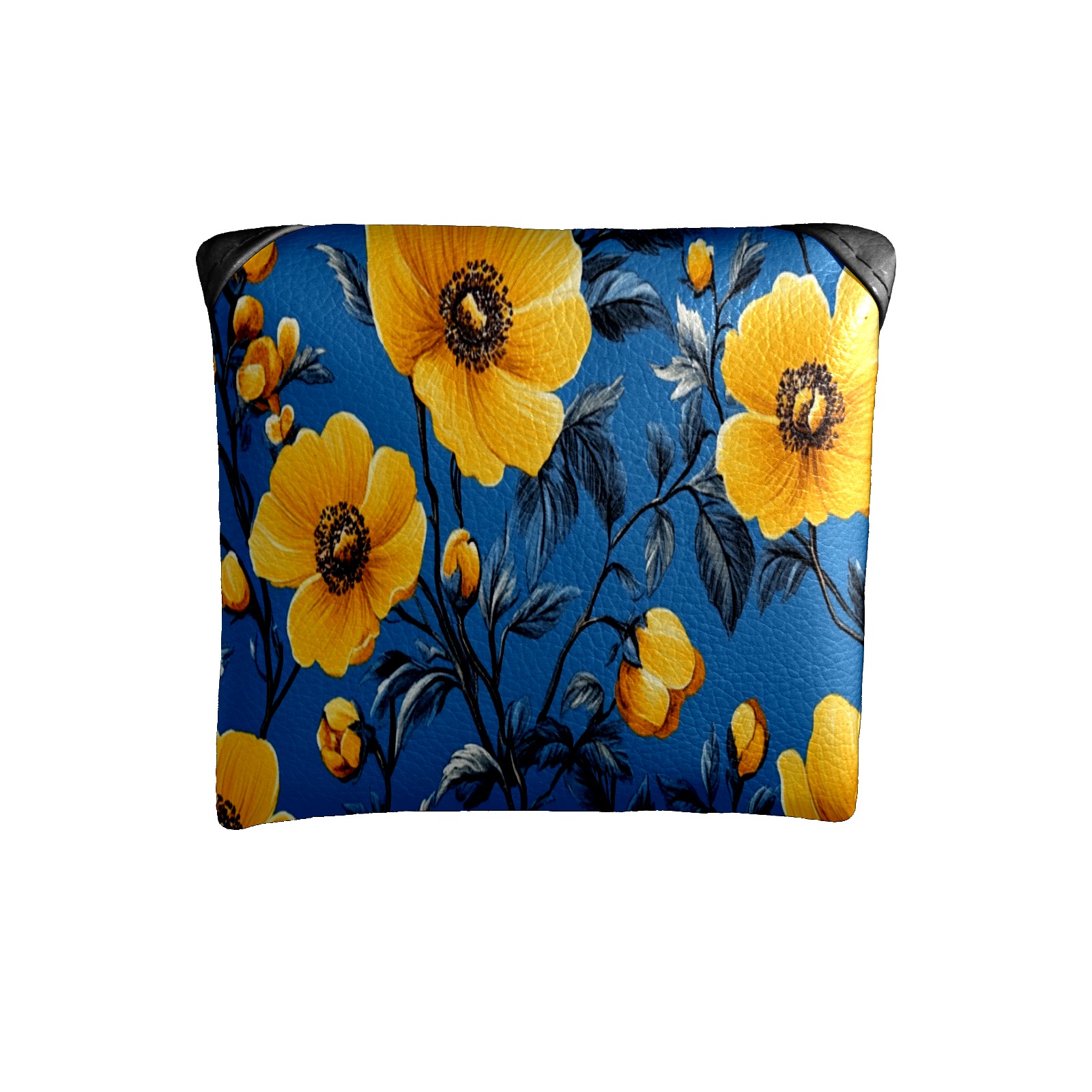 Mallet Putter Cover,Golf Club Head Cover, PU Leather Iron Head Covers Set Gift for Travel Cases Protector Fit Most, Easily Slips on and Secures Yellow Flowers 1