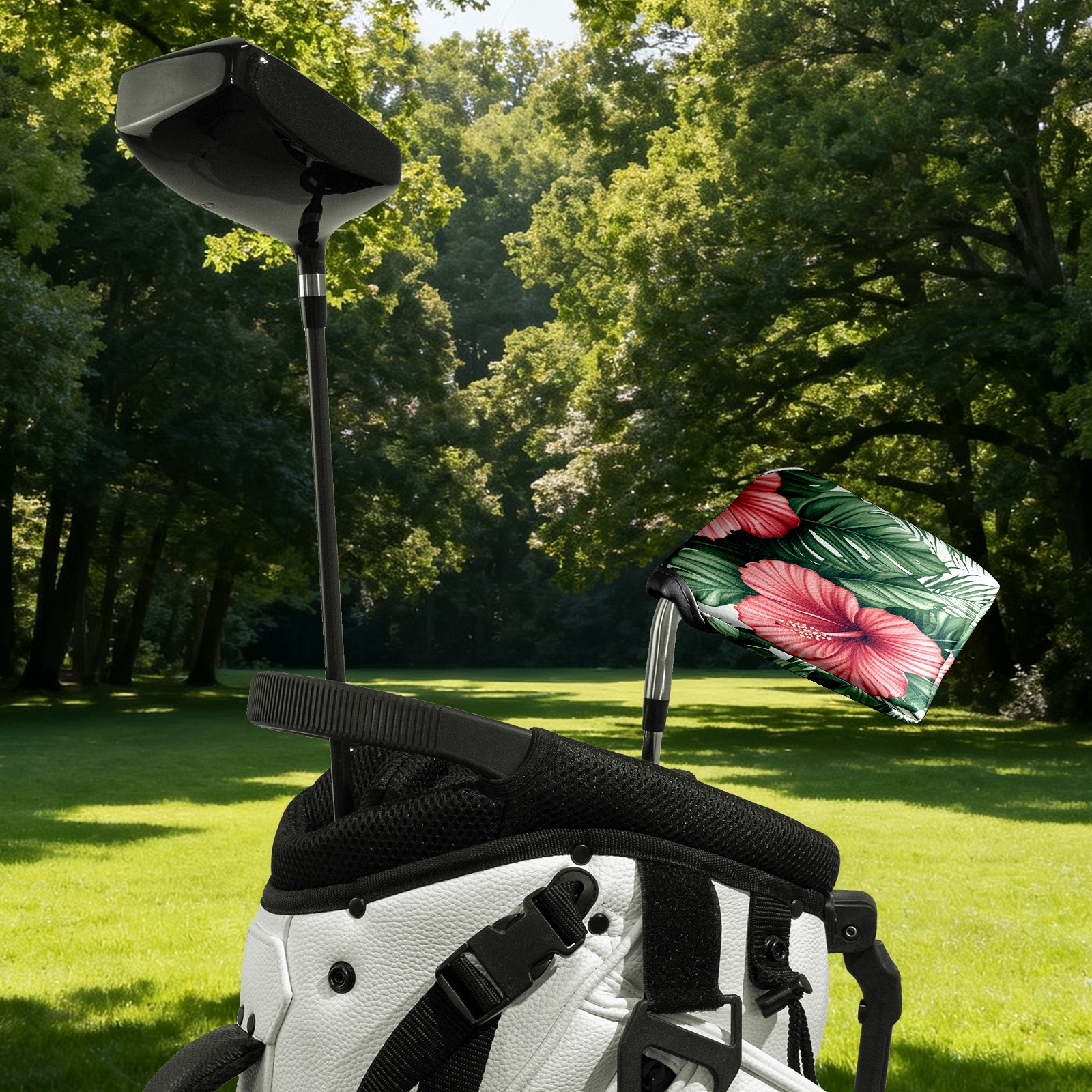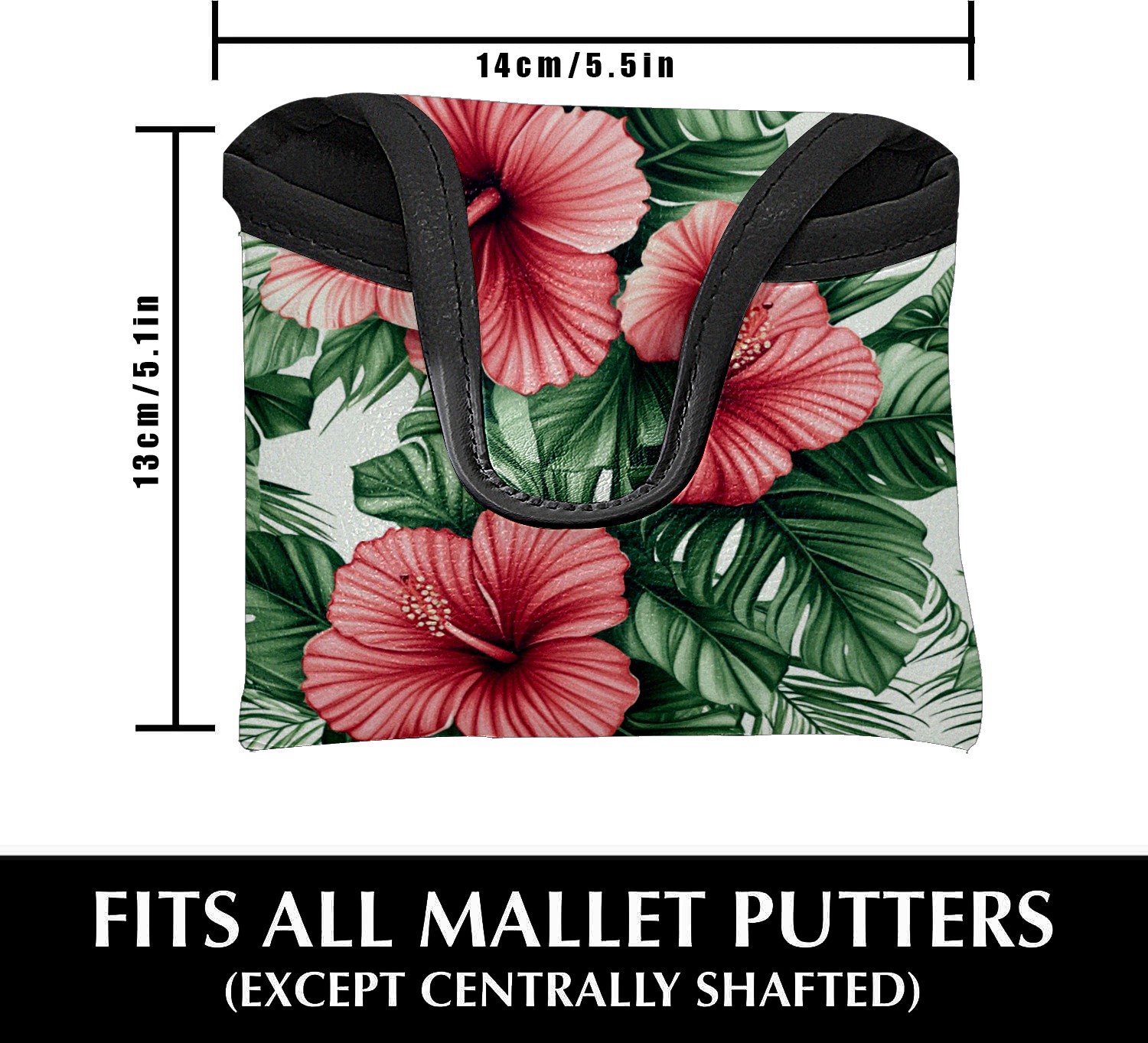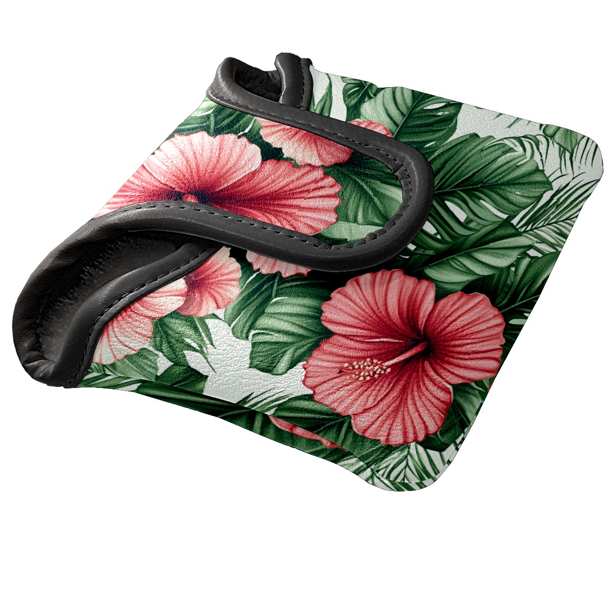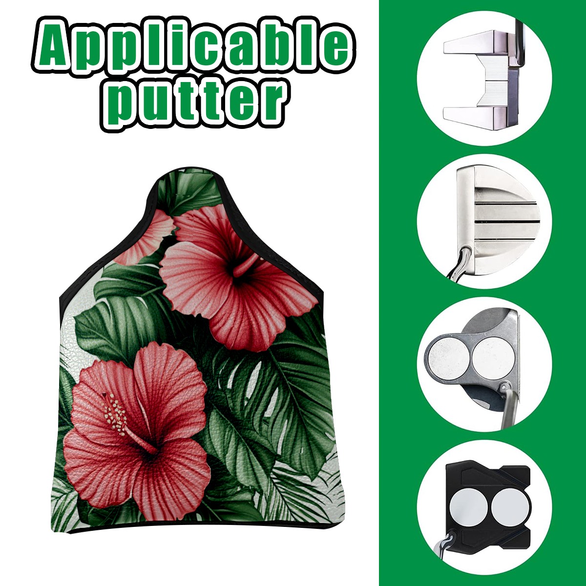 Mallet Putter Cover,Golf Club Head Cover, PU Leather Iron Head Covers Set Gift for Travel Cases Protector Fit Most, Easily Slips on and Secures Rose-pink Plants