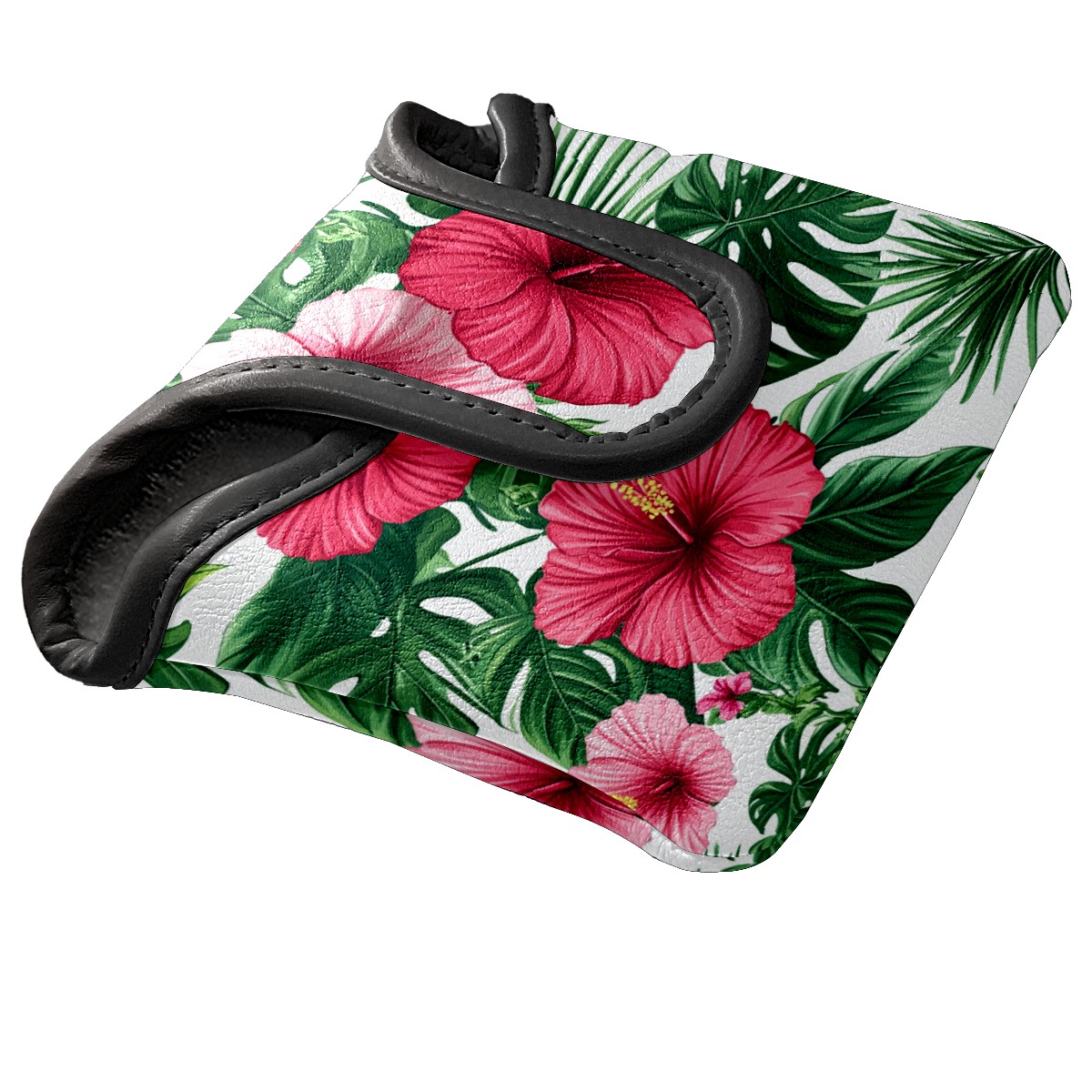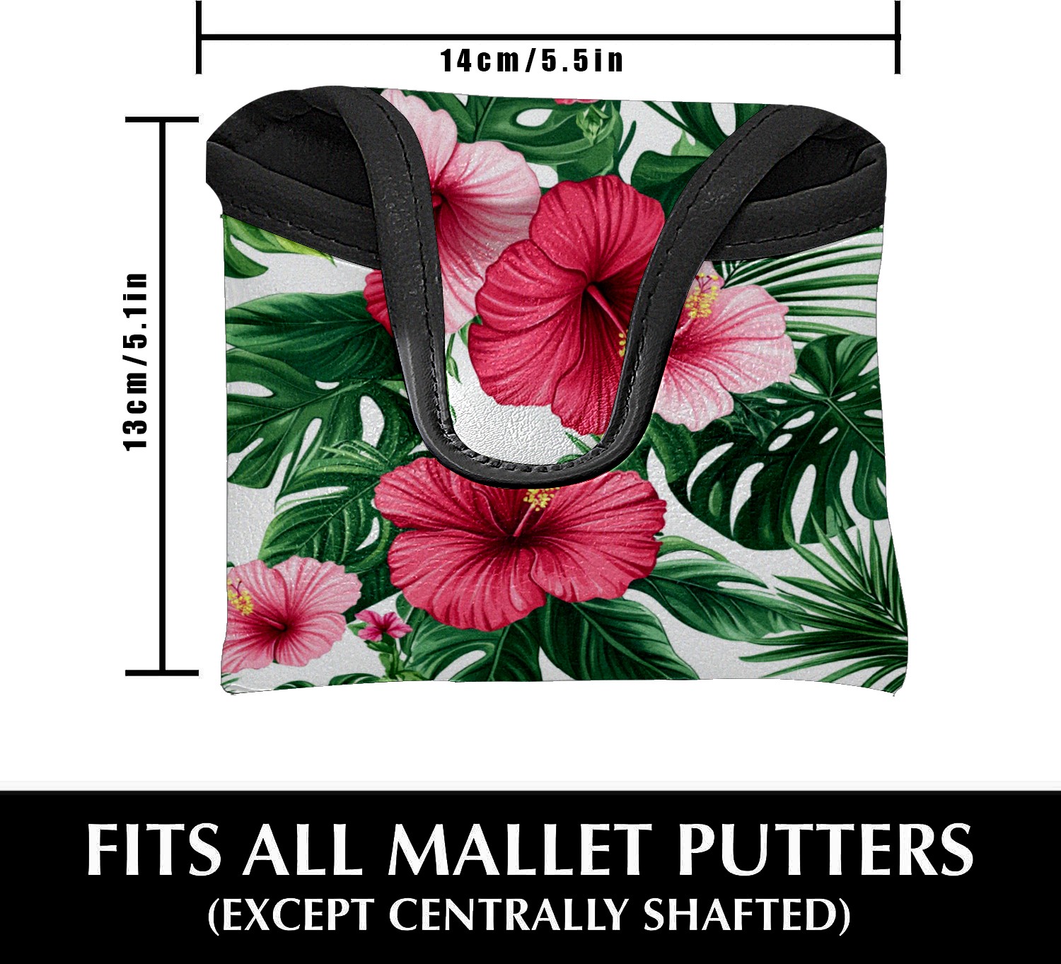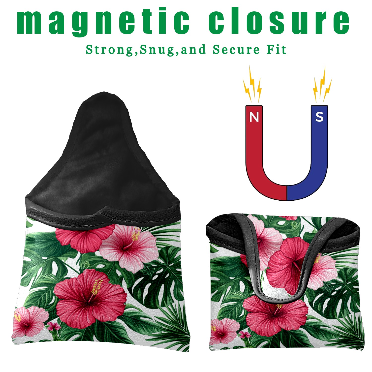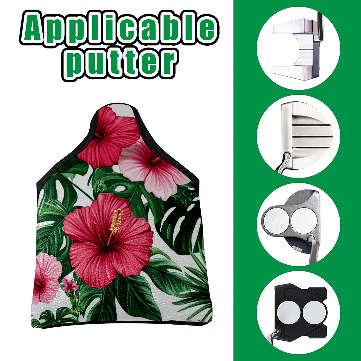 Mallet Putter Cover,Golf Club Head Cover, PU Leather Iron Head Covers Set Gift for Travel Cases Protector Fit Most, Easily Slips on and Secures Pink Leaves