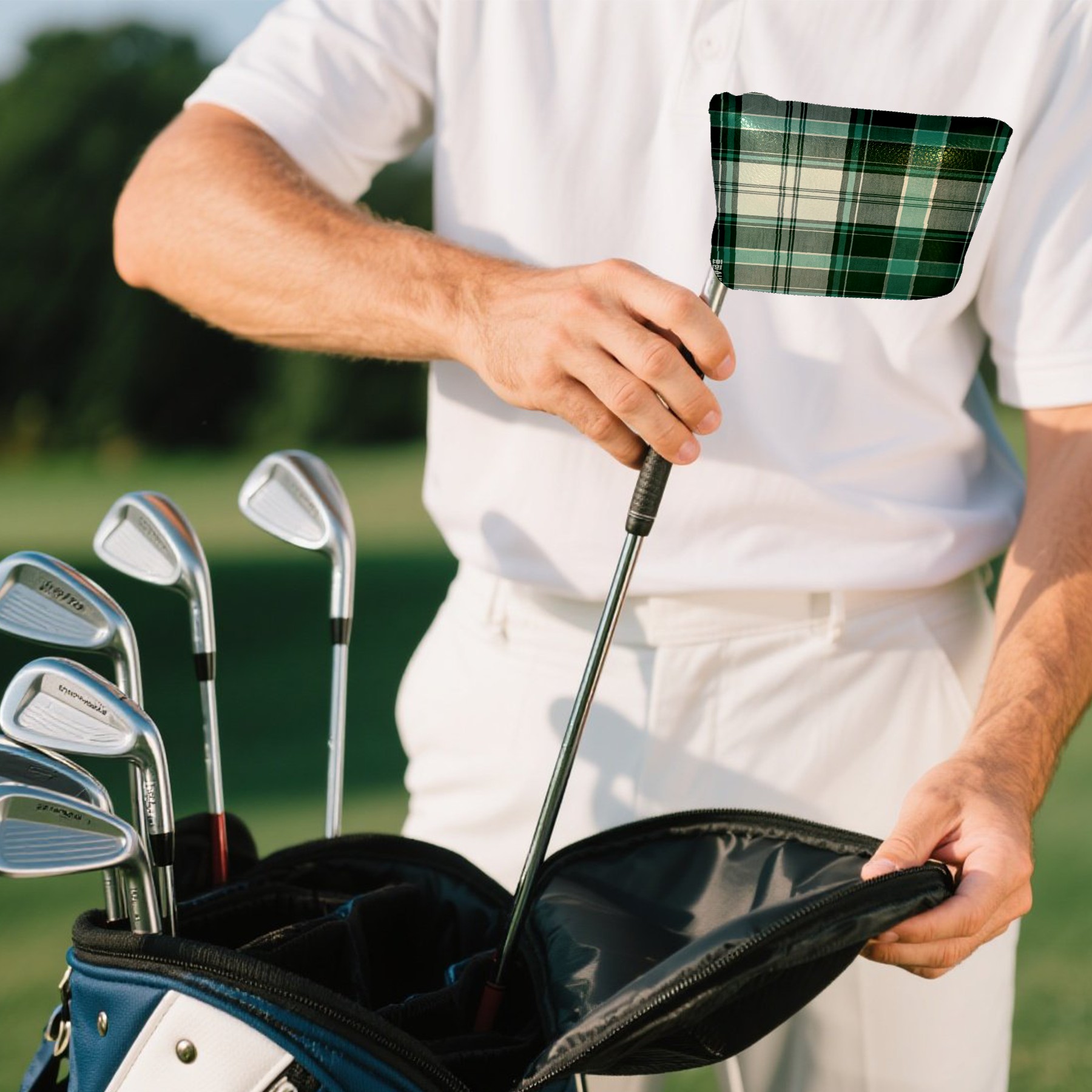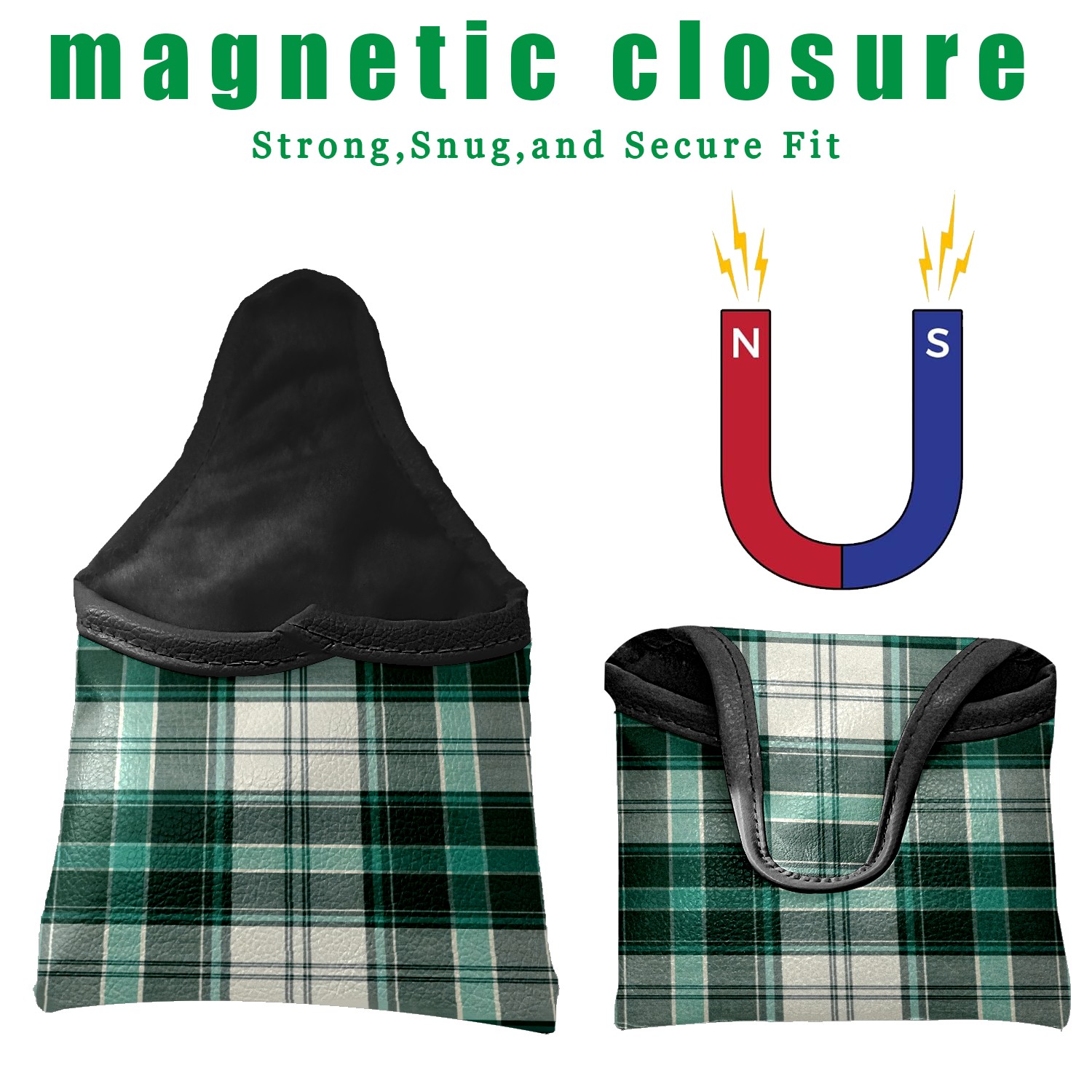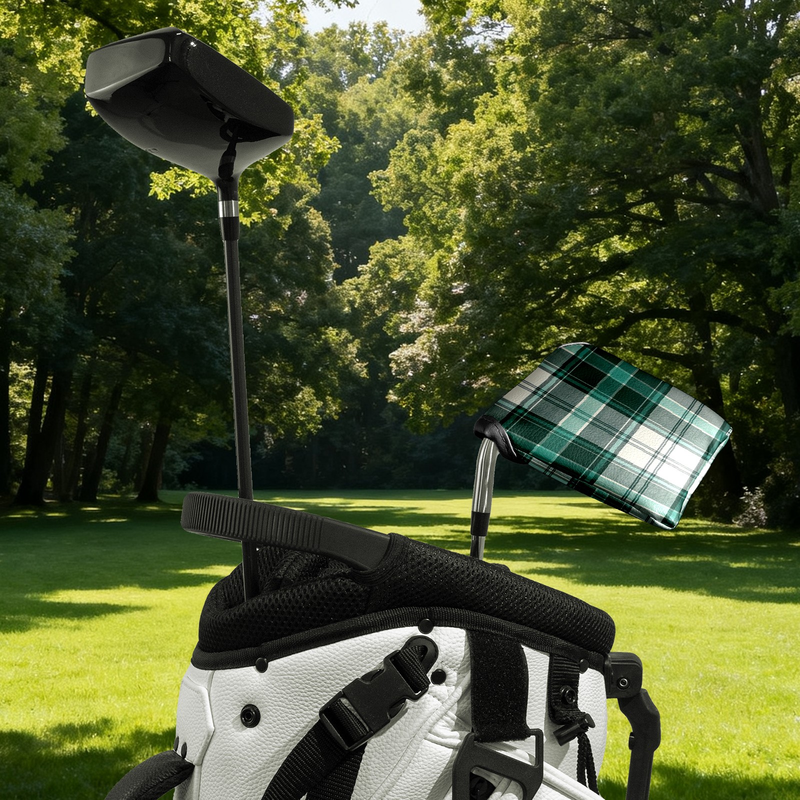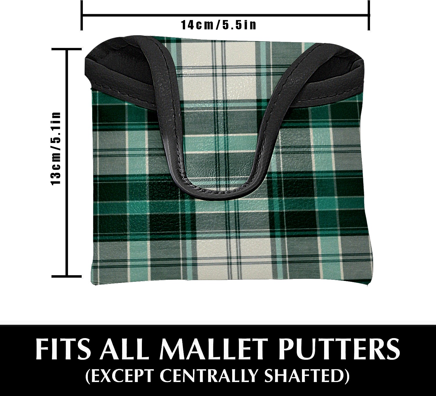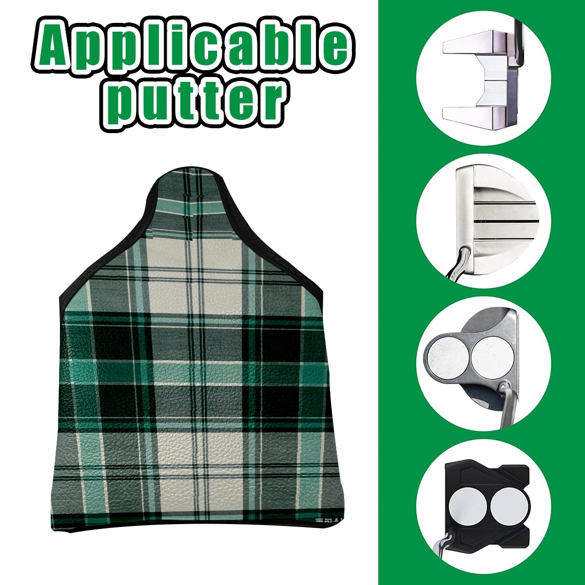 Mallet Putter Cover,Golf Club Head Cover, PU Leather Iron Head Covers Set Gift for Travel Cases Protector Fit Most, Easily Slips on and Secures Green White Checkered