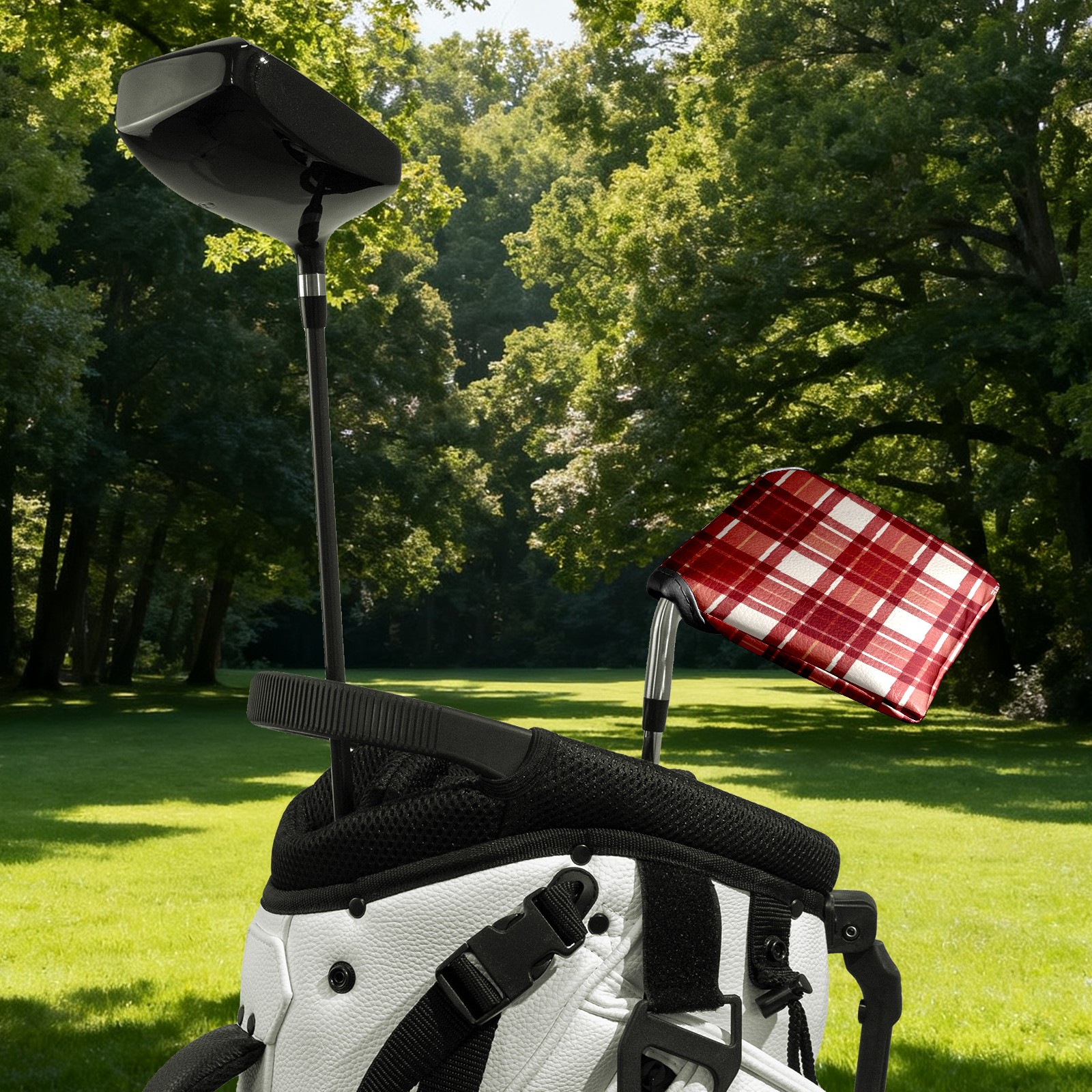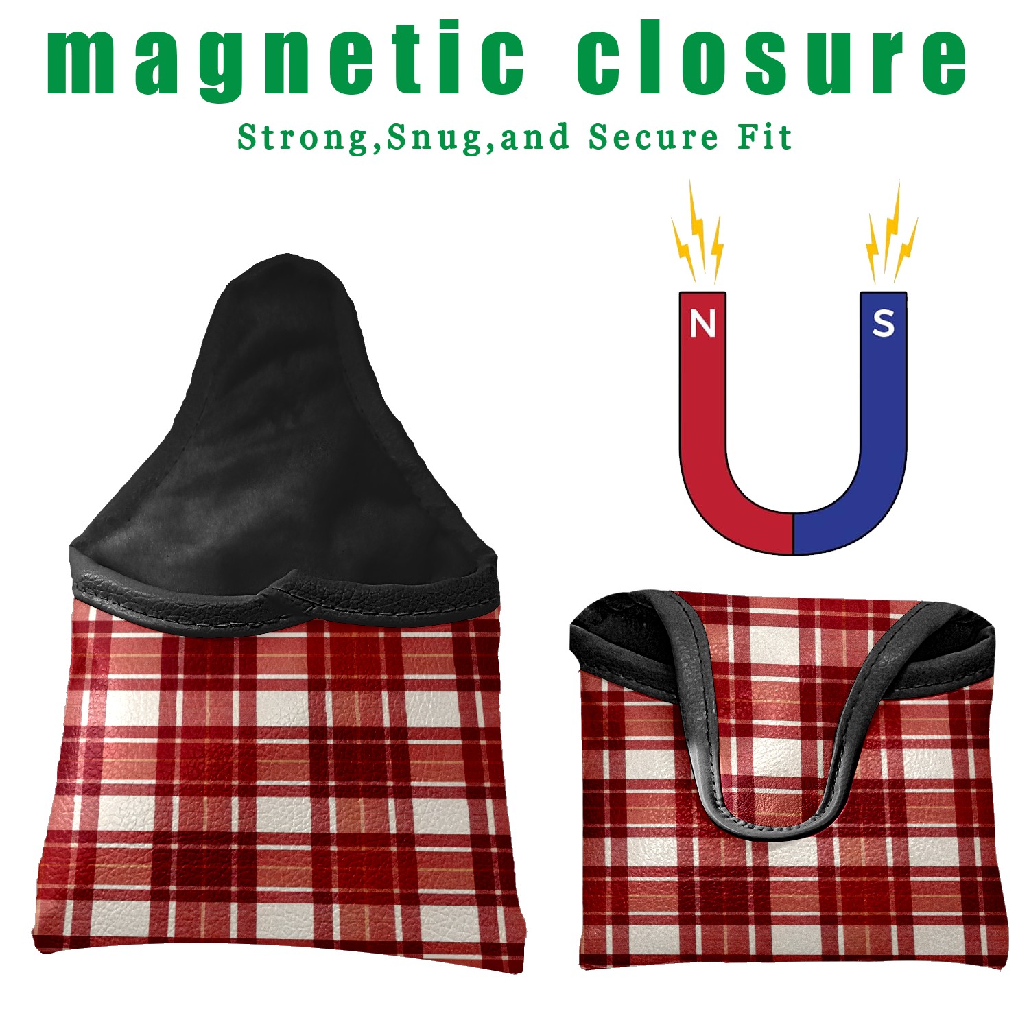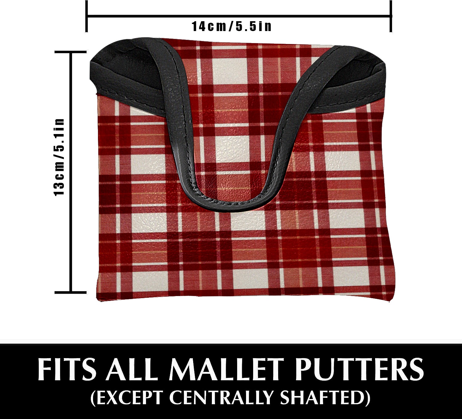 Mallet Putter Cover,Golf Club Head Cover, PU Leather Iron Head Covers Set Gift for Travel Cases Protector Fit Most, Easily Slips on and Secures Red White Checkered