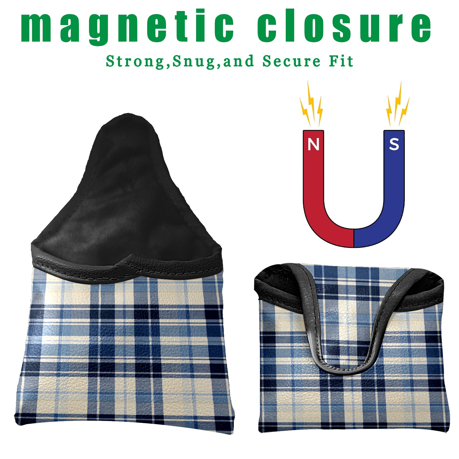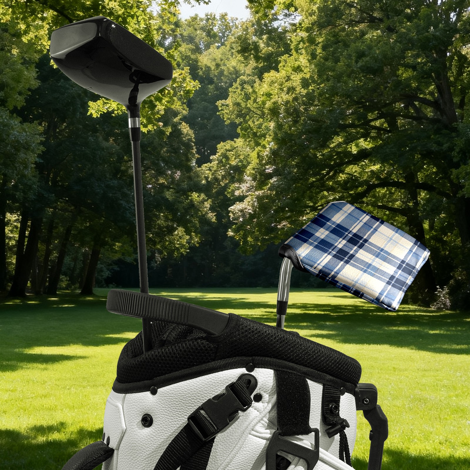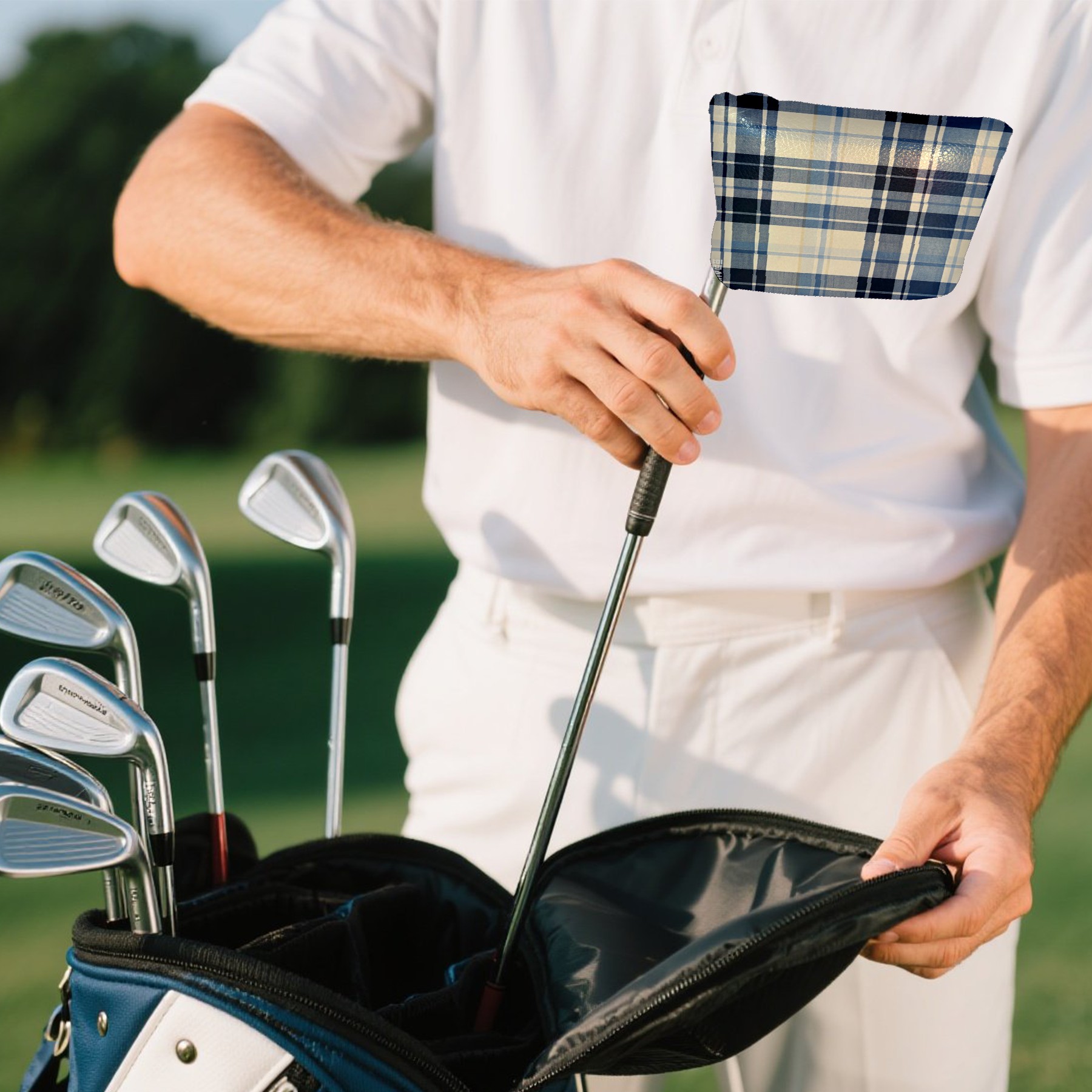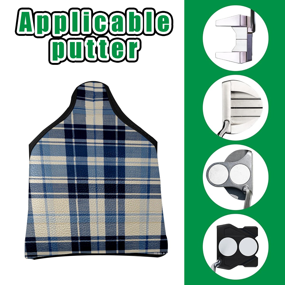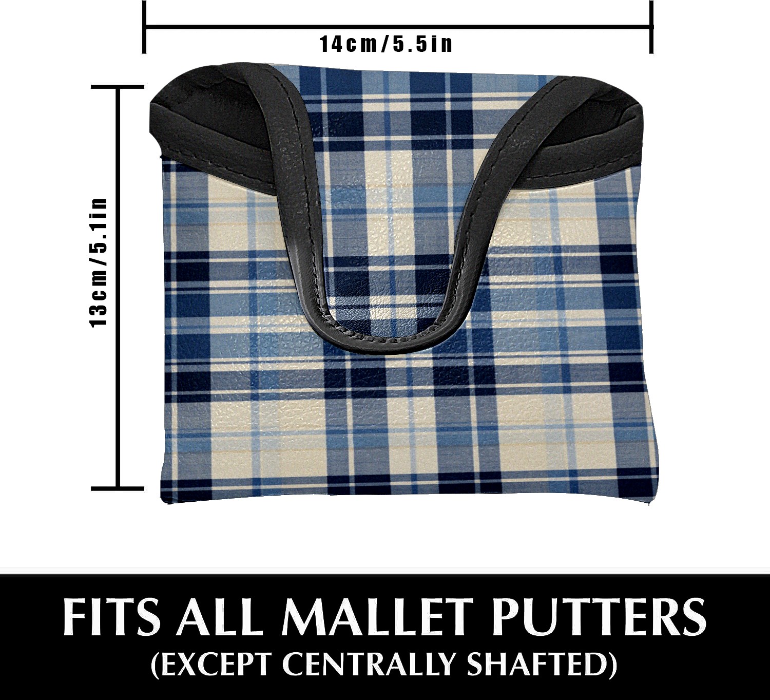 Mallet Putter Cover,Golf Club Head Cover, PU Leather Iron Head Covers Set Gift for Travel Cases Protector Fit Most, Easily Slips on and Secures Blue White Checkered