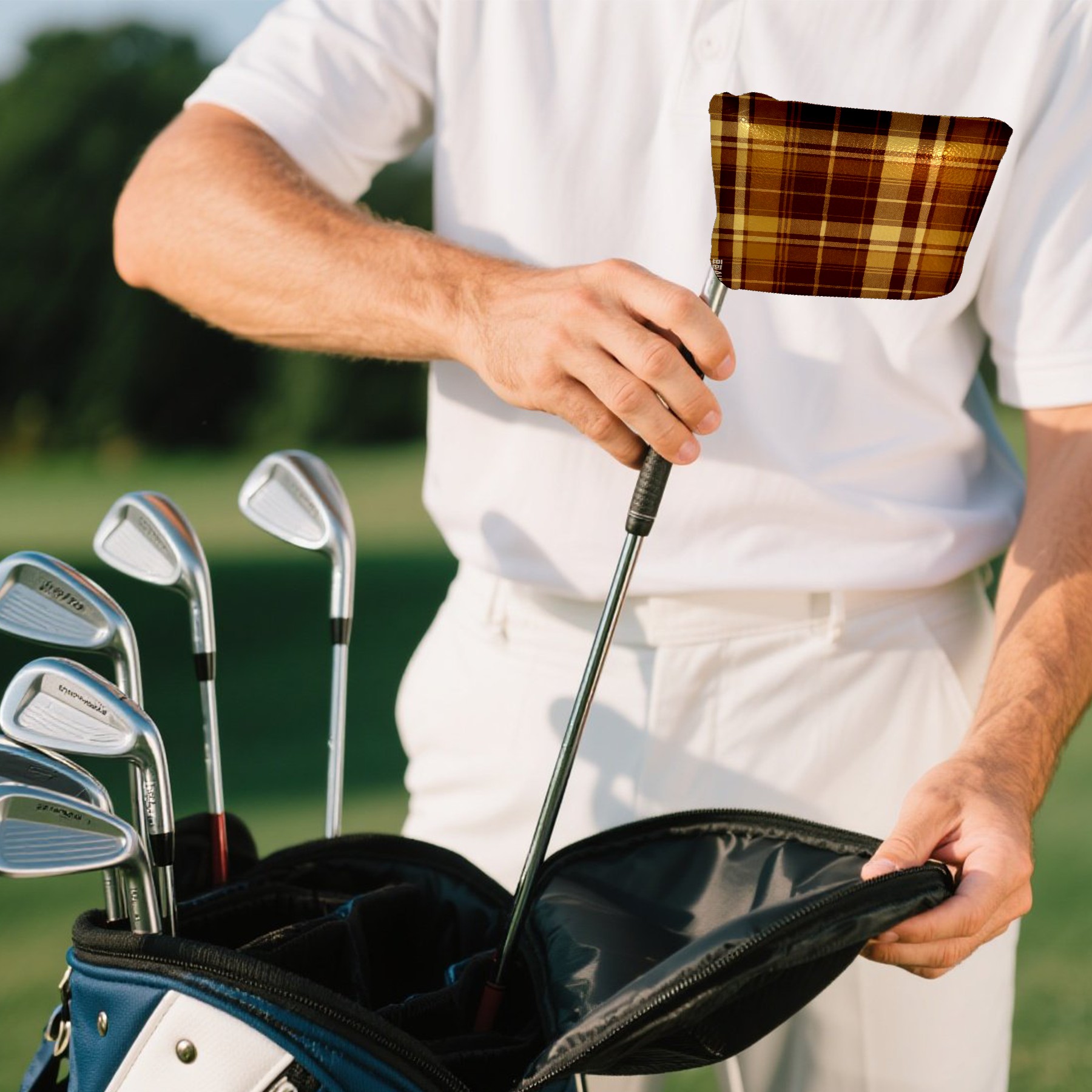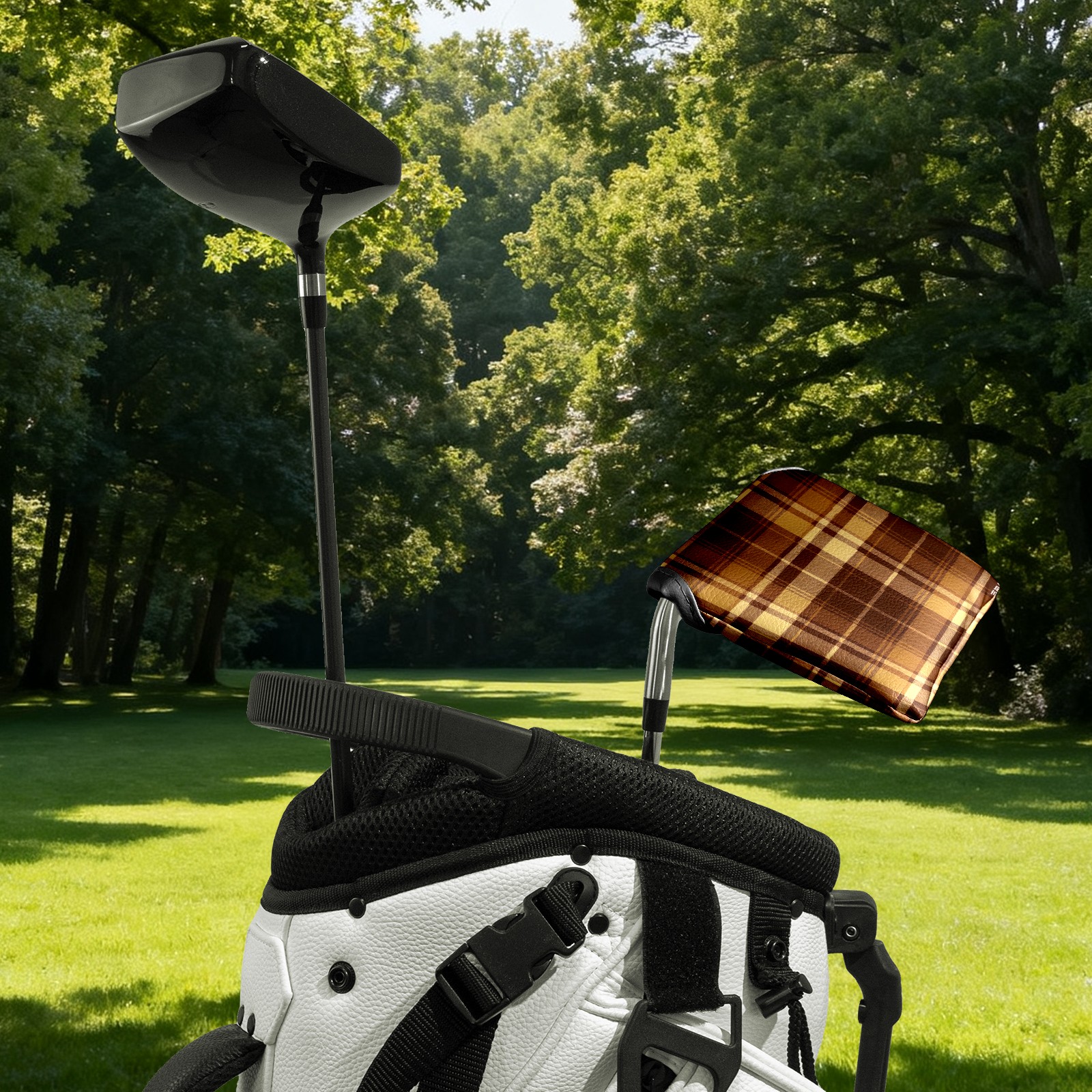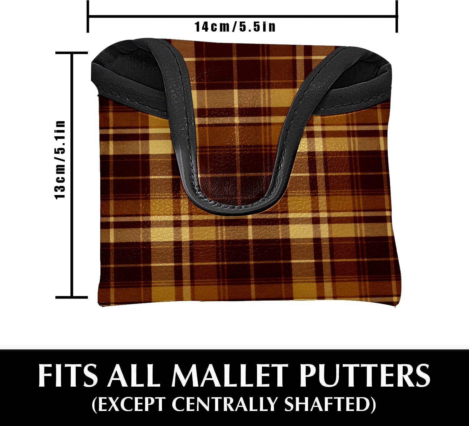 Mallet Putter Cover,Golf Club Head Cover, PU Leather Iron Head Covers Set Gift for Travel Cases Protector Fit Most, Easily Slips on and Secures Brown Plaid
