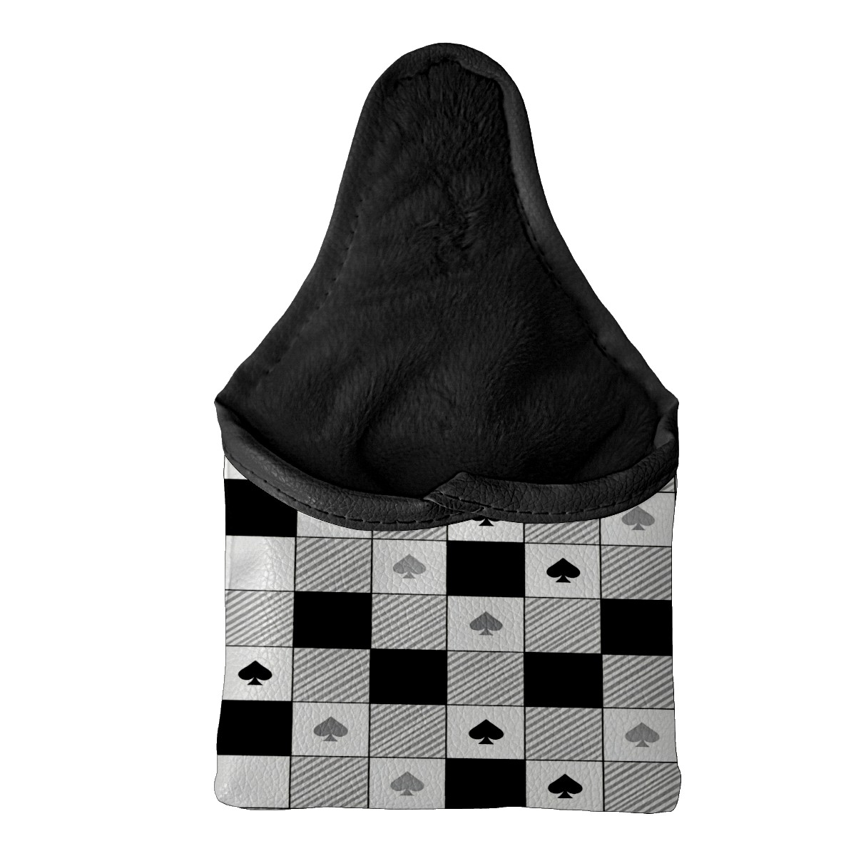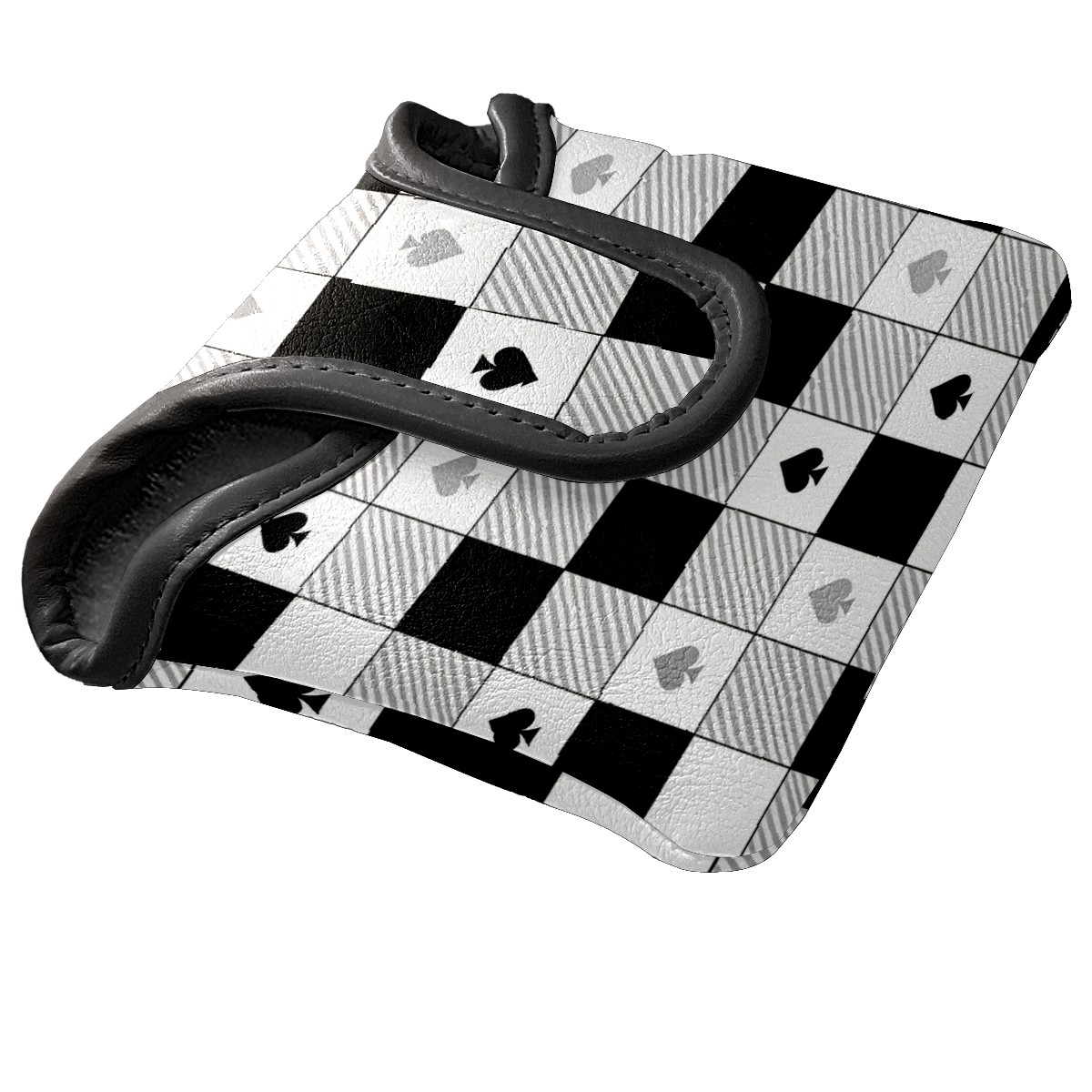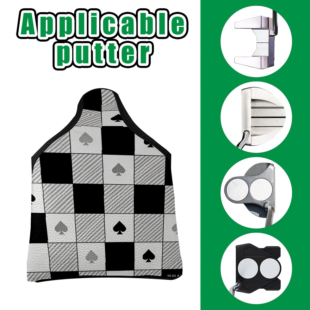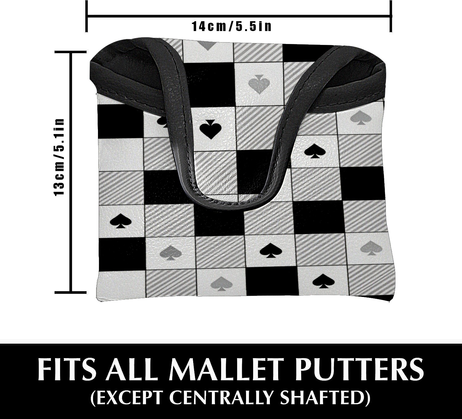 Mallet Putter Cover,Golf Club Head Cover, PU Leather Iron Head Covers Set Gift for Travel Cases Protector Fit Most, Easily Slips on and Secures Black White Checkered Pattern Spades