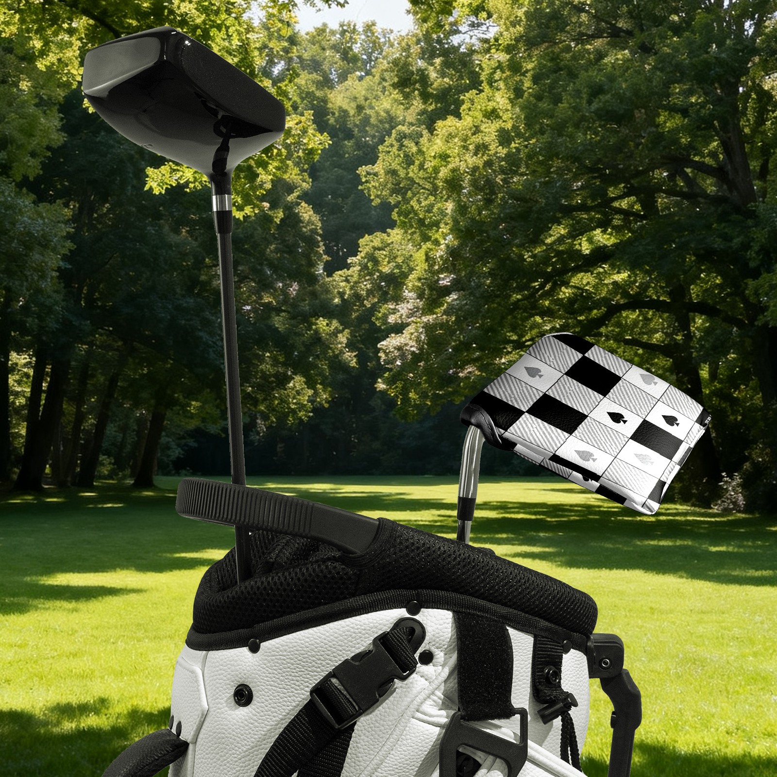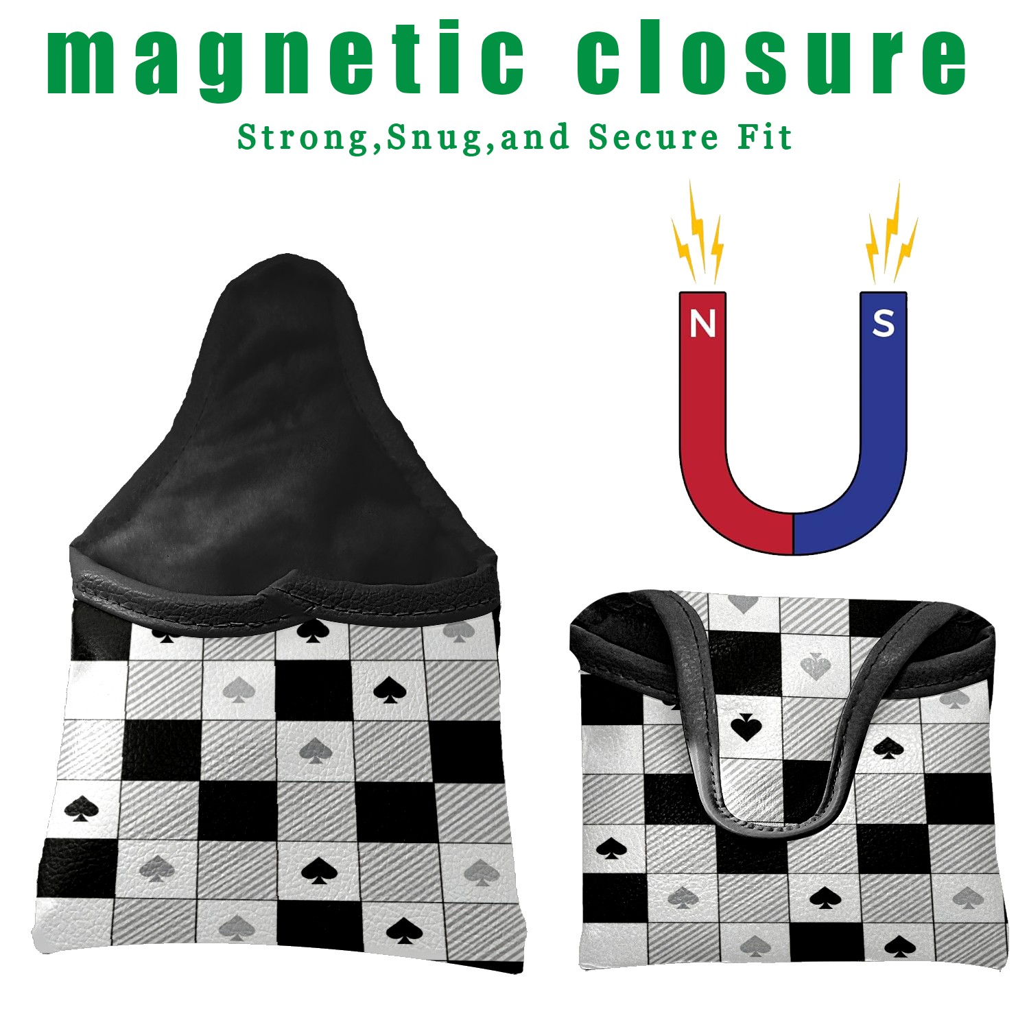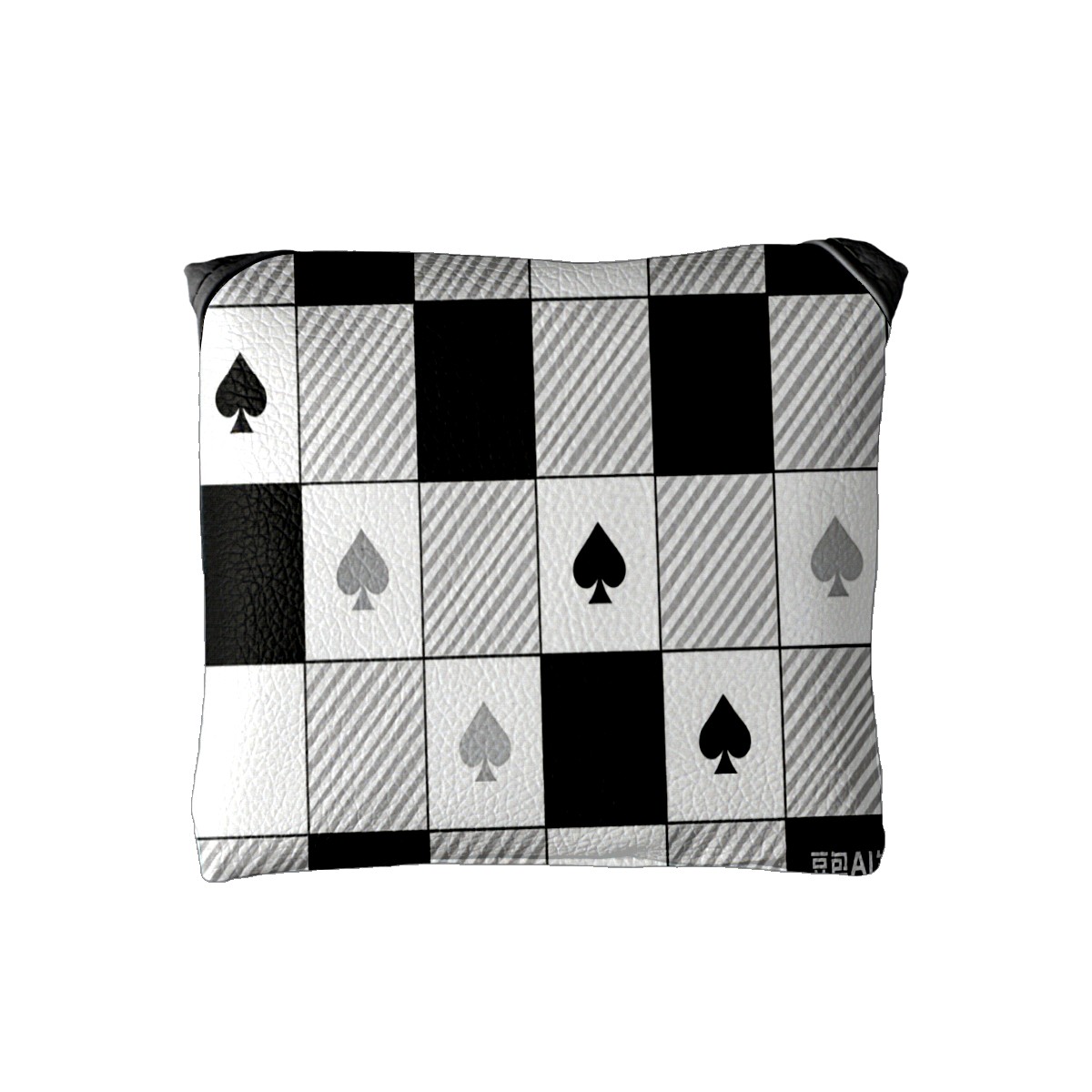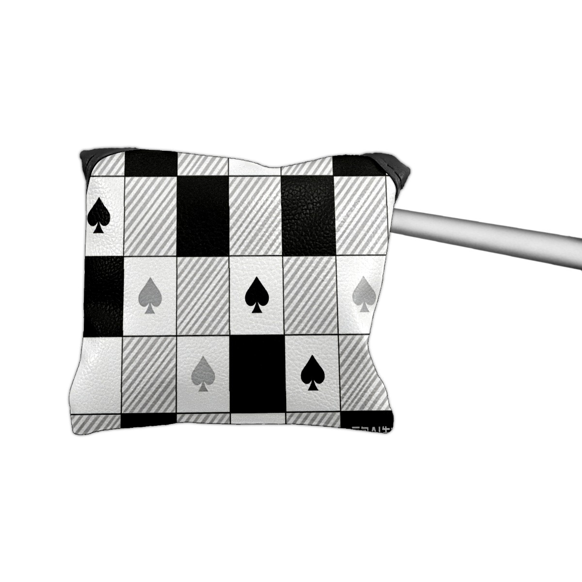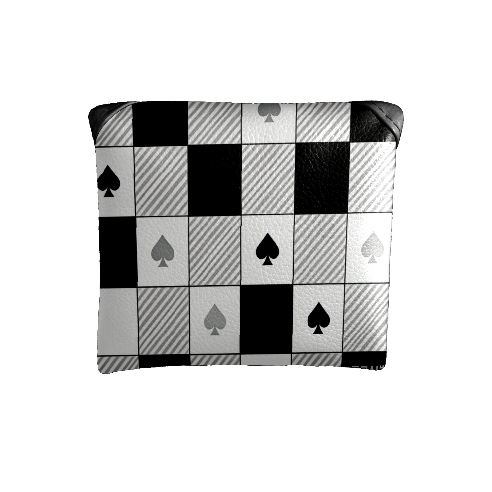Mallet Putter Cover,Golf Club Head Cover, PU Leather Iron Head Covers Set Gift for Travel Cases Protector Fit Most, Easily Slips on and Secures Black White Checkered Pattern Spades
