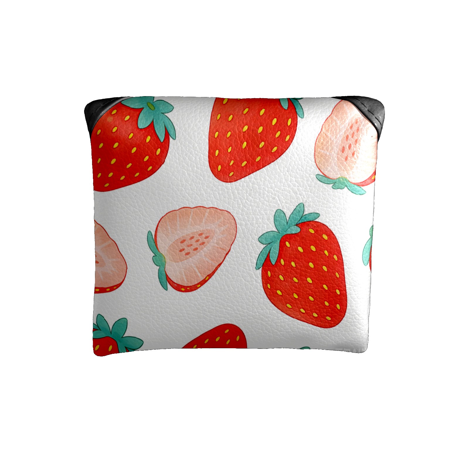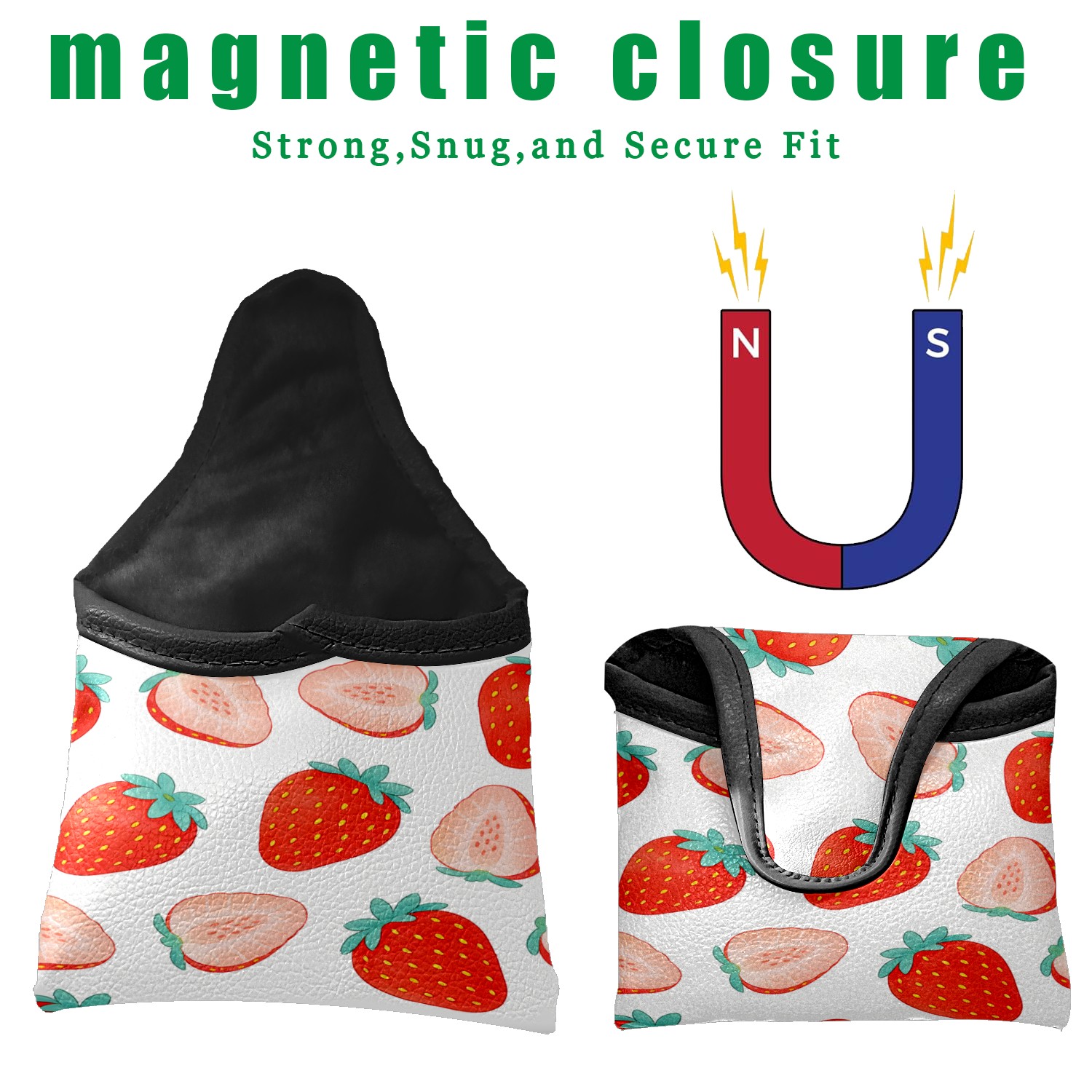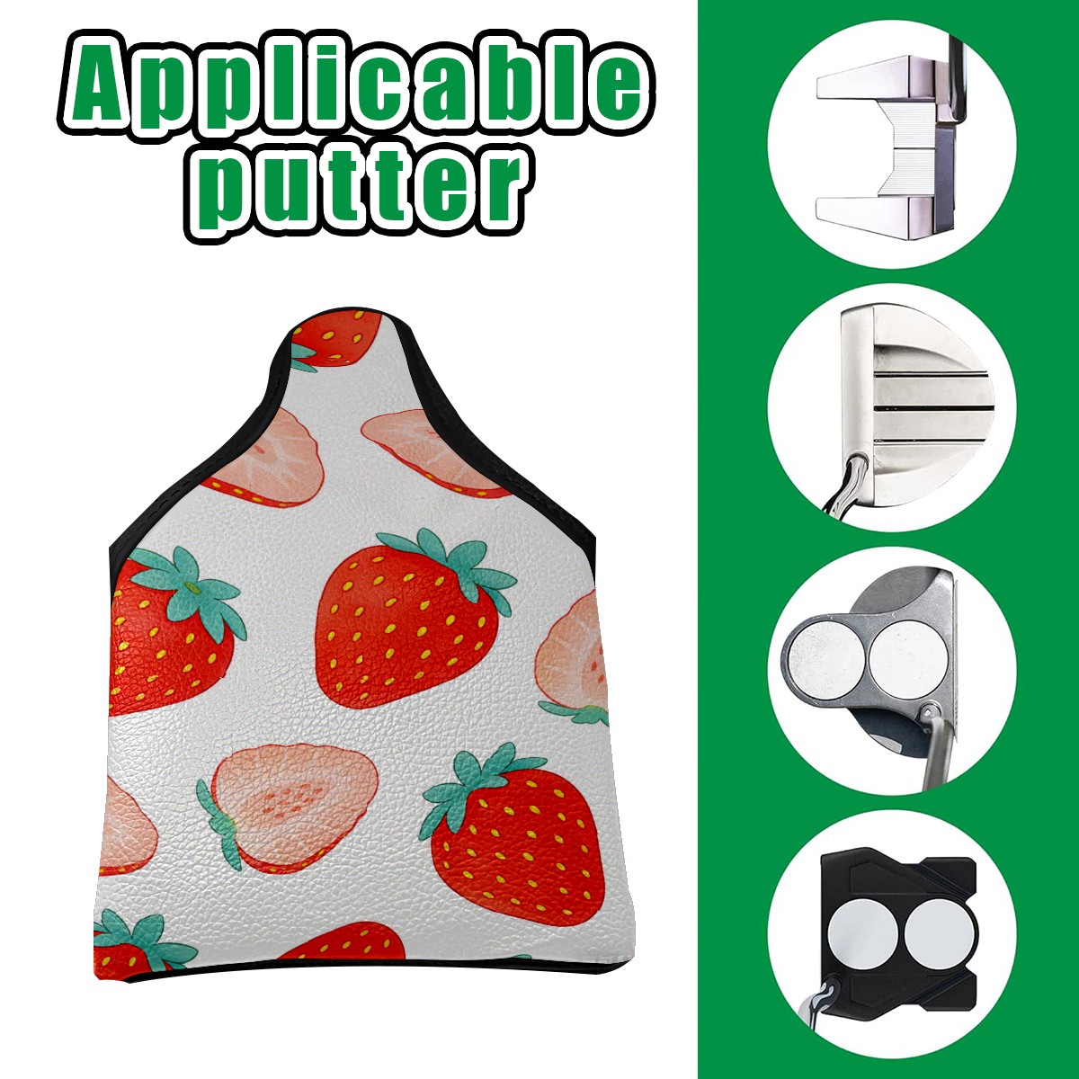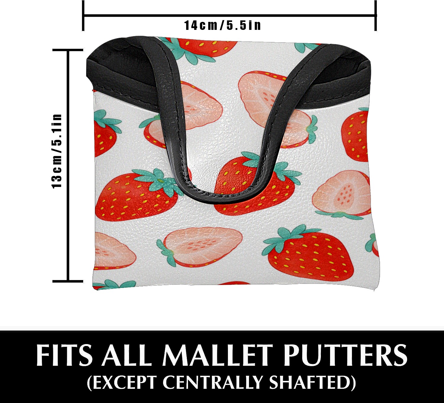 Mallet Putter Cover,Golf Club Head Cover, PU Leather Iron Head Covers Set Gift for Travel Cases Protector Fit Most, Easily Slips on and Secures Sliced ​​strawberries 1