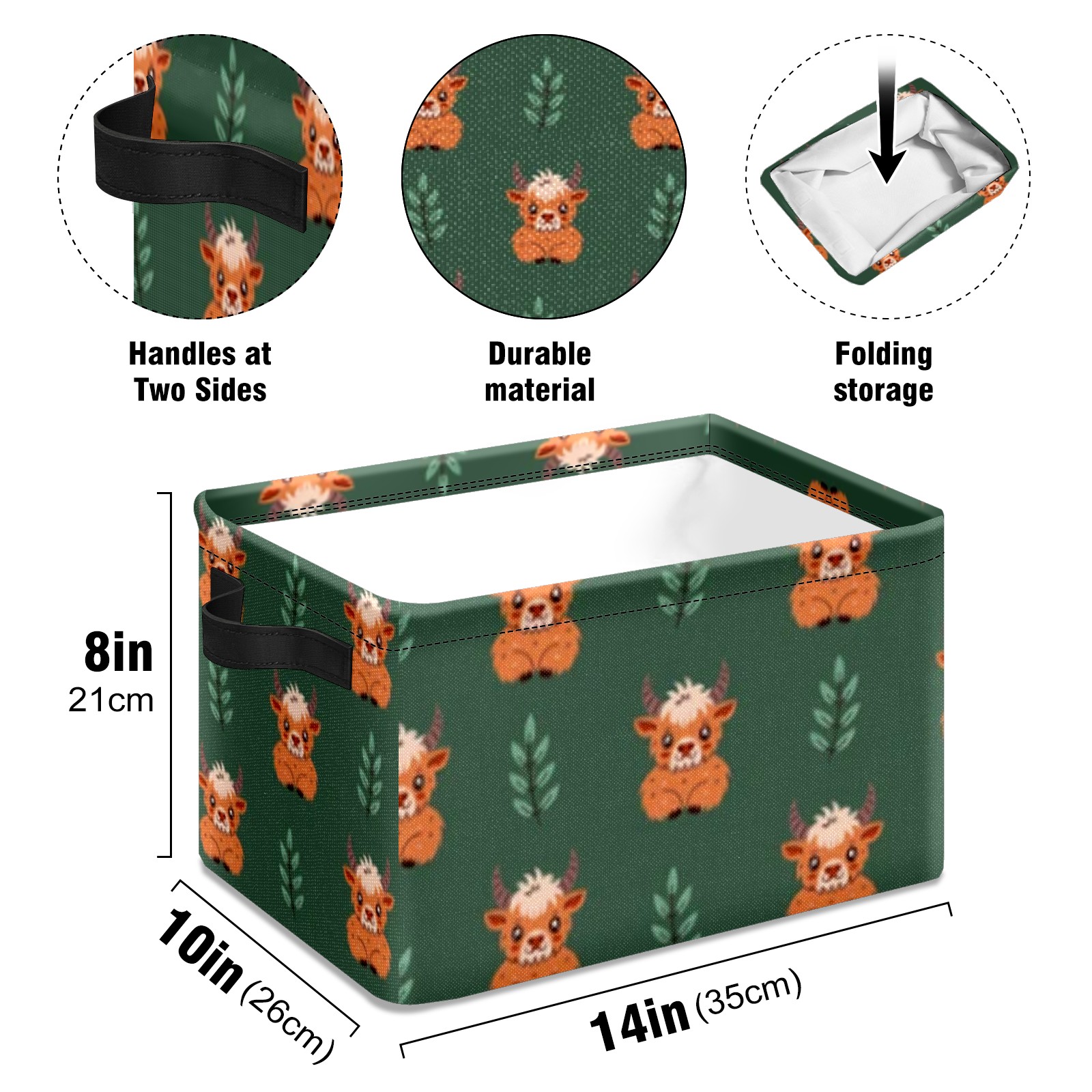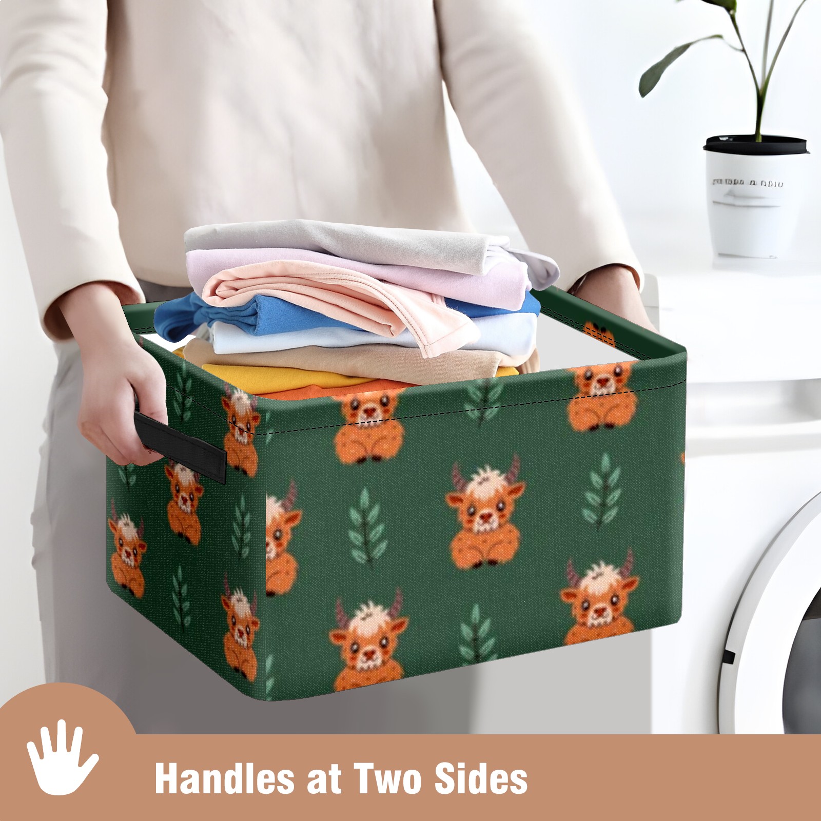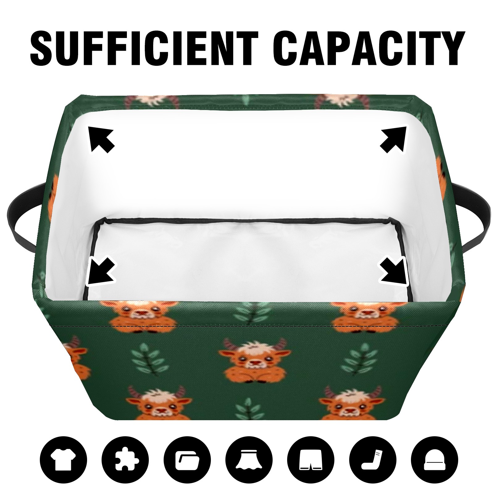 Foldable and Stackable Fabric Storage Basket for Home Organization with Handles, Decorative Closet Bins for Shelves and Laundry Storage( Cow)